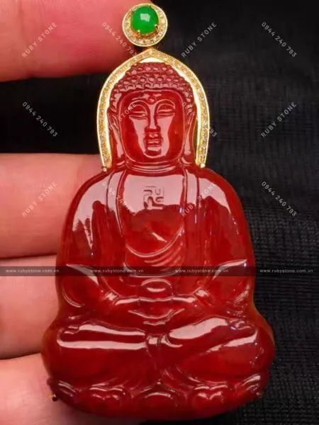 Mặt dây Phổ hiền bồ tát Ruby Nam Phi, chạm khắc thủ công tinh xảo