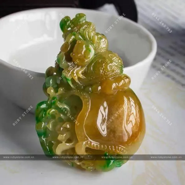 Màu vàng và xanh ngọc độc và lạ thường được thiết kế và chế tác thành những món đồ chạm khắc bằng ngọc cổ, có vẻ đẹp rất cổ kính, sự kết hợp màu phức tạp nên đòi hỏi kỹ năng chạm khắc cao hơn. Nó rất đẹp và trang nhã, với những đường nét uyển chuyển và các lớp chạm khắc riêng biệt, sẽ làm nổi bật chất liệu ngọc lên rất nhiều.