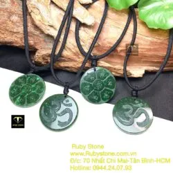 Mặt dây chuyền Lục Tự Đại Minh Chân Ngôn ngọc bích, mặt sau khắc chữ “Om”, KT 30mm