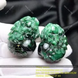 Cặp tỳ hưu ngọc Cẩm thạch xanh lý tạc tay tinh xảo, kích thước 38mm