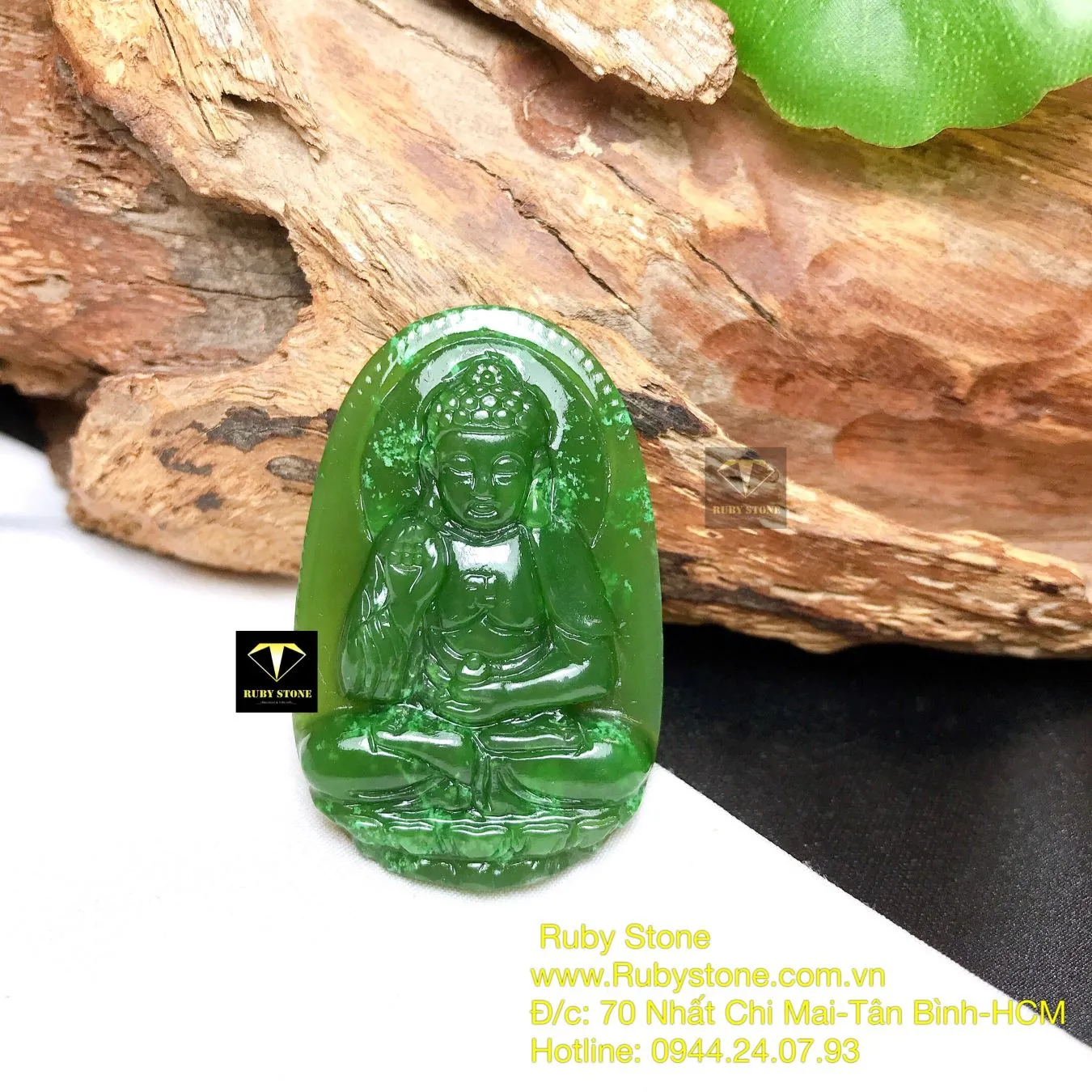 A Di Đà – Phật bản mệnh ngọc bích tuổi Tuất-Hợi, kích thước 42mm