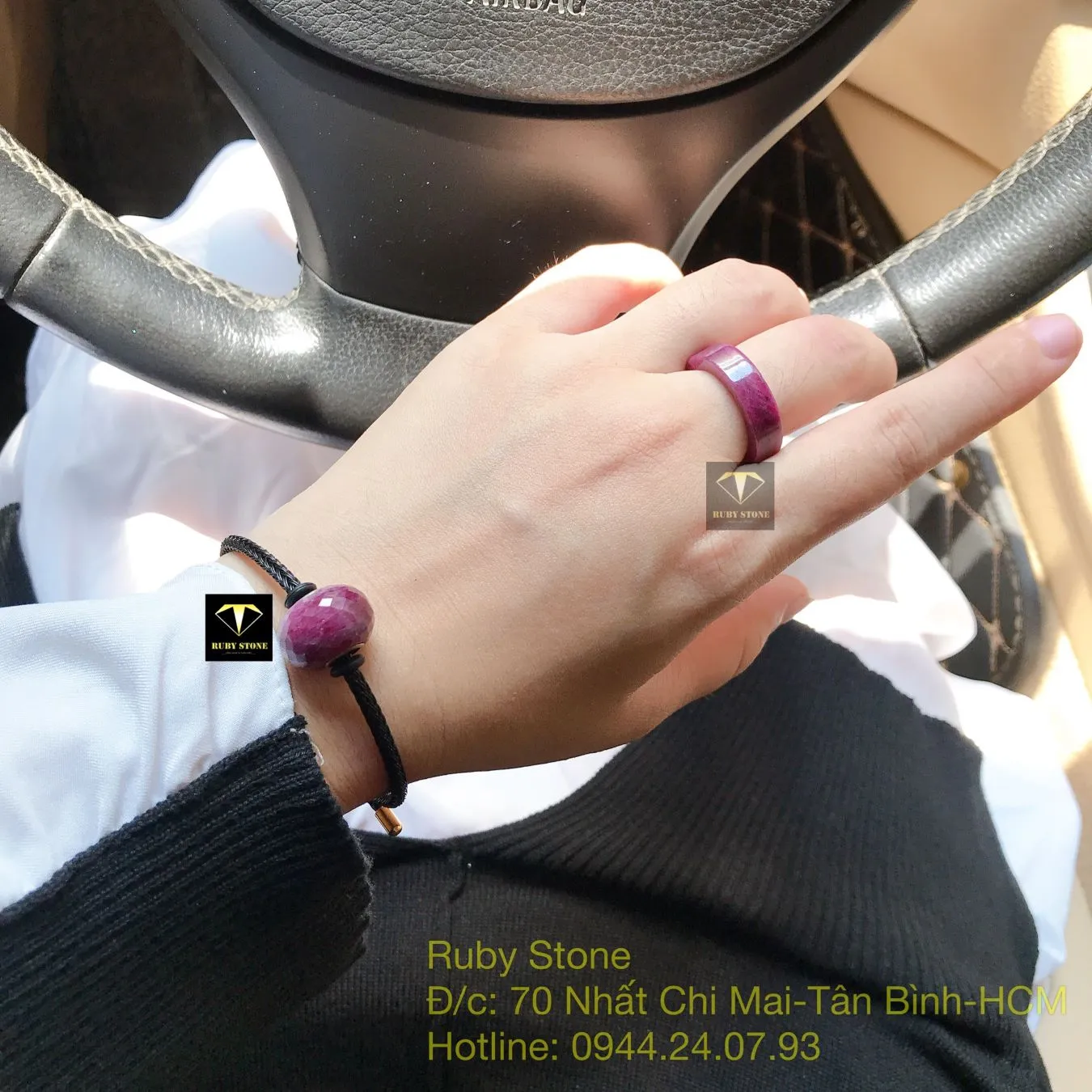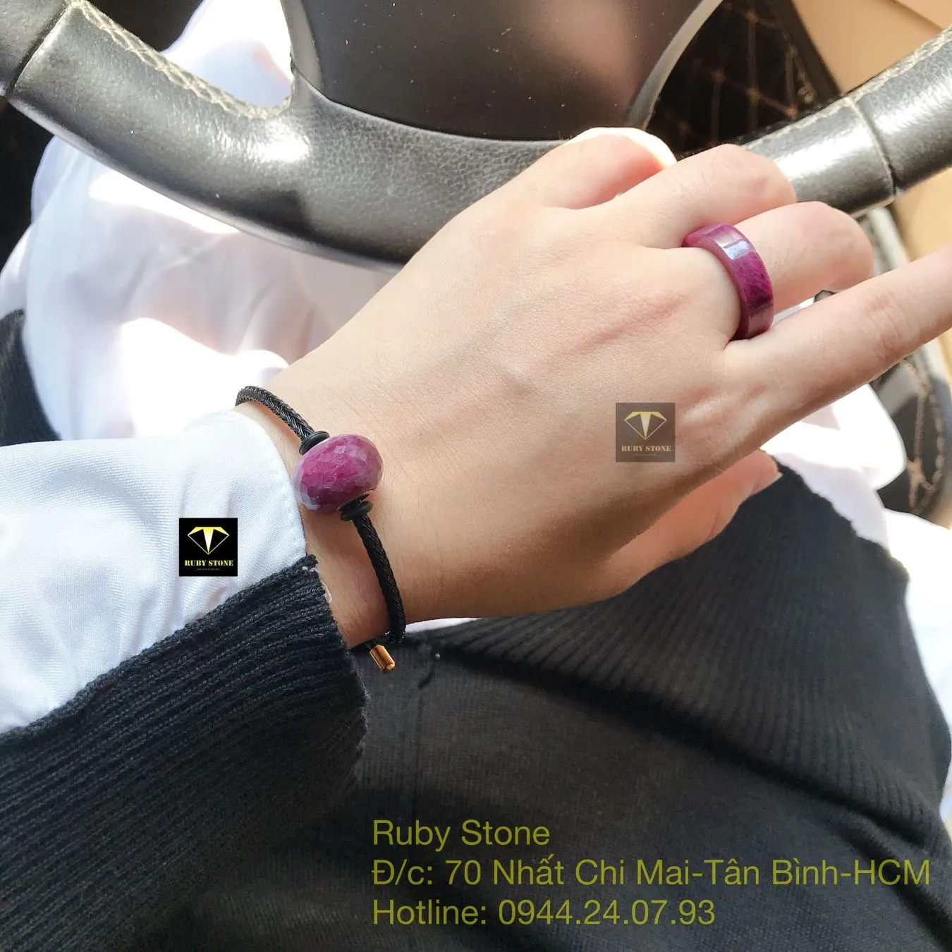 Bộ Sản Phẩm Vòng Tay Và Nhẫn Bạc Charm Ruby Nam Phi Mài Giác - Ngọc Bích Phong Thủy