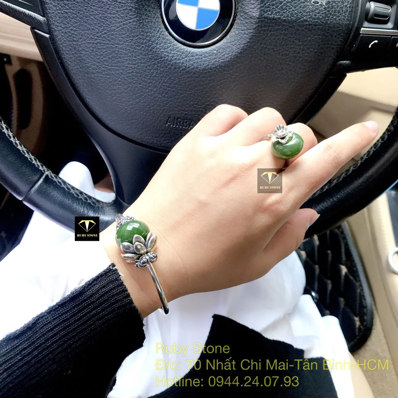 Bộ sản phẩm vòng và nhẫn charm Ngọc bích mài giác
