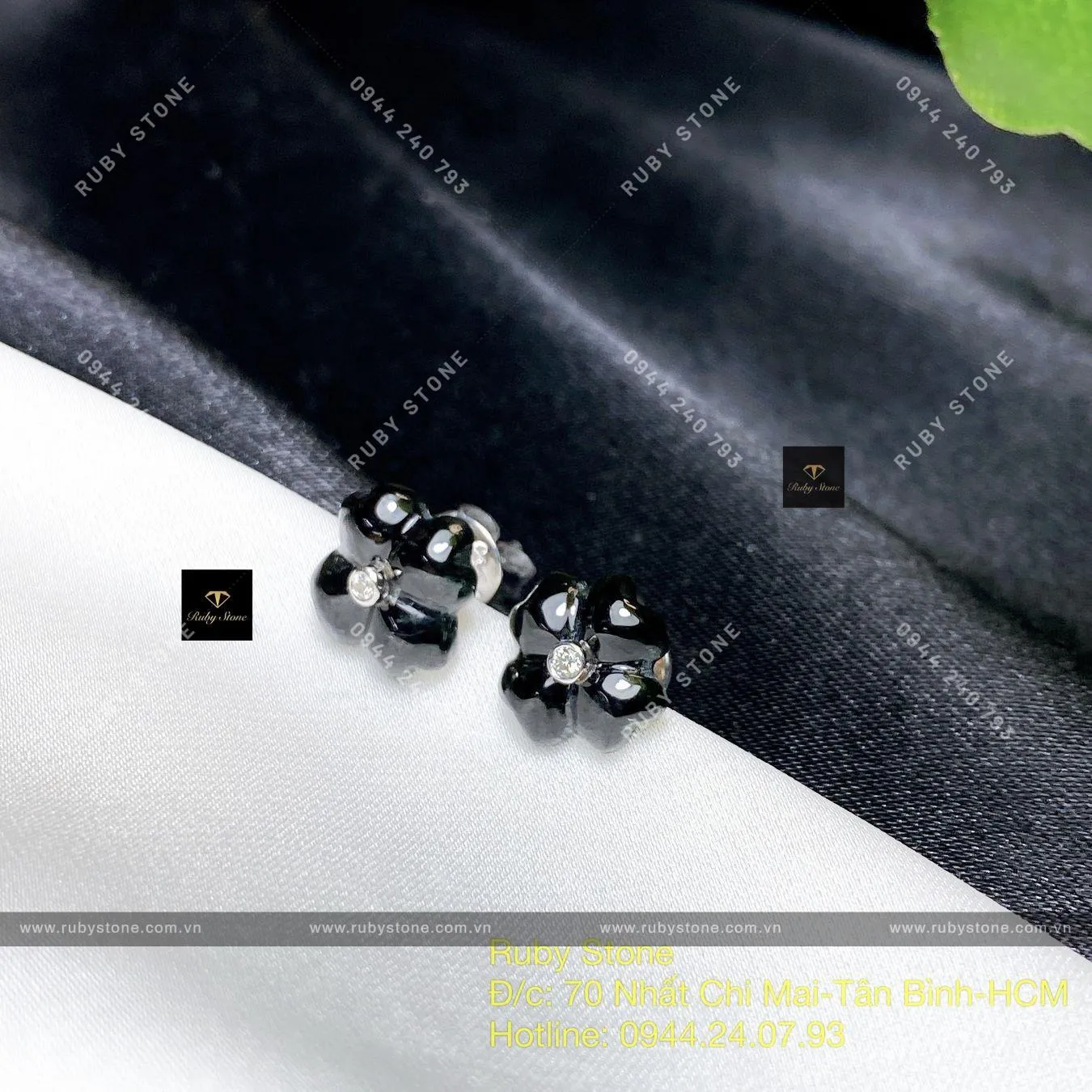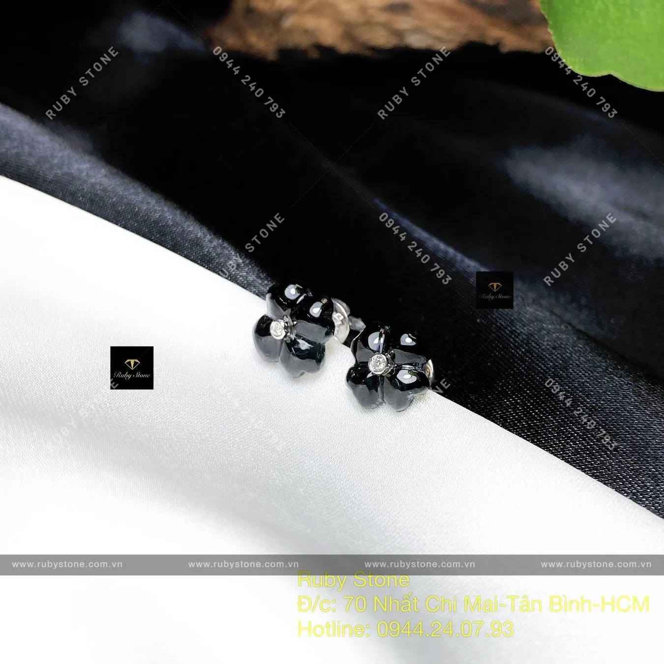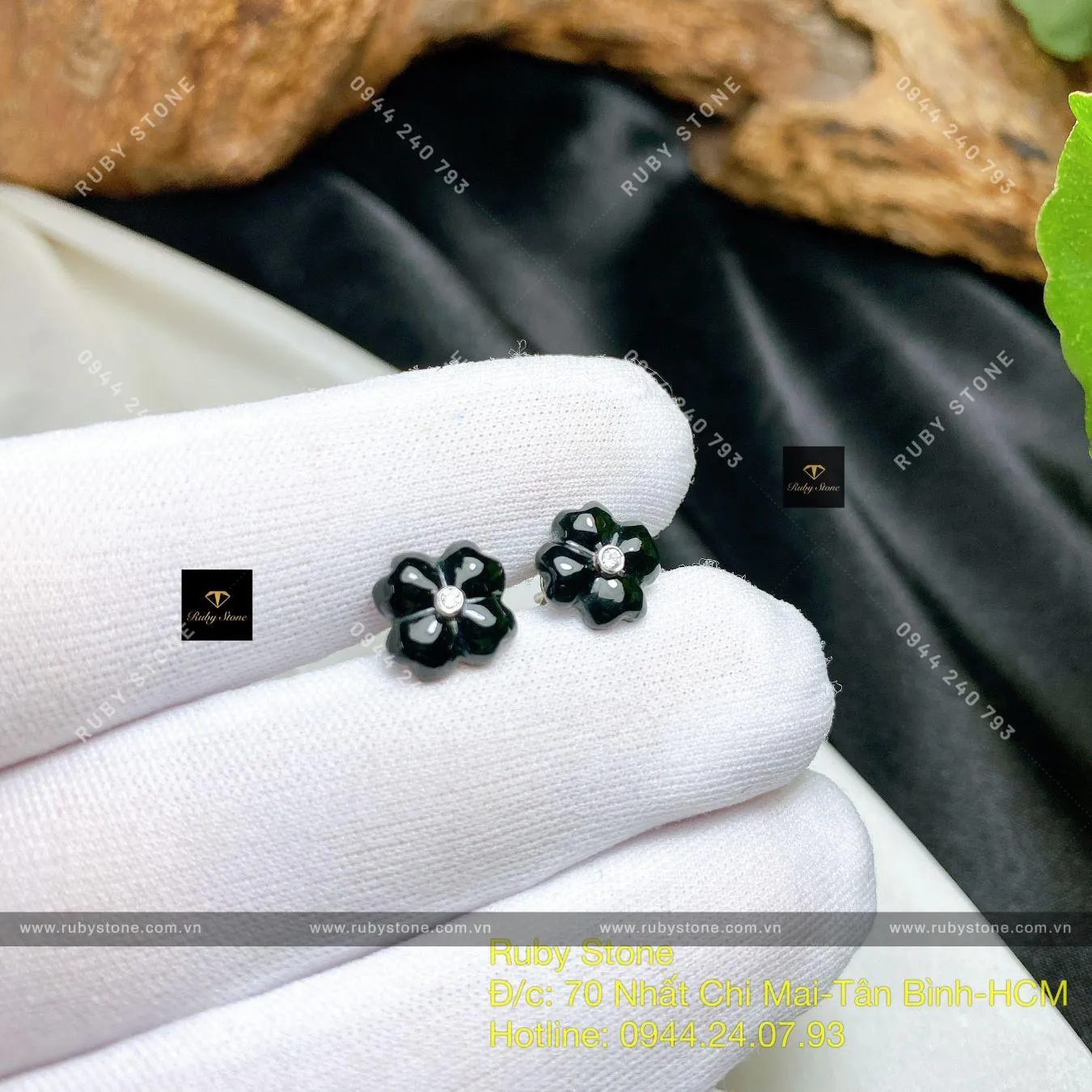 Bộ trang sức cỏ bốn cánh Phỉ thuý mực dục, vàng 18k, kim cương thiên nhiên
