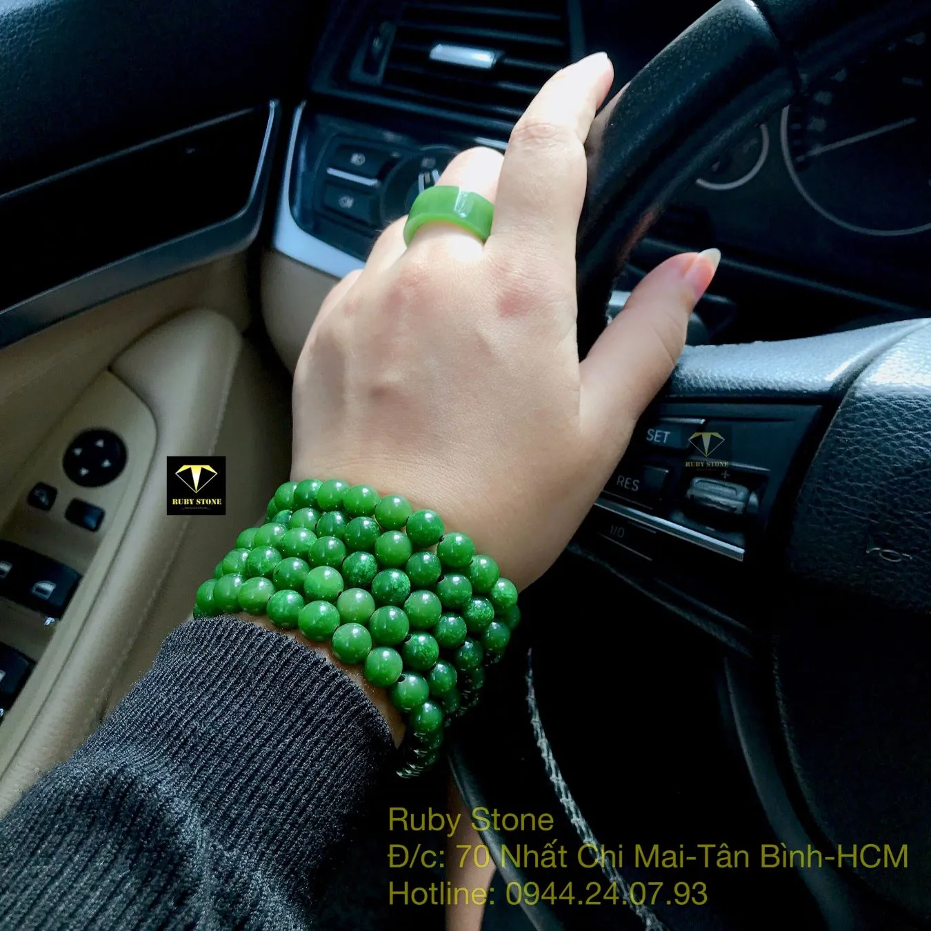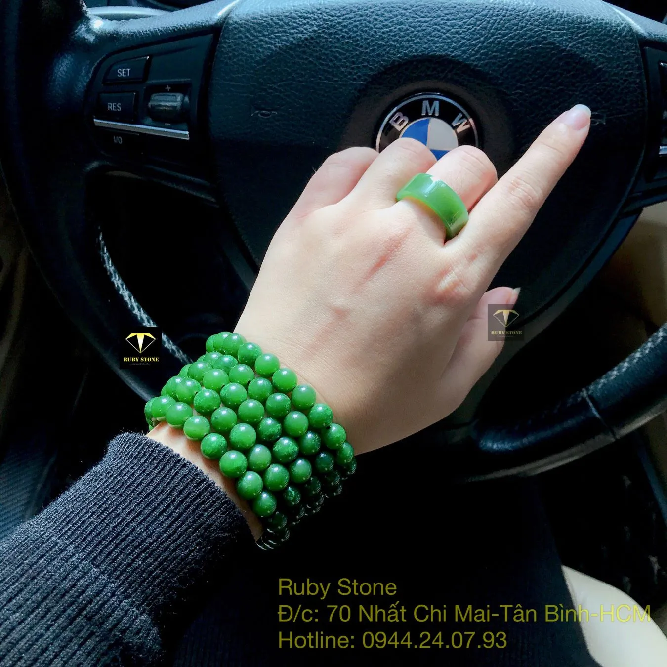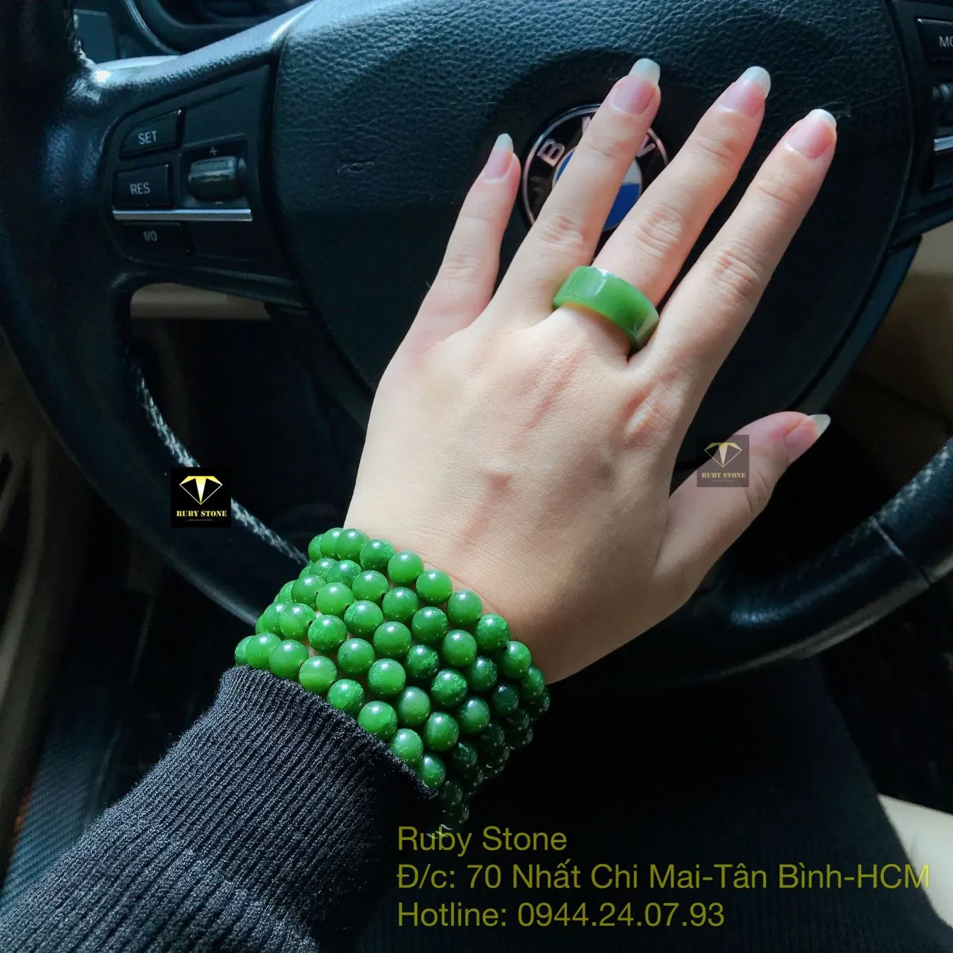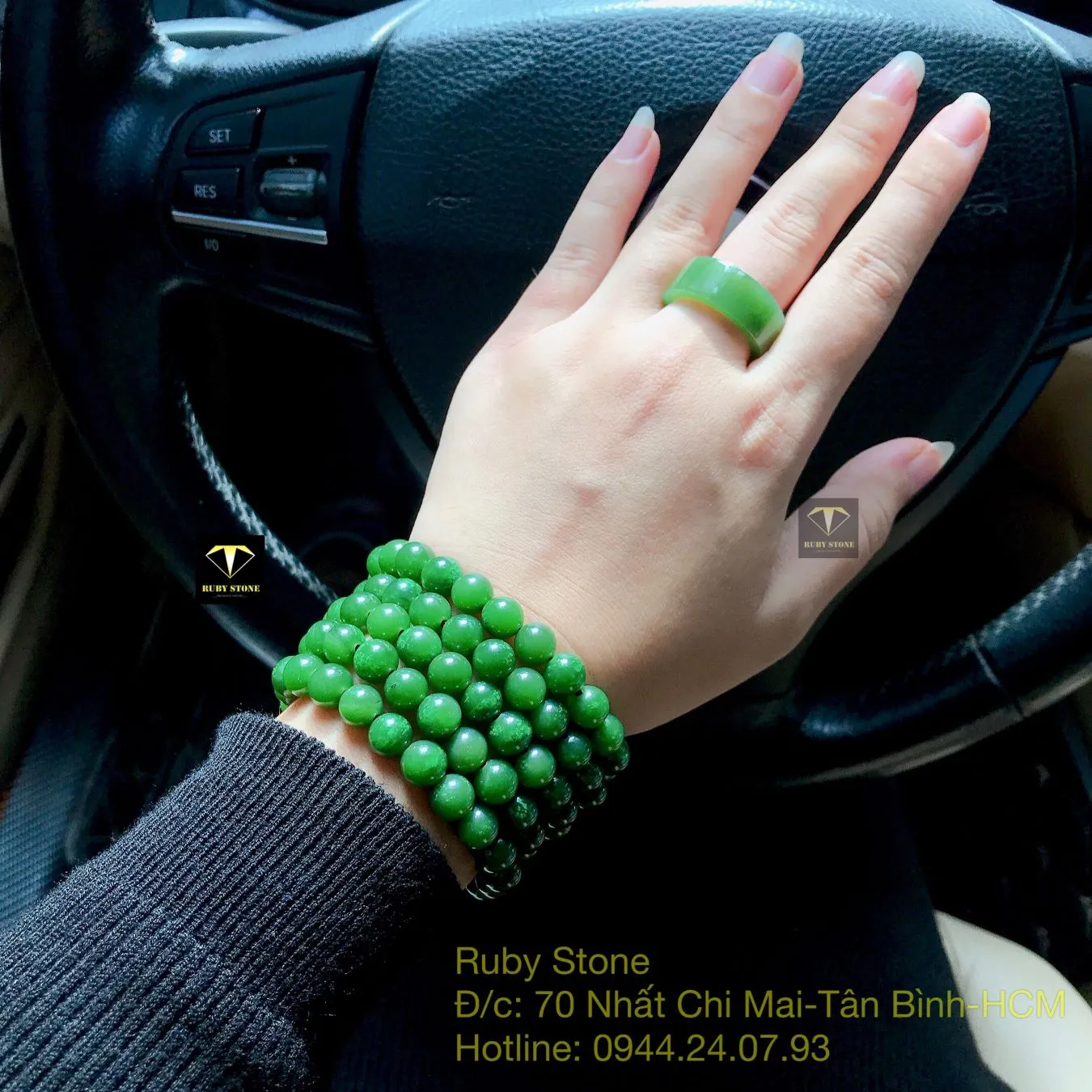 Chuỗi 108 Hạt Ngọc Bích Canada Và Nhẫn 9 Ly - Ngọc Bích Phong Thủy