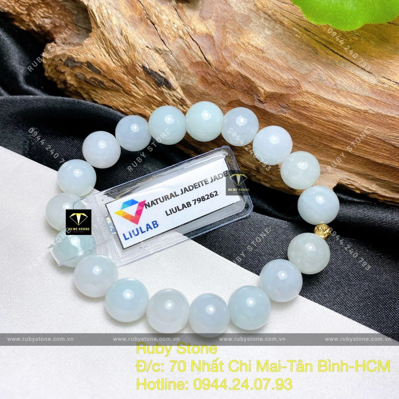 Chuỗi tay ngọc cẩm thạch 9,5 ly mix bi vàng 18k