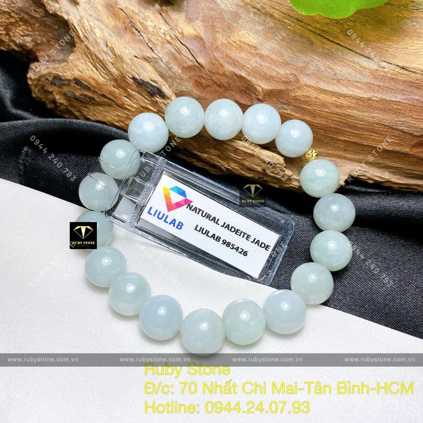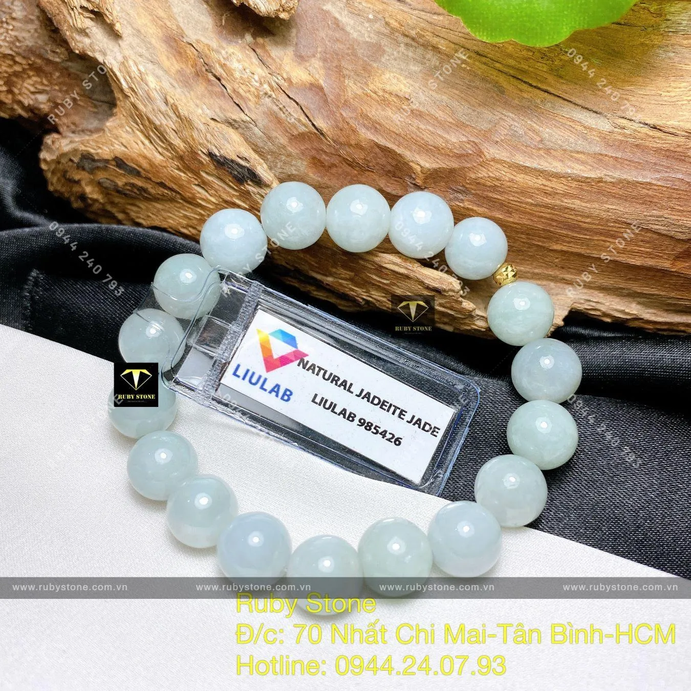 Chuỗi tay ngọc cẩm thạch xanh lơ 9,5 ly mix bi vàng 18k