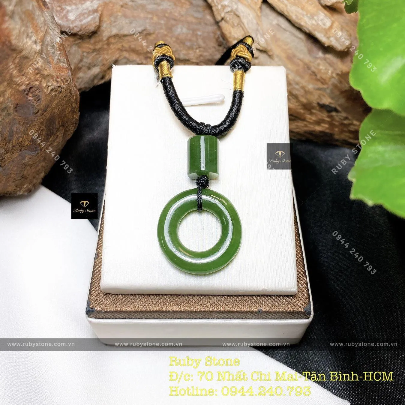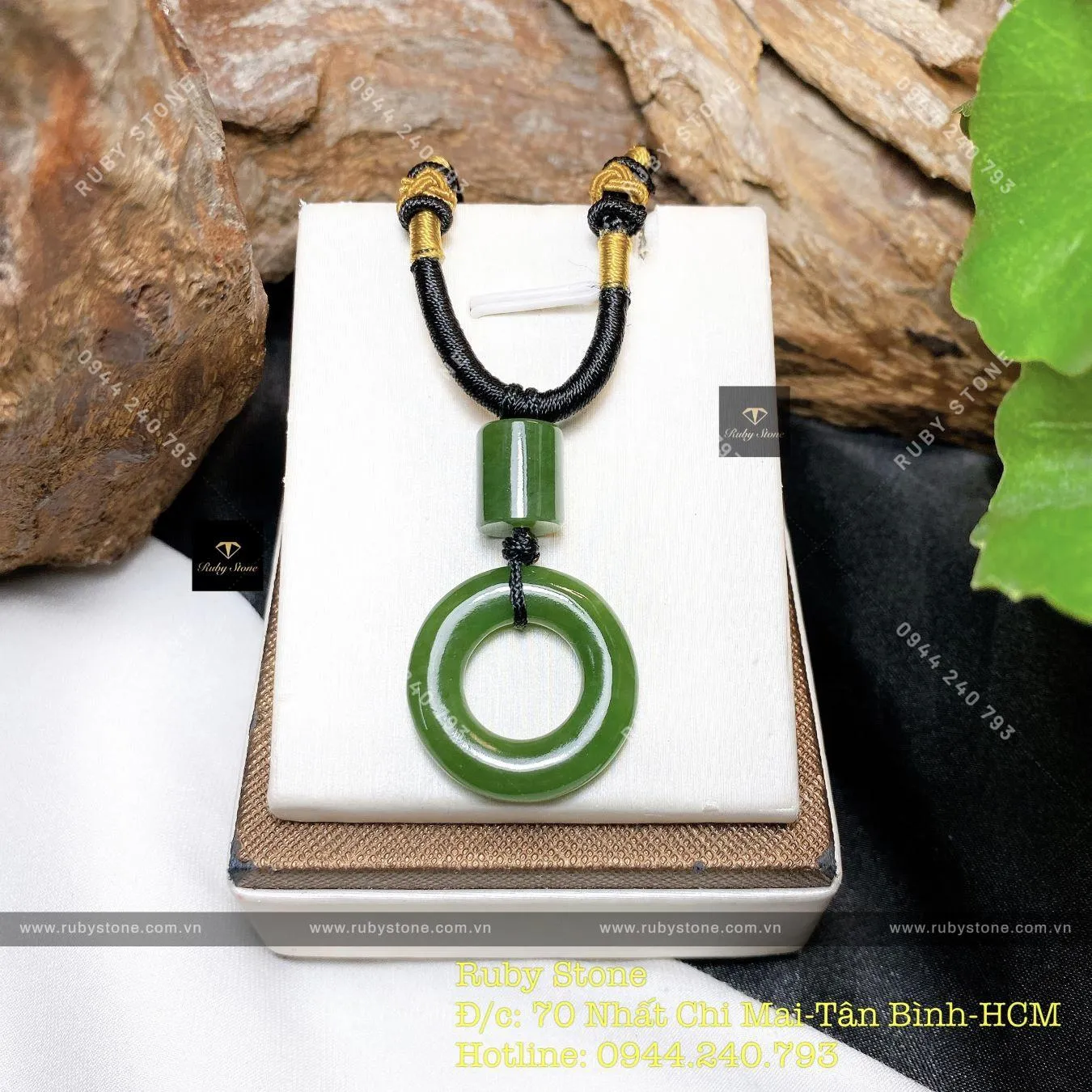 Đồng điếu + Lu thống ngọc bích Canada xanh lá, KT 25mm