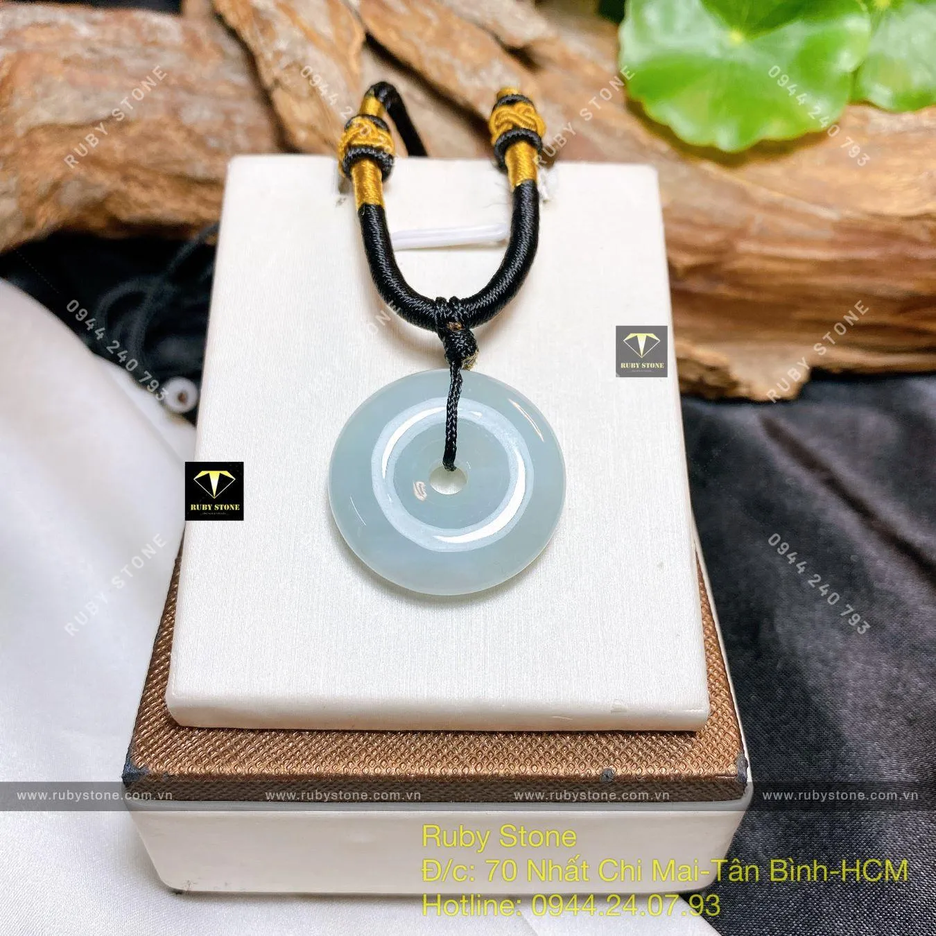 Đồng điếu ngọc cẩm thạch Myanmar màu lam, KT 26mm