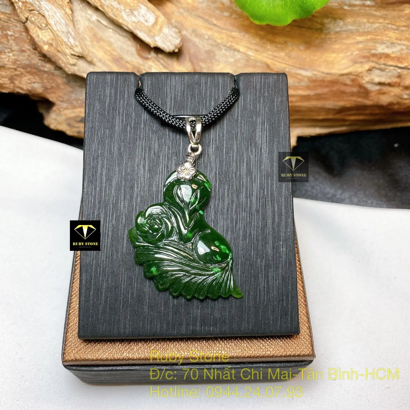 Hồ Ly Ngọc Bích Canada Xanh Lý đậm Móc Bạc - Ngọc Bích Phong Thủy