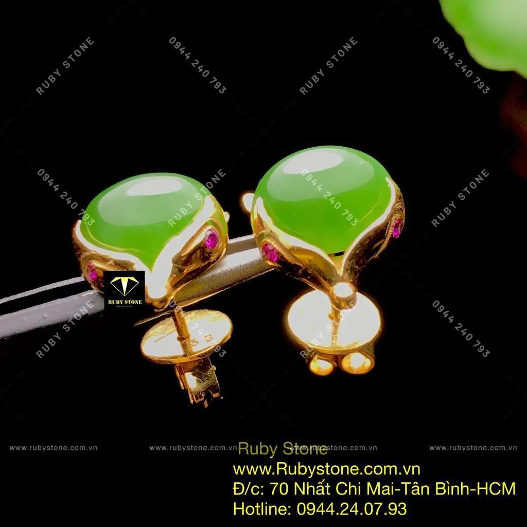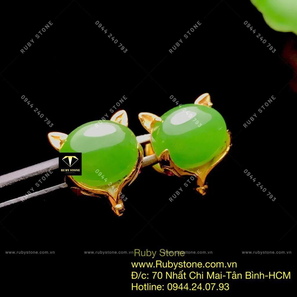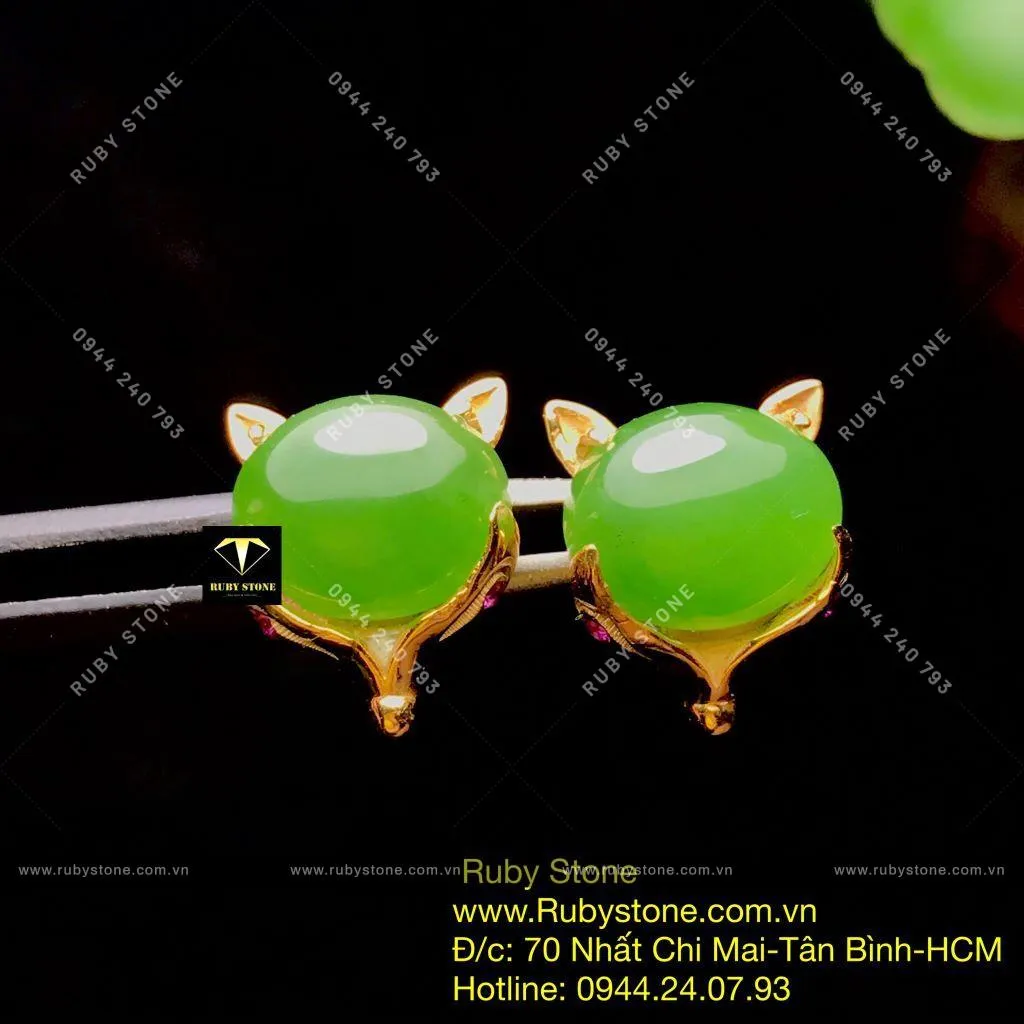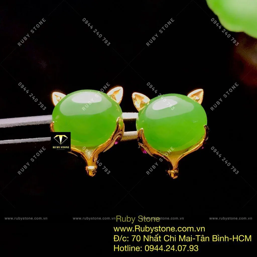 Khuyên tai hồ ly Ngọc bích, vàng 10k