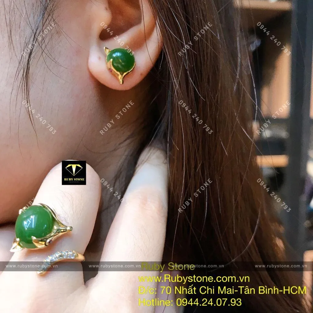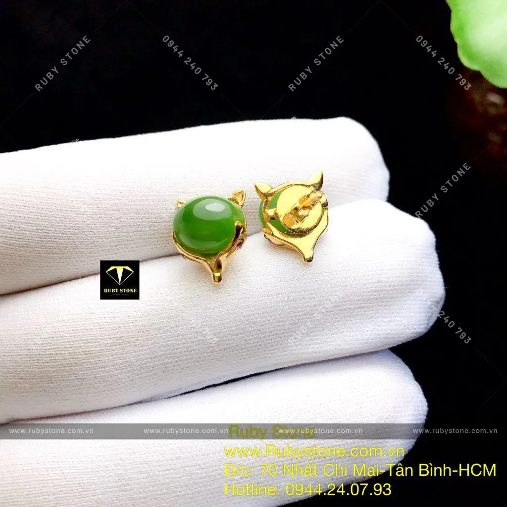 Khuyên Tai Hồ Ly Ngọc Bích, Vàng 10k - Ngọc Bích Phong Thủy