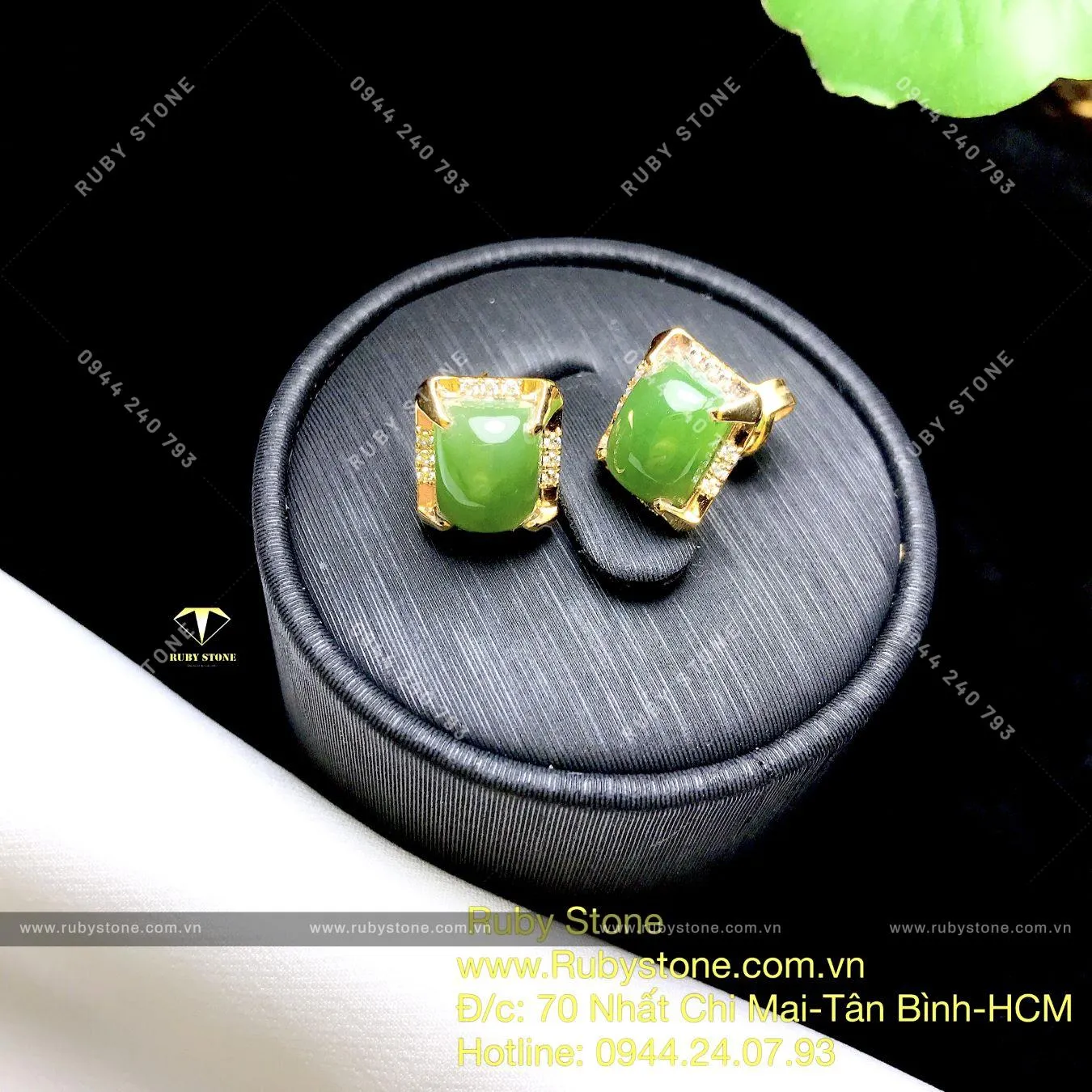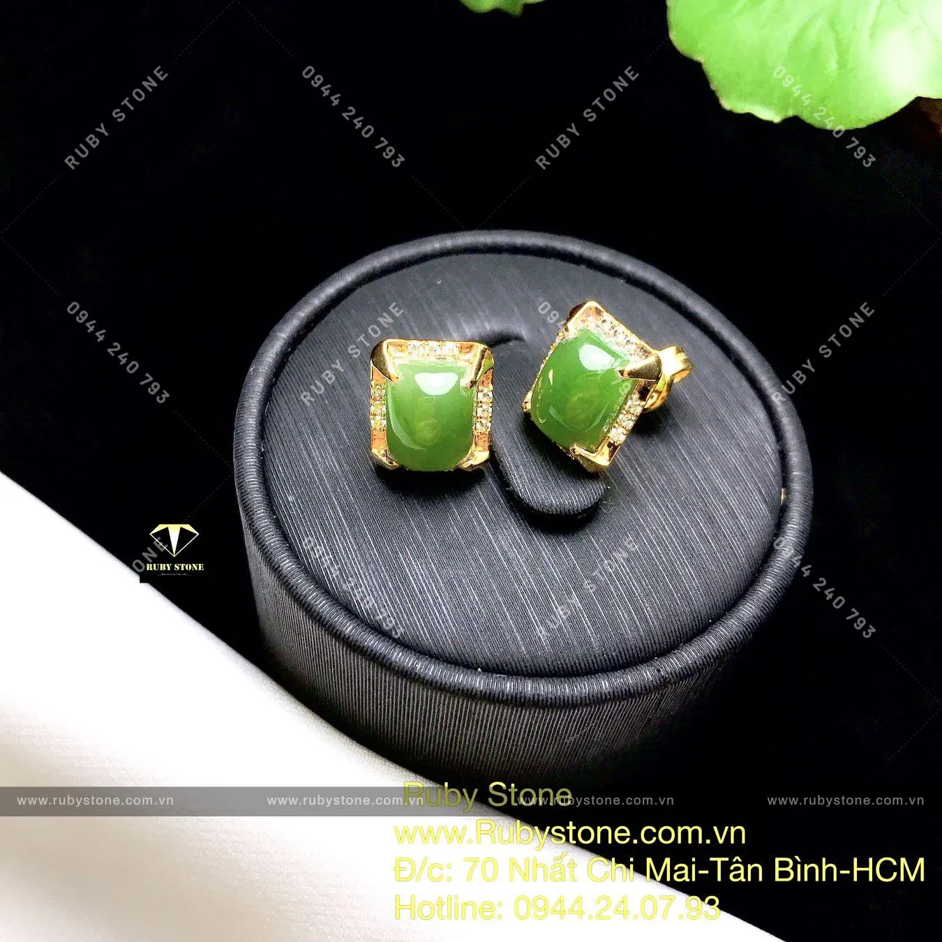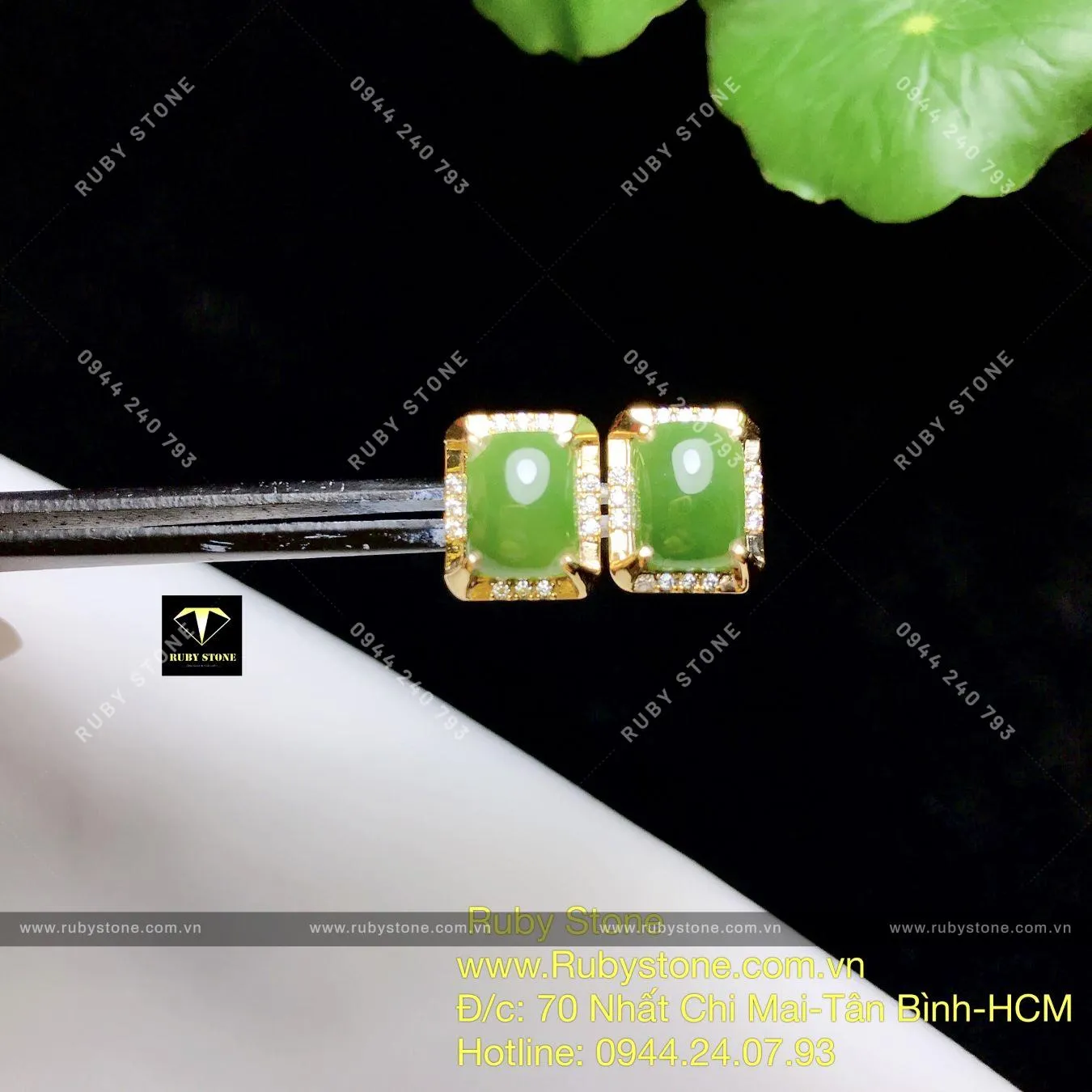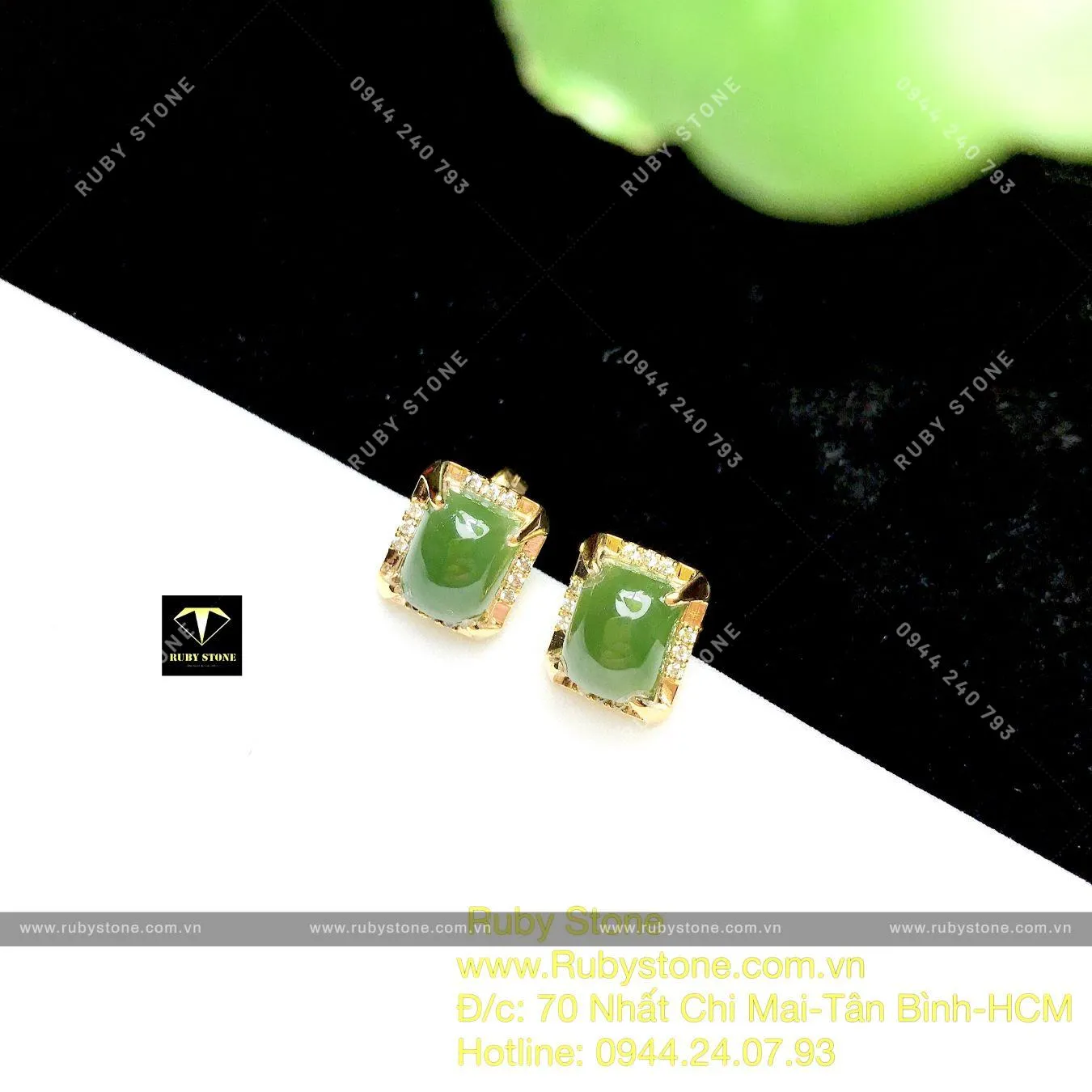 Khuyên Tai Ngọc Bích ổ Chữ Nhật, Vàng 10k - Ngọc Bích Phong Thủy