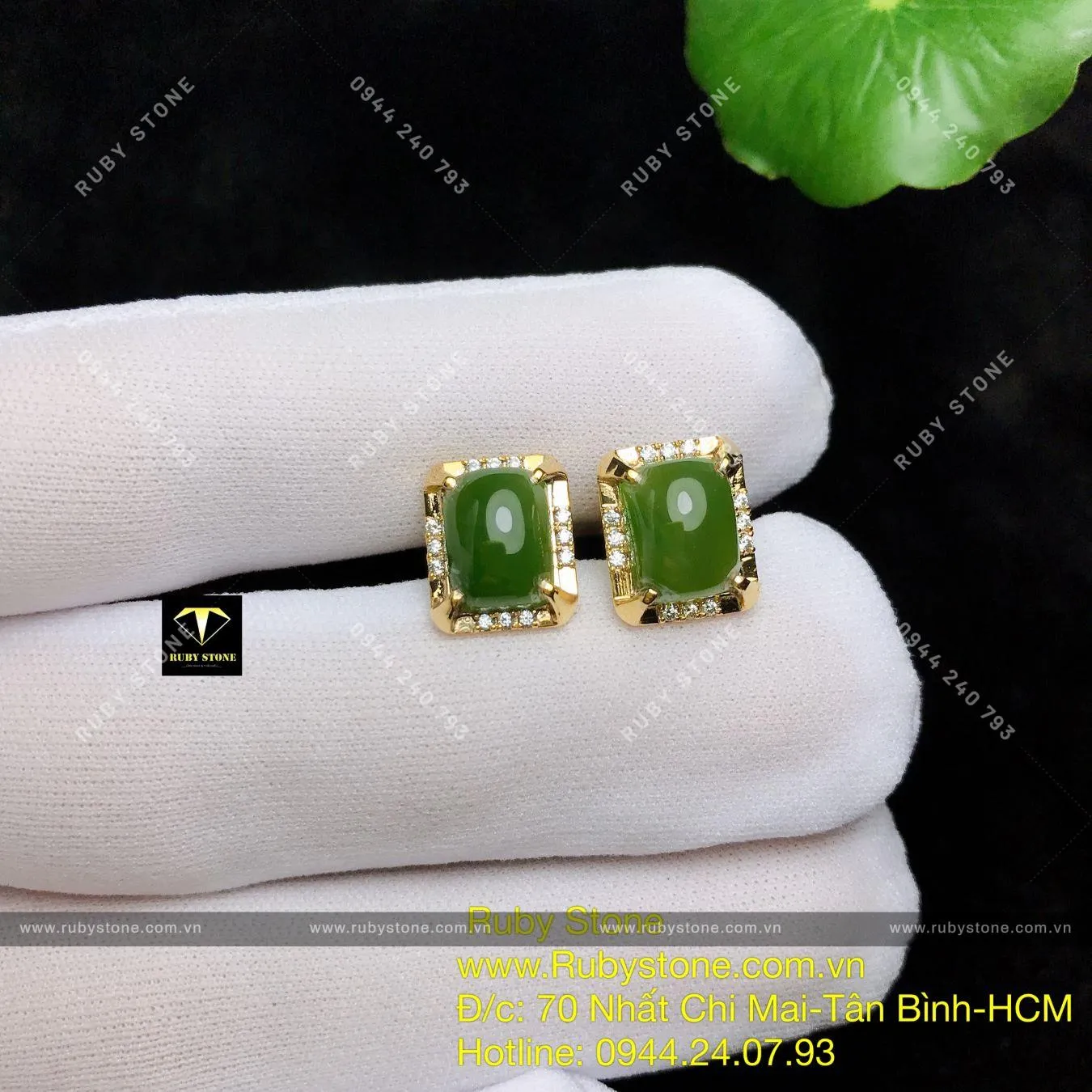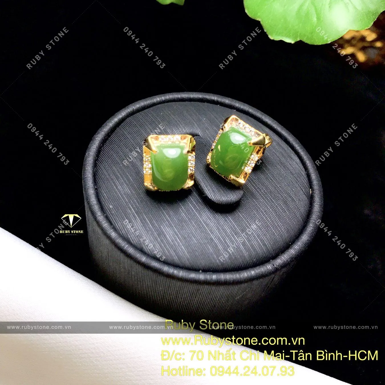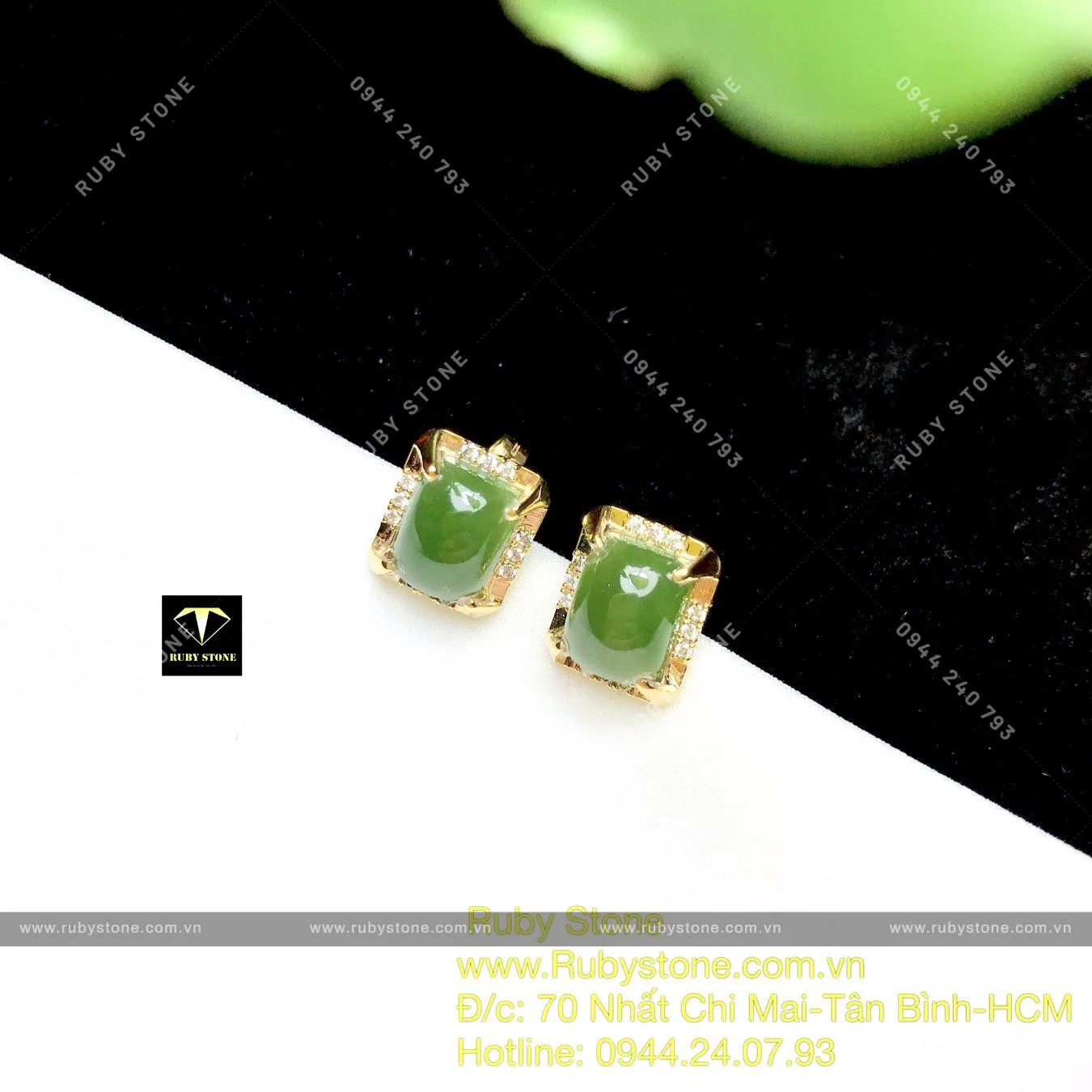 Khuyên tai Ngọc bích ổ chữ nhật, vàng 10k