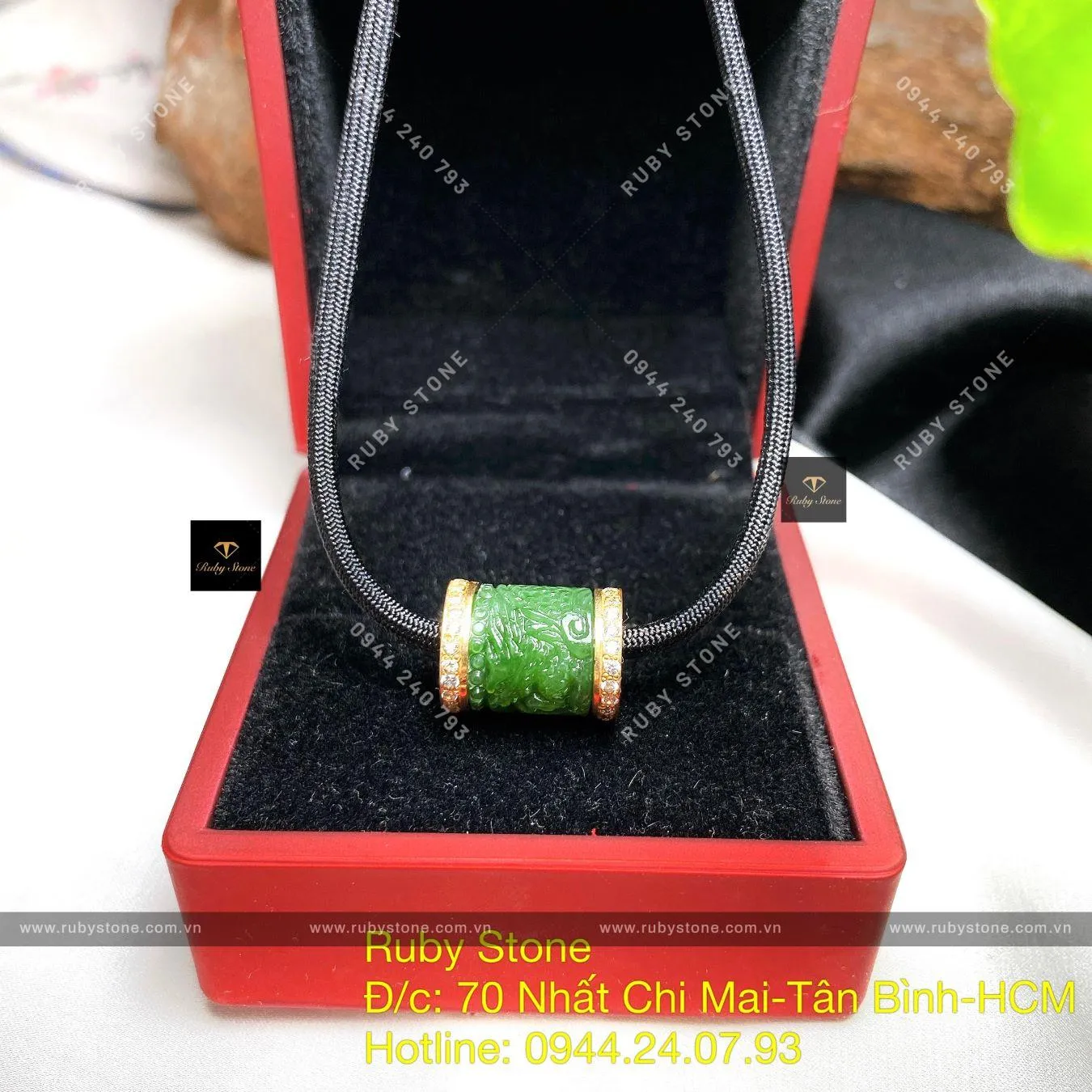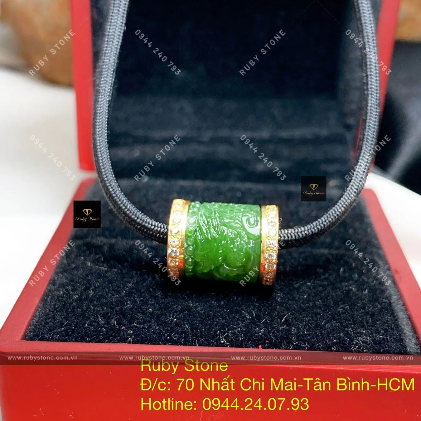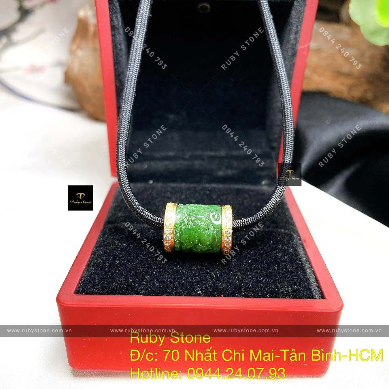 Lu Thống Ngọc Bích Canada Chạm Rồng, Vàng 18k - Ngọc Bích Phong Thủy