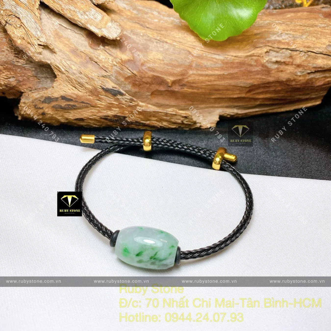 Vòng tay lu thống ngọc Cẩm thạch sơn thuỷ xanh lý dáng thon