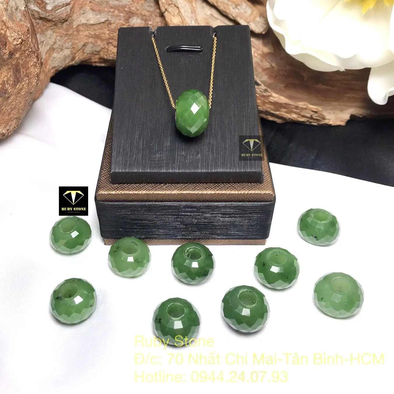 Mặt Dây Chuyền Charm Ngọc Bích Canada Xanh Lá Mài Giác - Ngọc Bích Phong Thủy