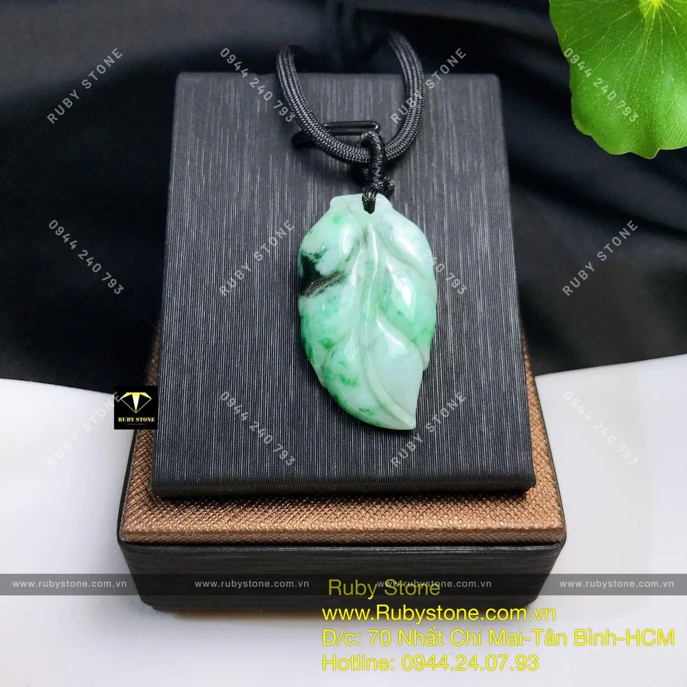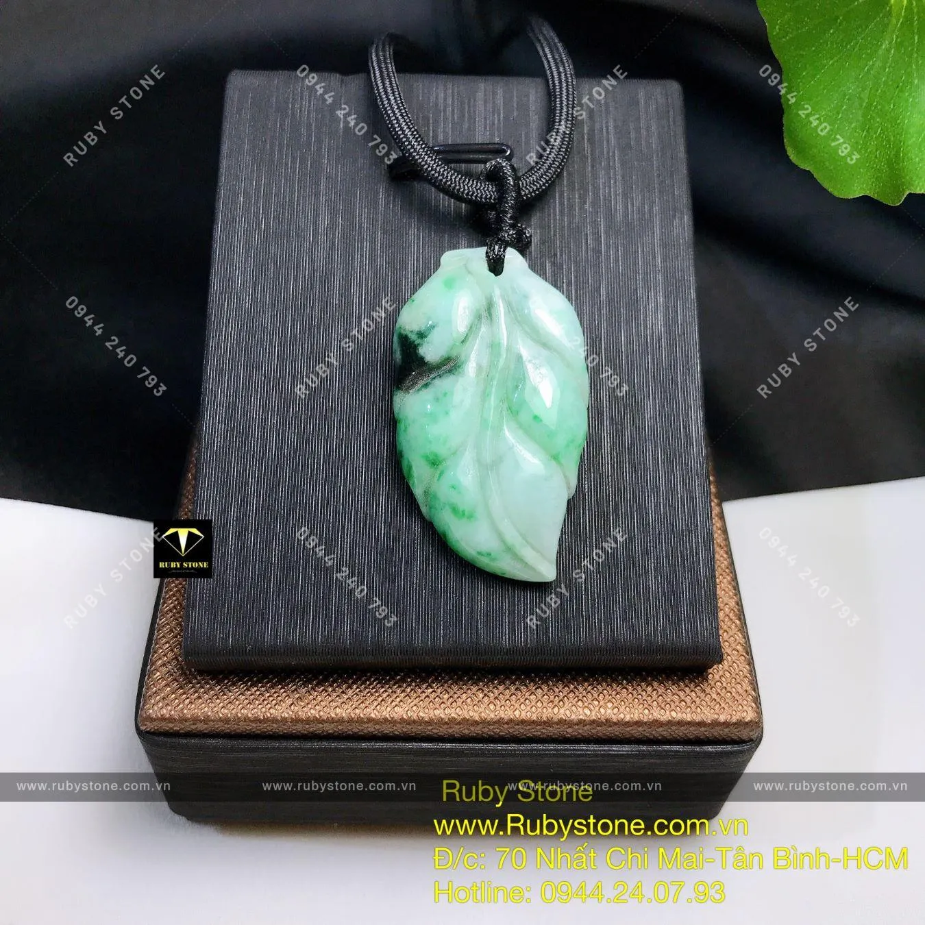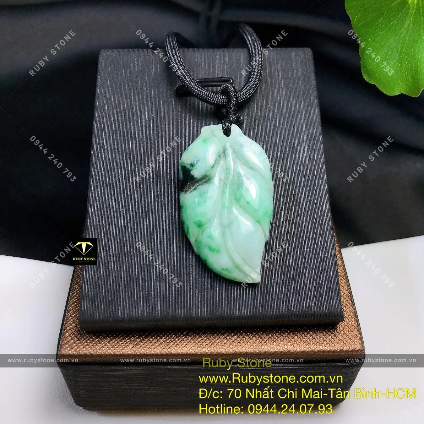 Mặt dây chuyền chiếc lá Cẩm Thạch sơn thuỷ (Jadeite A), KT 38mm