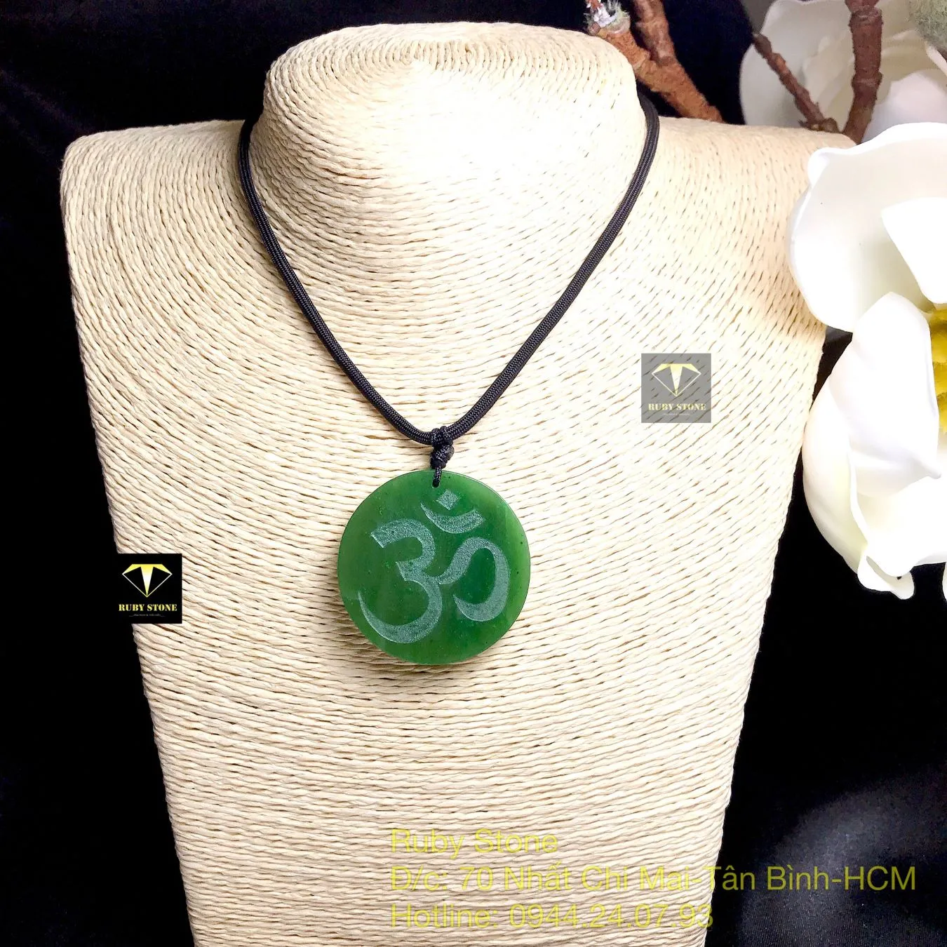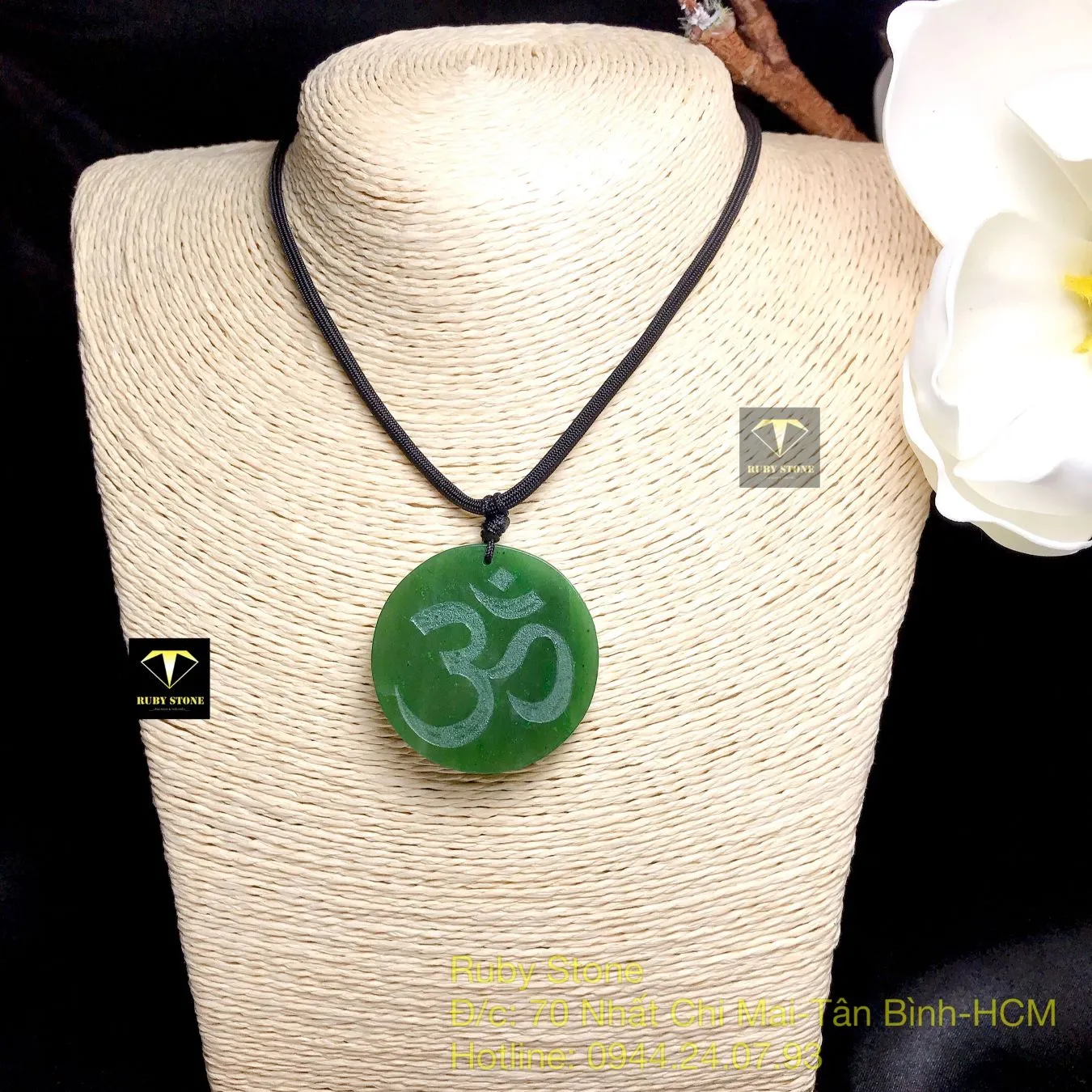Mặt Dây Chuyền Chữ “OM” Ngọc Bích Canada, Kích Thước 39mm - Ngọc Bích Phong Thủy