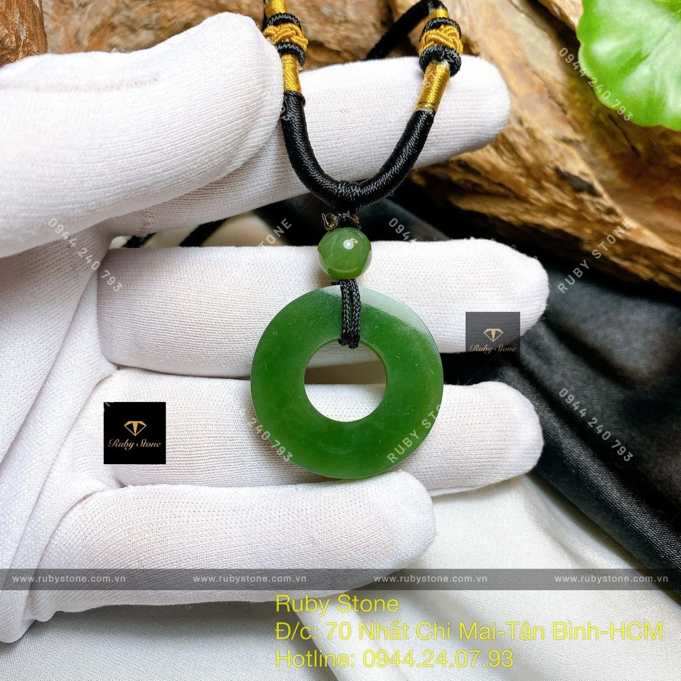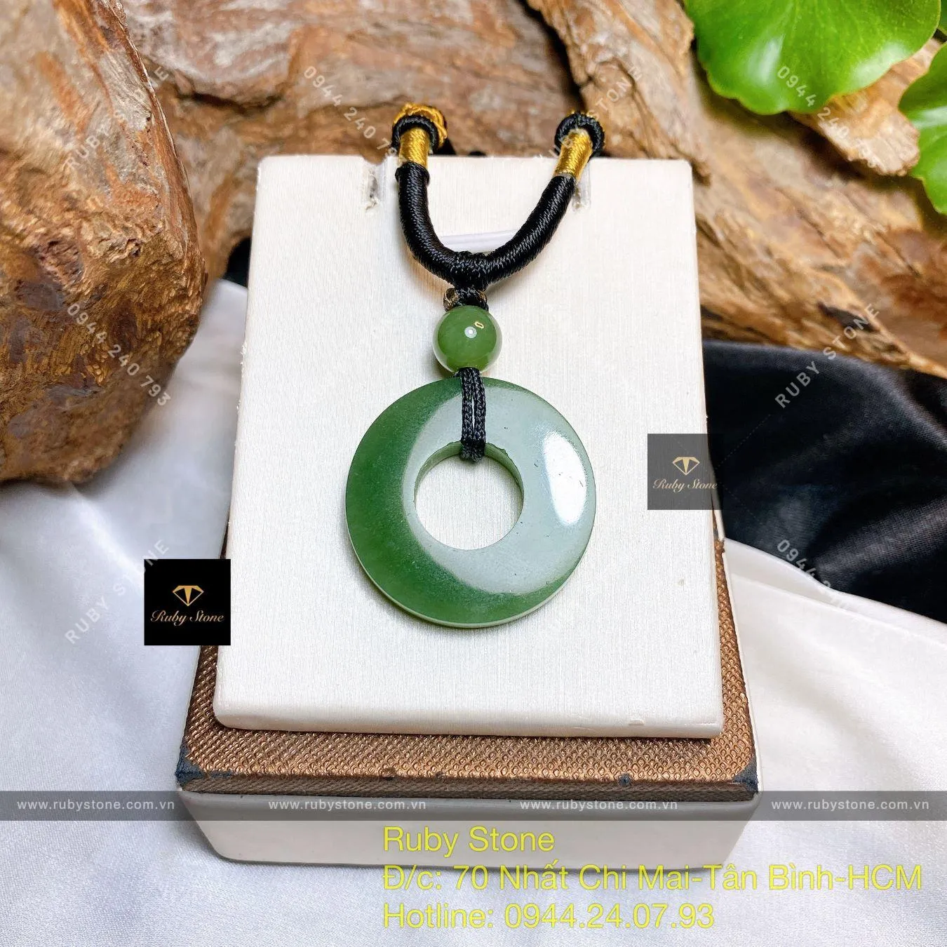 Mặt dây Đồng điếu ngọc bích Canada xanh lá, ĐK 28mm