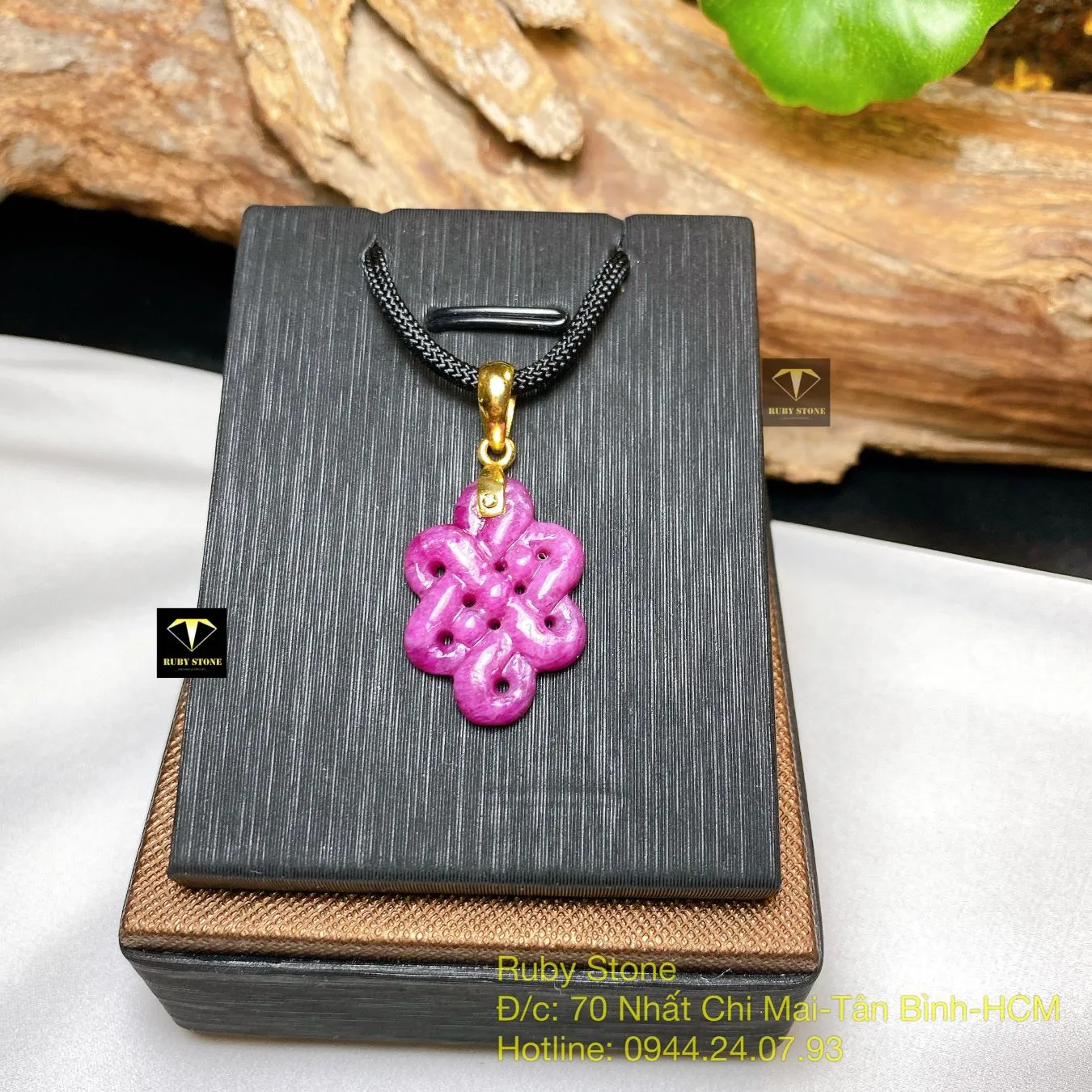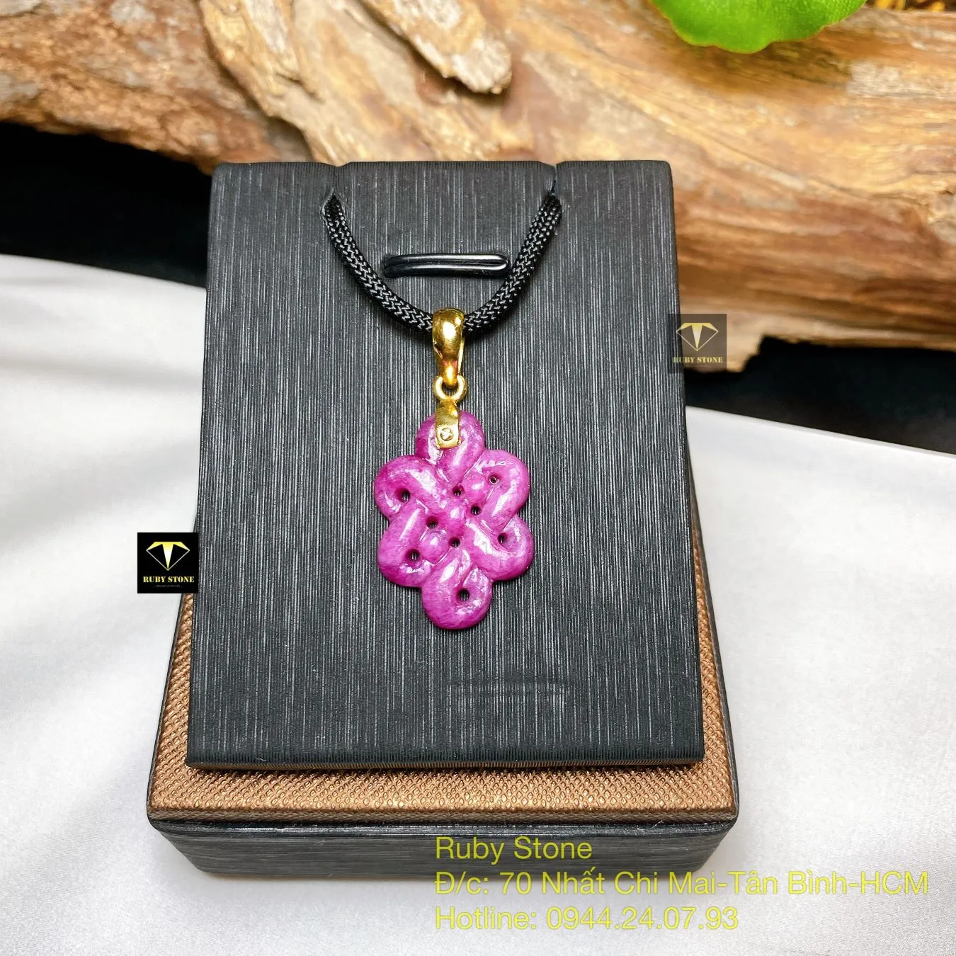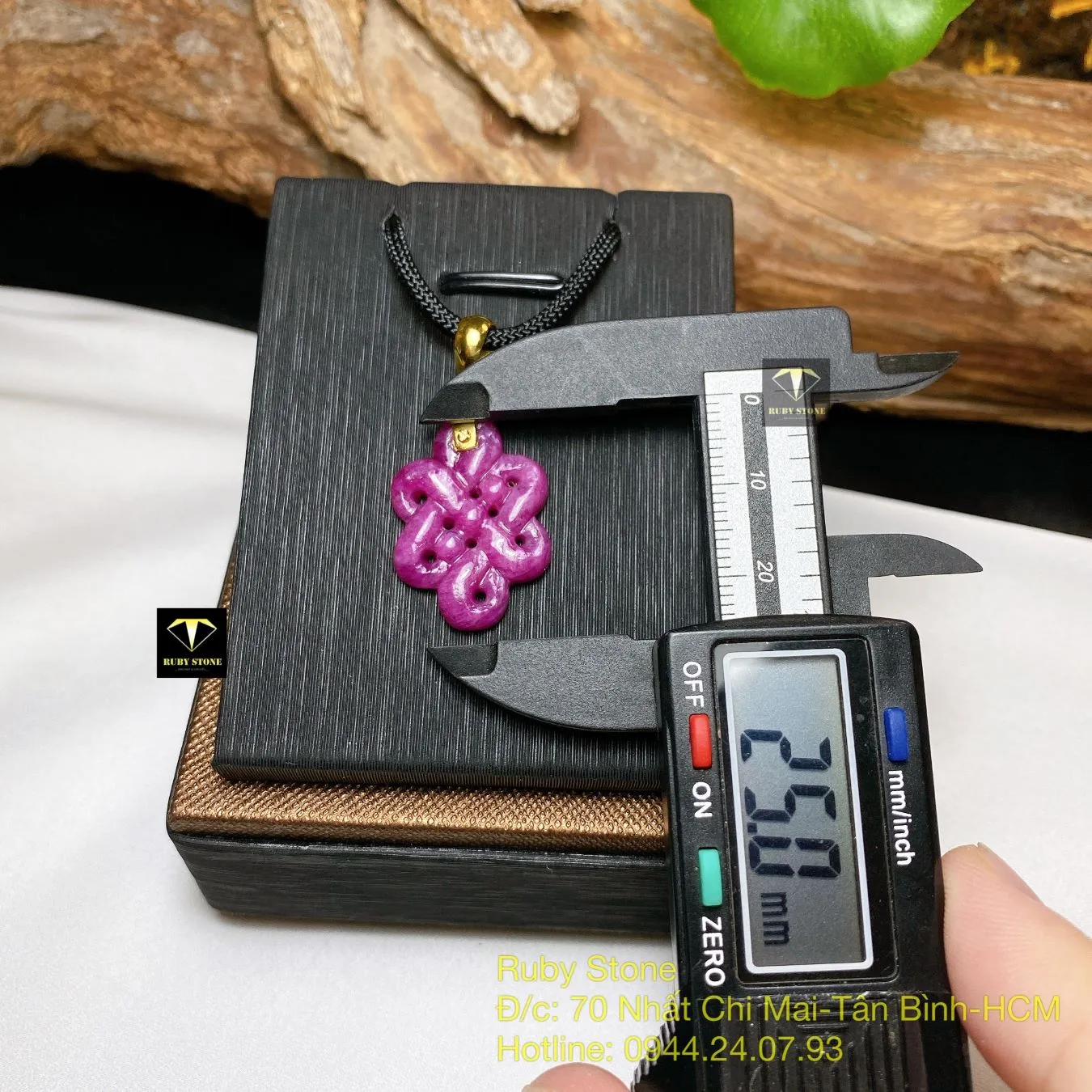 Mặt dây chuyền đồng tâm kết Ruby Nam Phi, móc vàng 18k