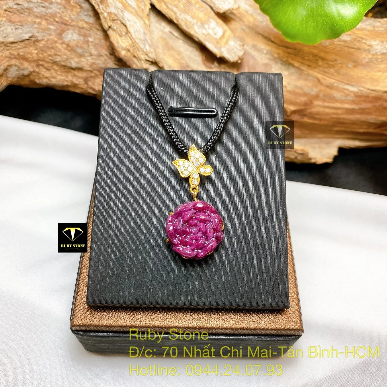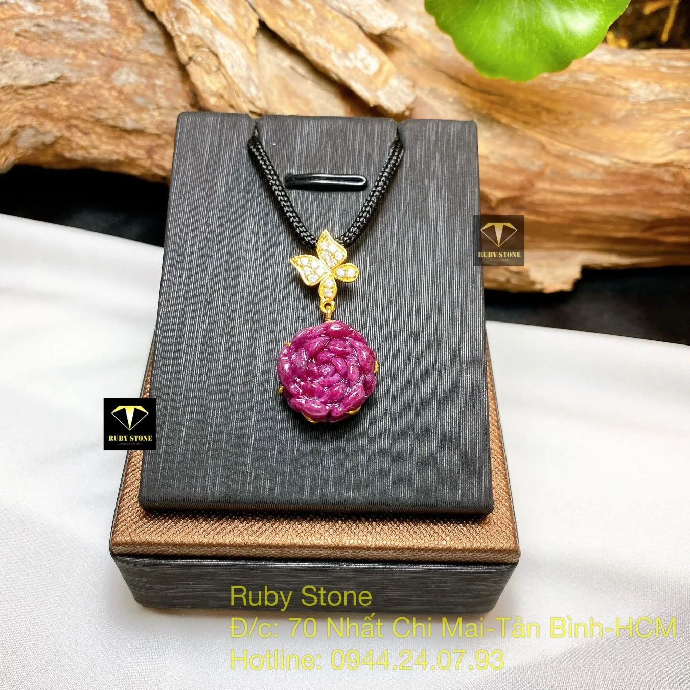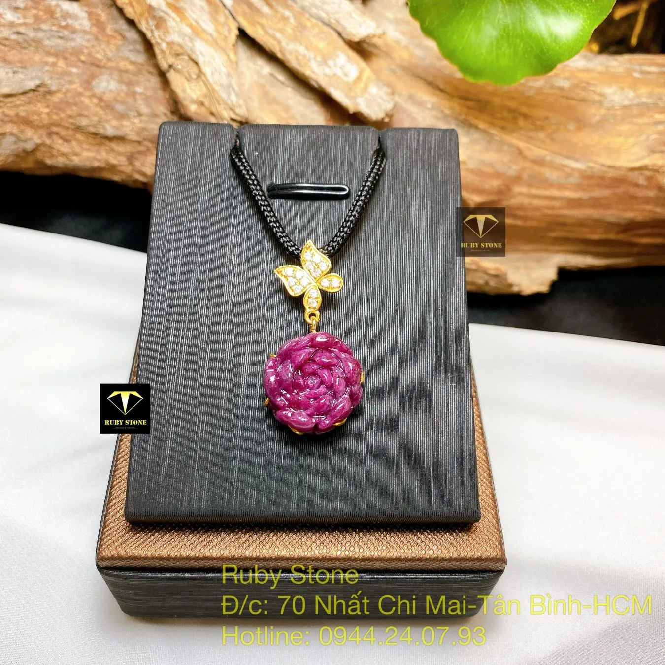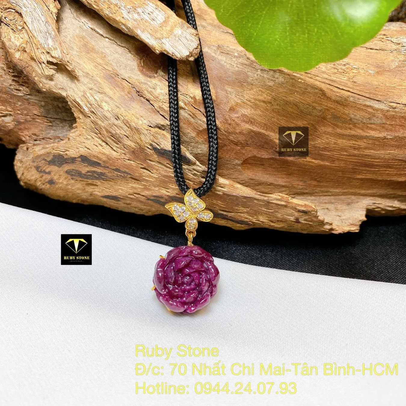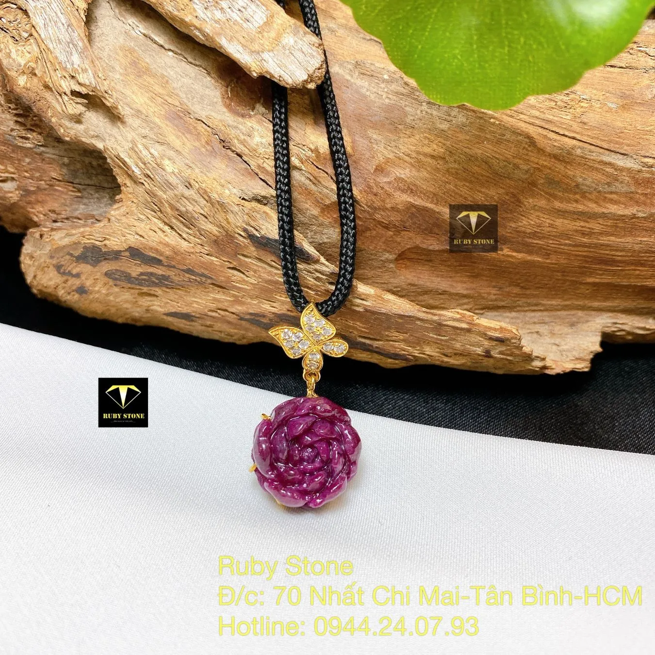 Mặt Dây Chuyền Hoa Mẫu đơn Ruby Nam Phi, Móc Vàng 18k - Ngọc Bích Phong Thủy