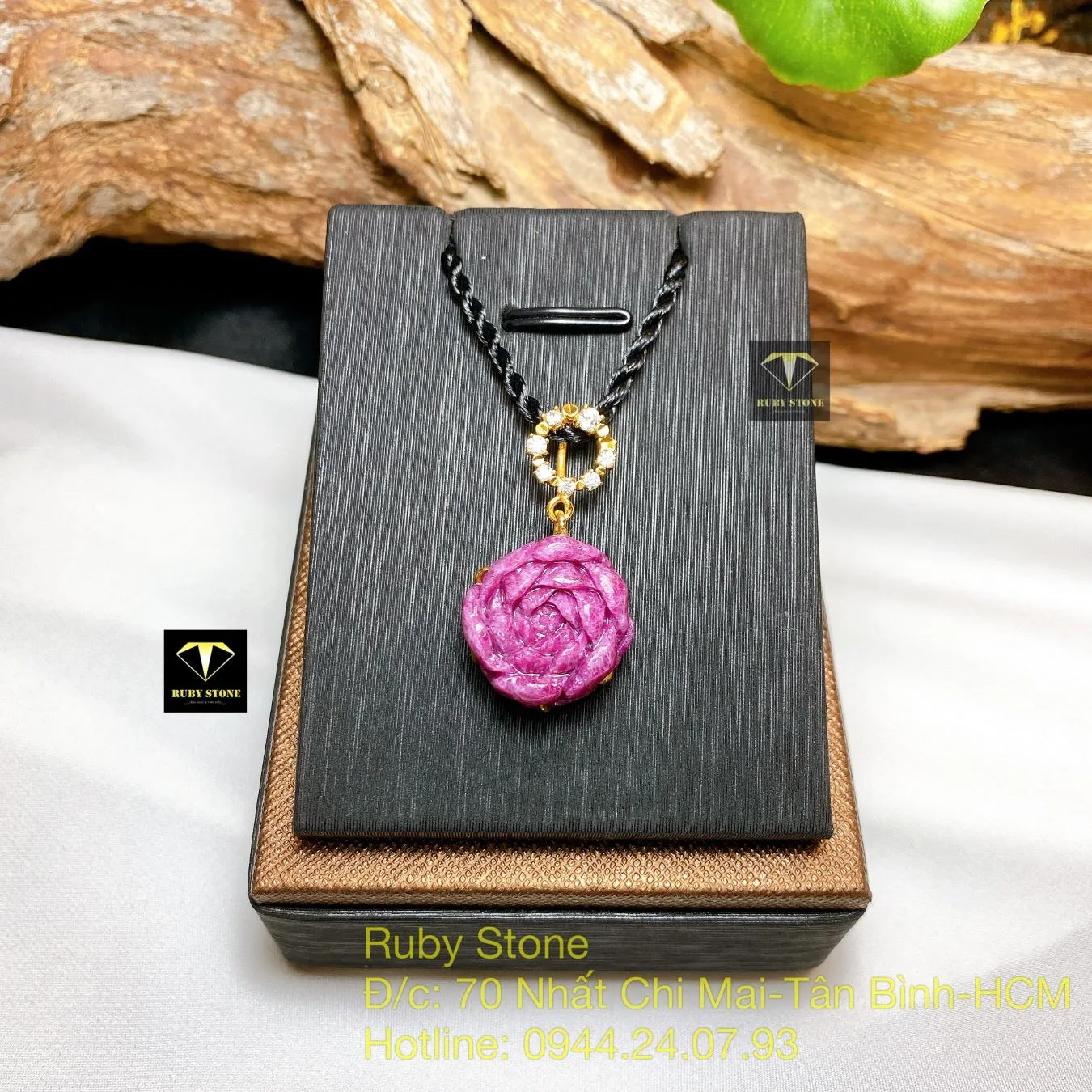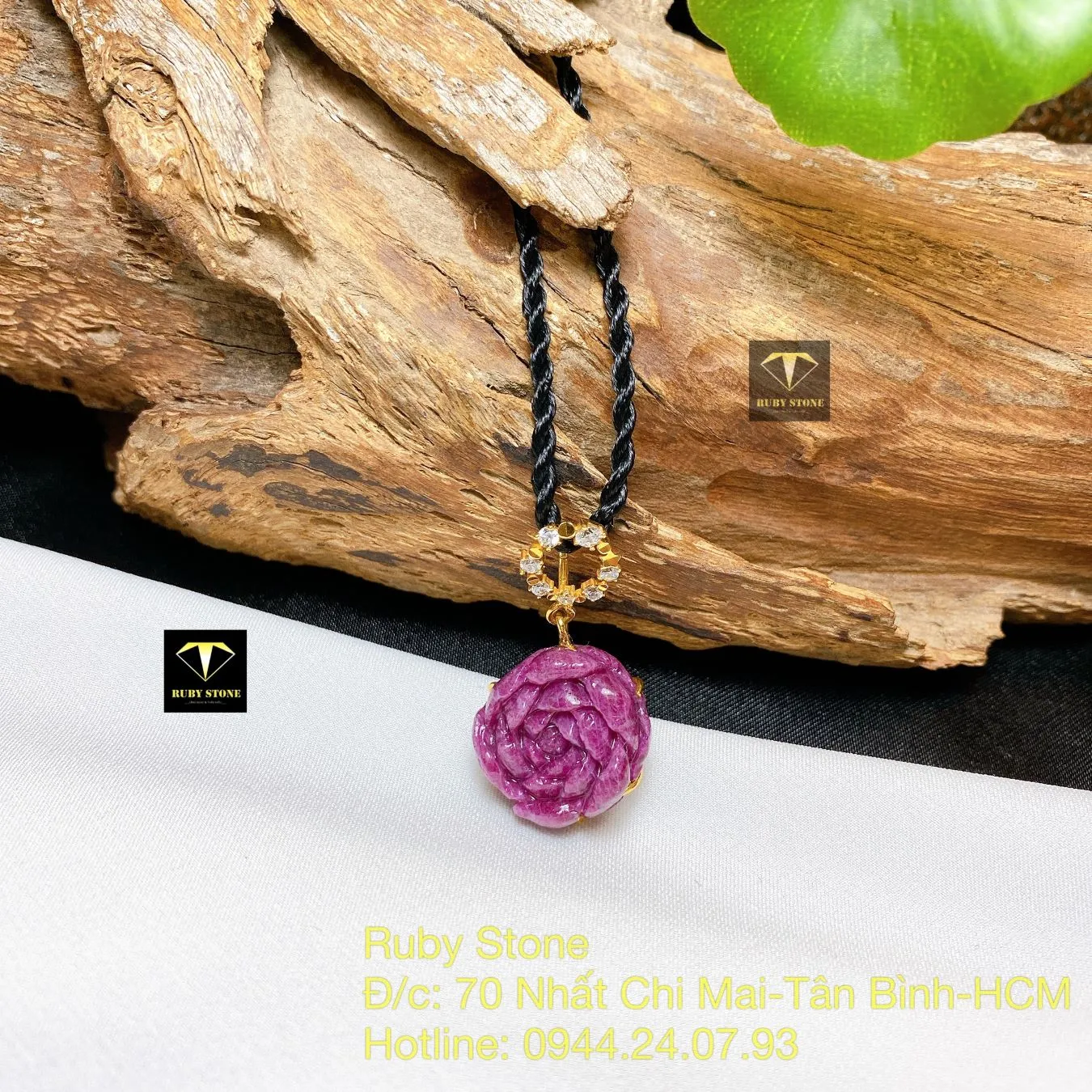 Mặt Dây Chuyền Hoa Mẫu đơn Ruby Nam Phi, Móc Vàng 18k - Ngọc Bích Phong Thủy