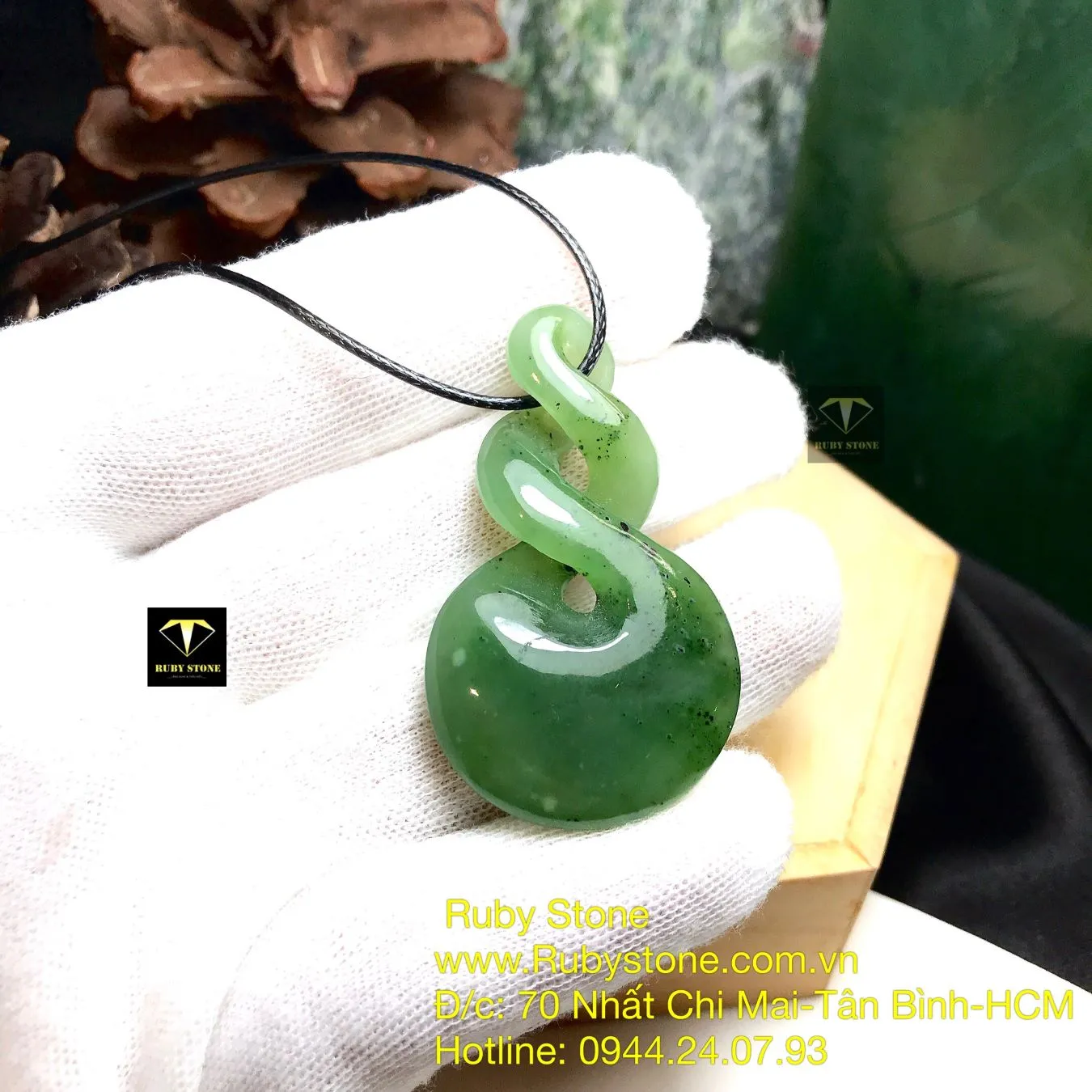 Mặt Dây Chuyền Ngọc Bích Maori Kiểu Double Twist, Kích Thuớc 50mm - Ngọc Bích Phong Thủy