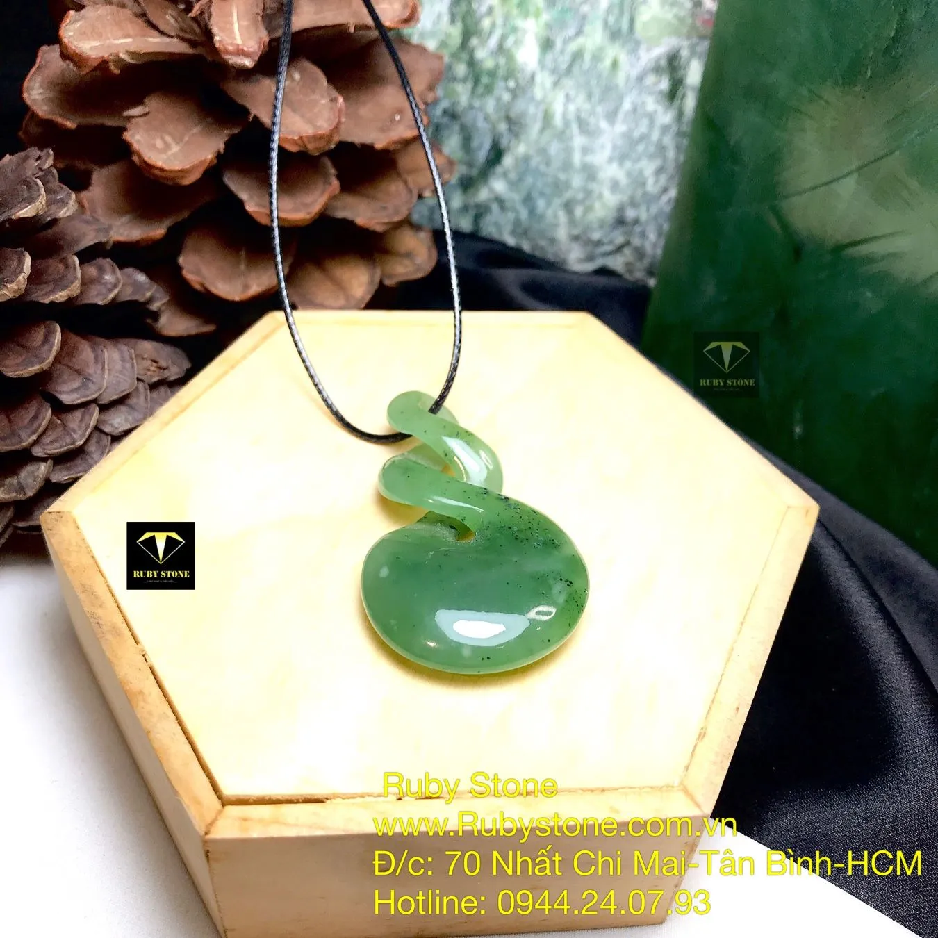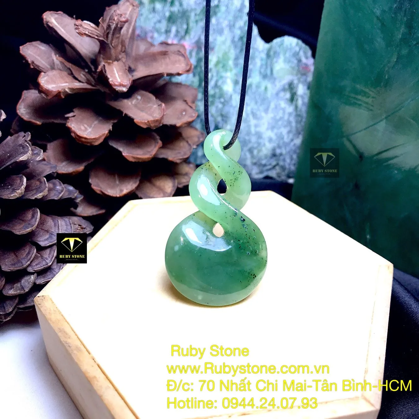 Mặt dây chuyền ngọc bích Maori kiểu double twist, kích thuớc 50mm