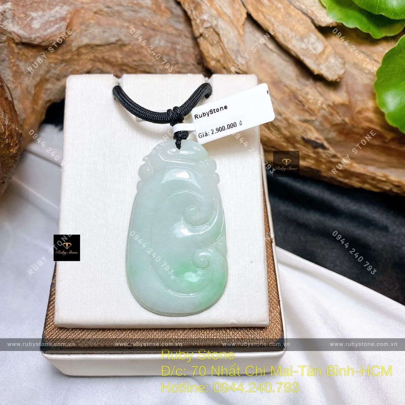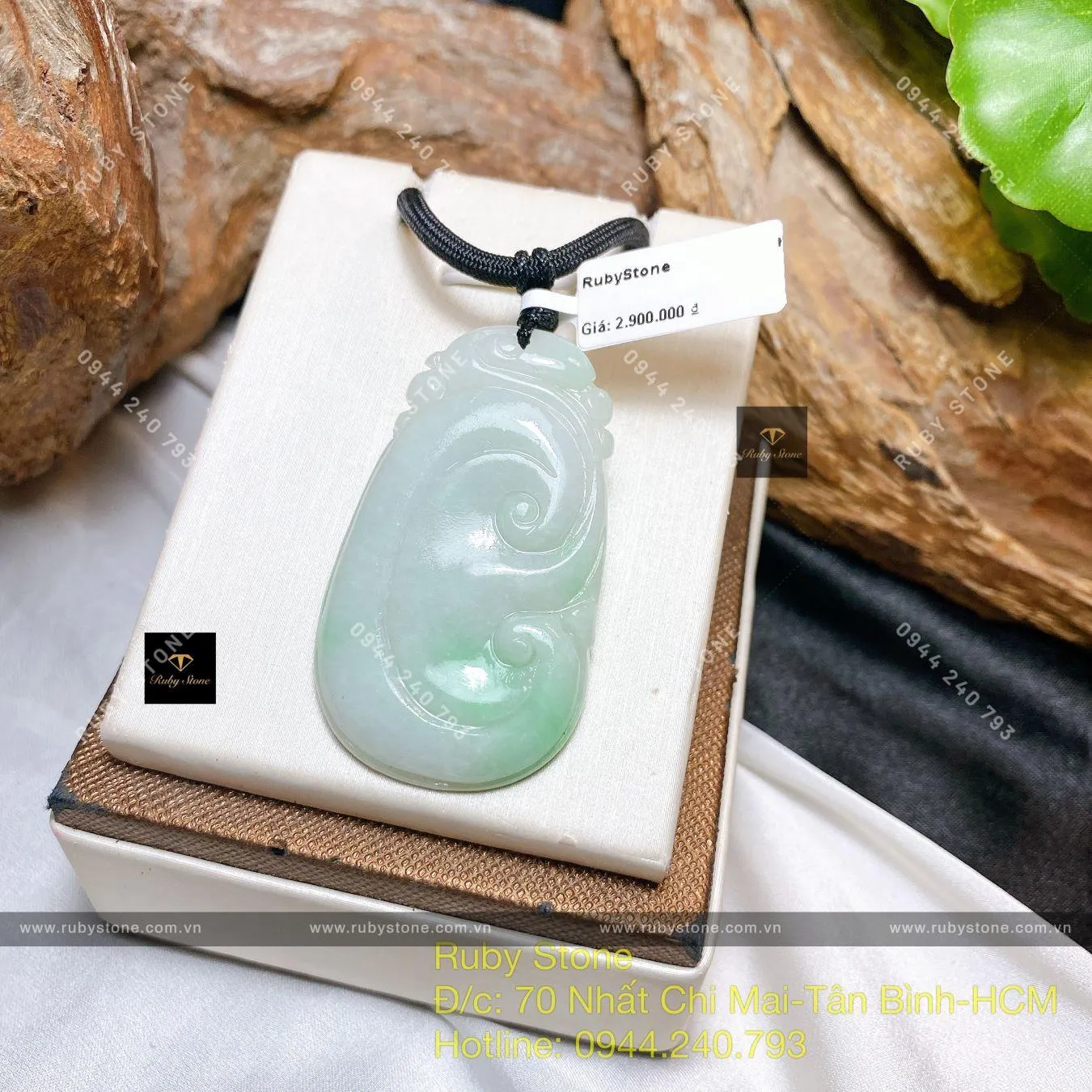 Mặt dây chuyền ngọc bội như ý xanh lý, KT 46mm