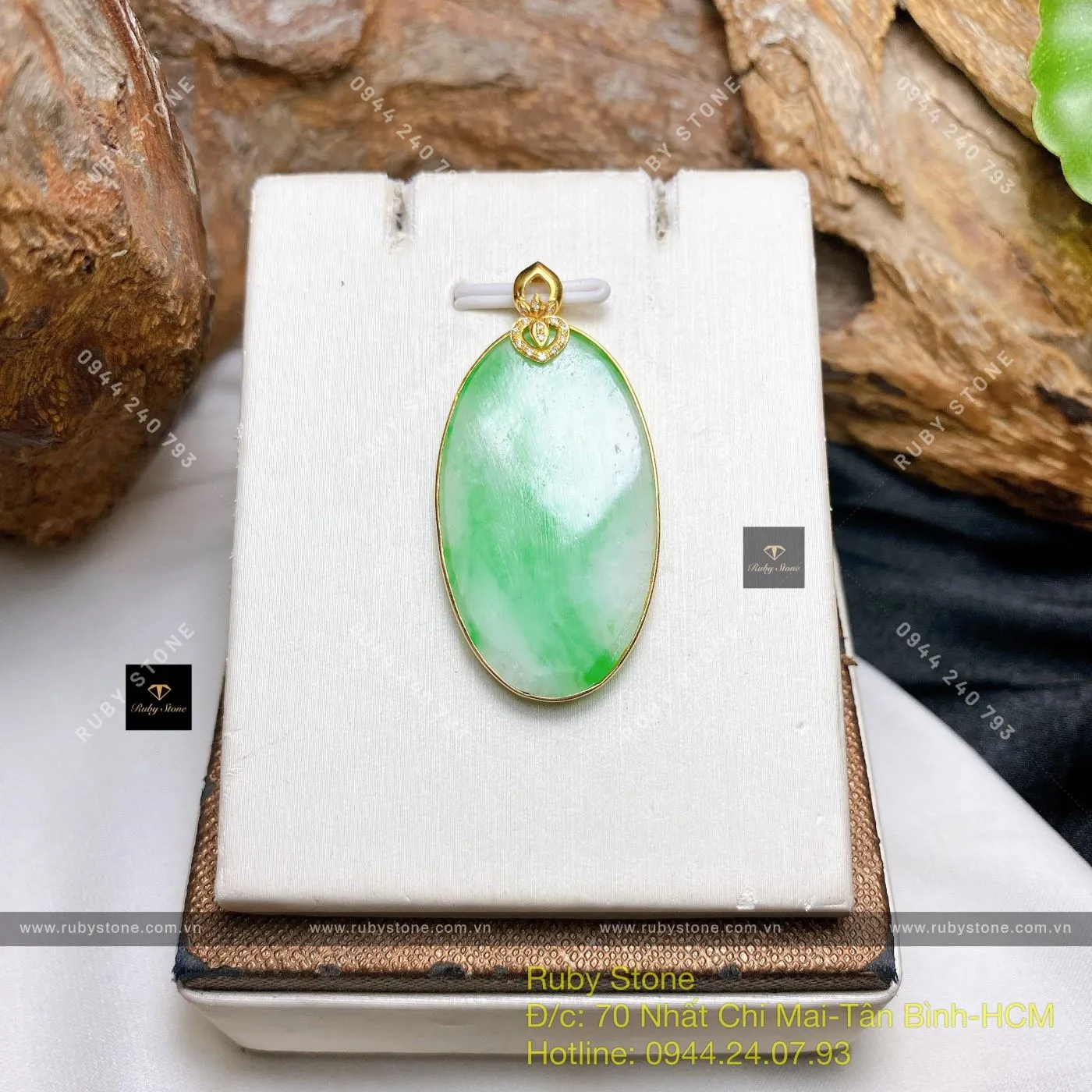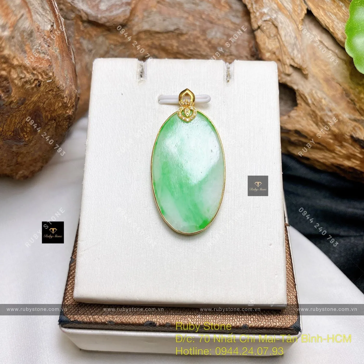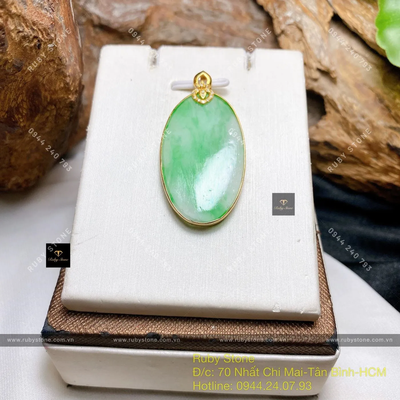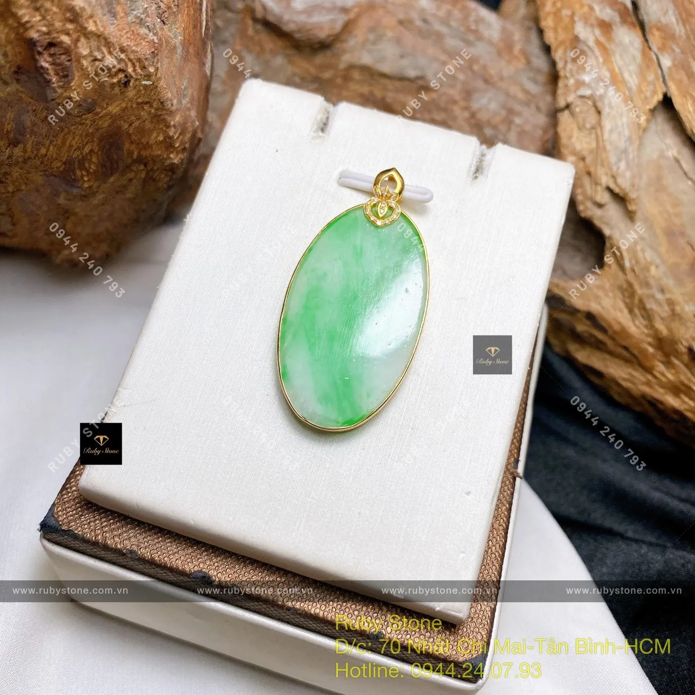 Mặt dây ngọc Cẩm thạch xanh lý táo, KT 38mm, vàng 18k
