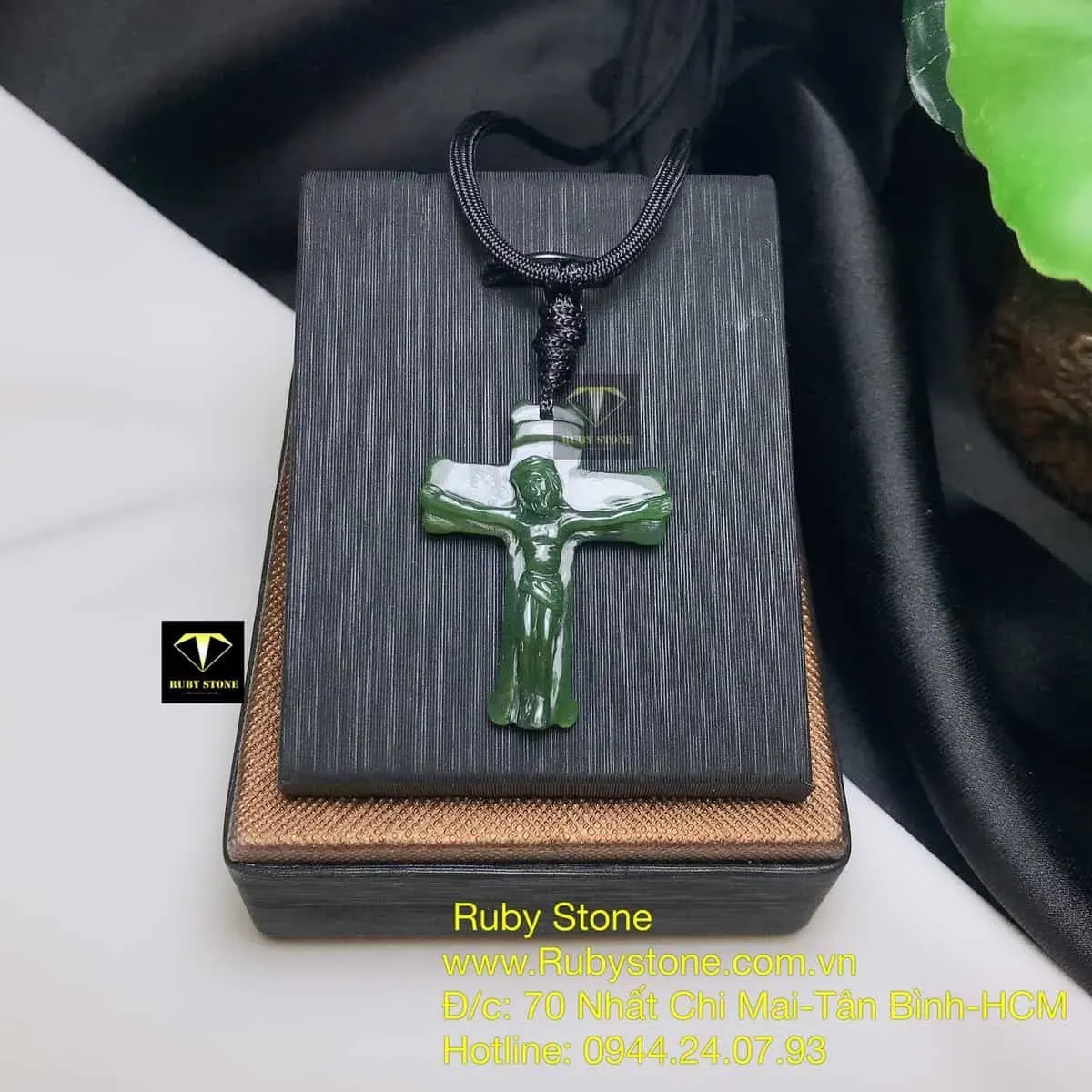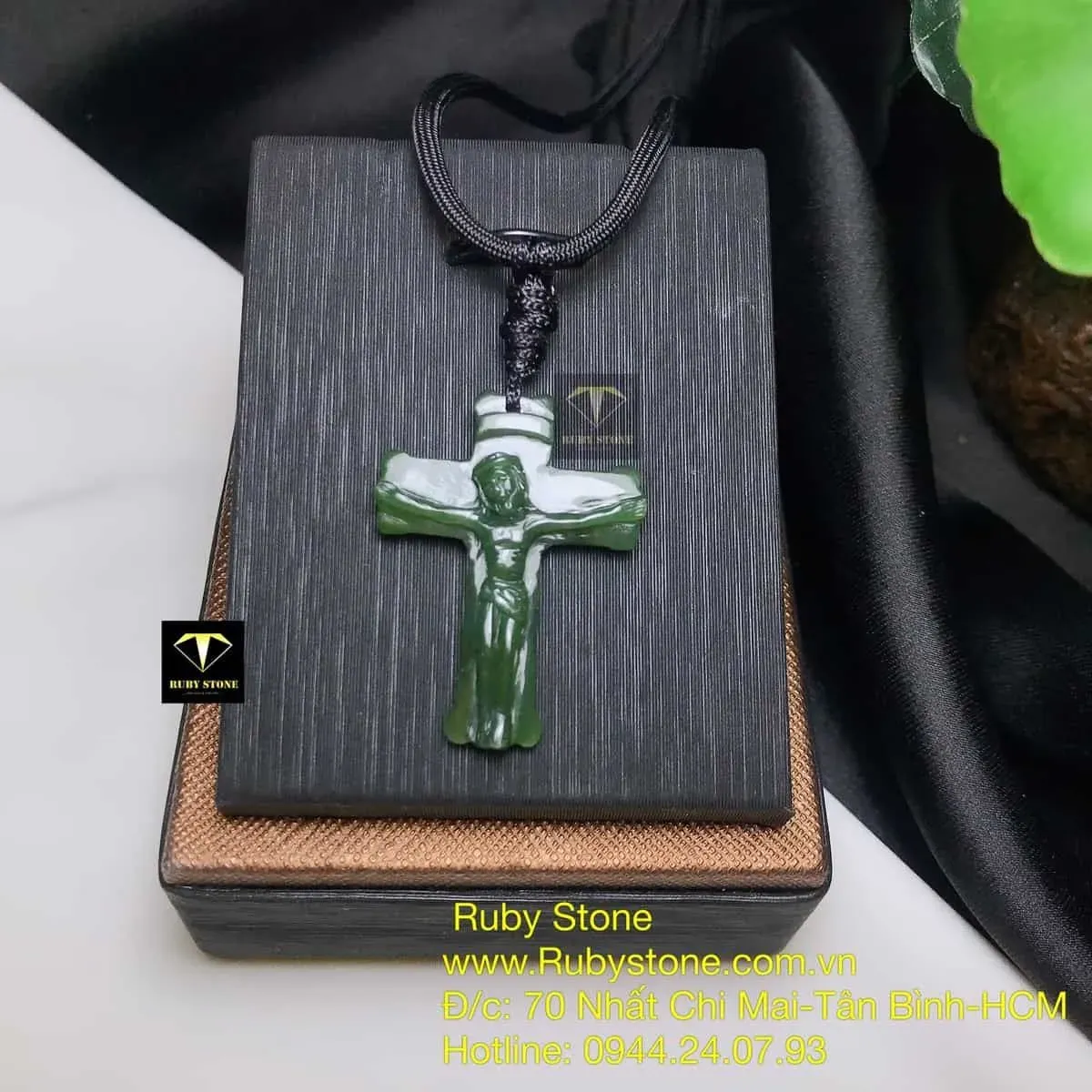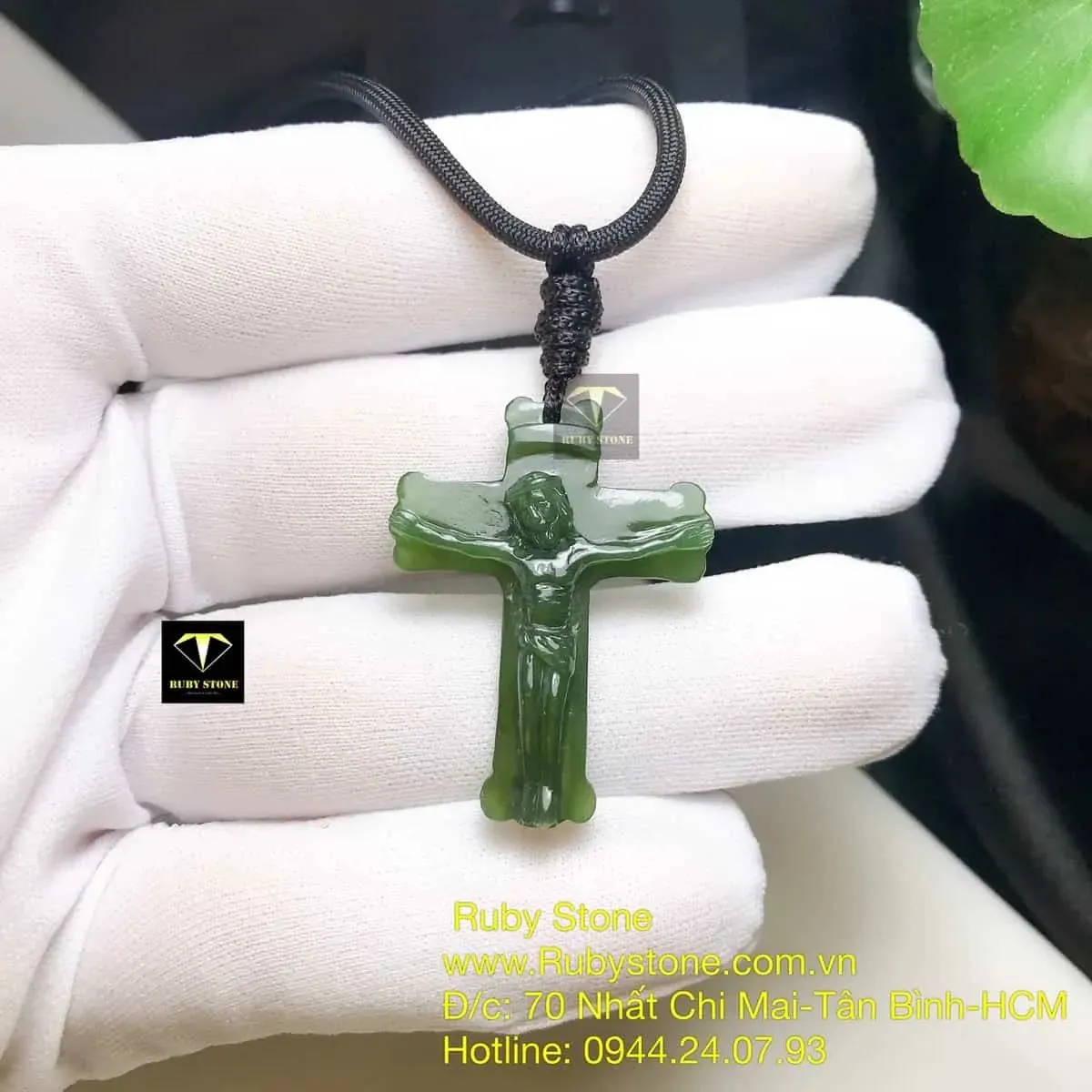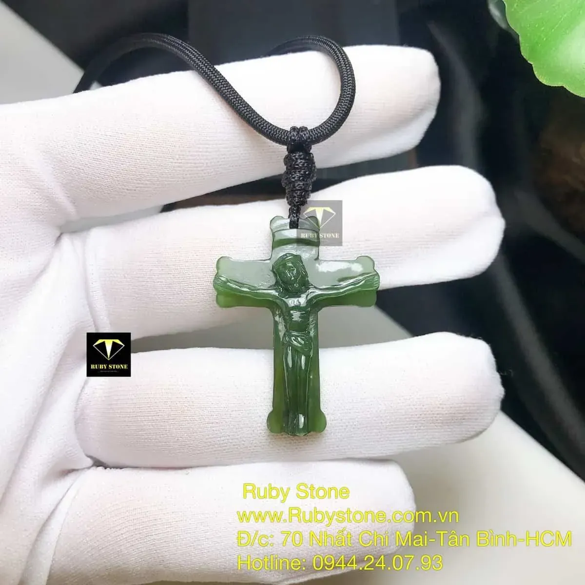 Mặt dây chuyền Thánh Giá ngọc bích chạm tay, KT 36mm