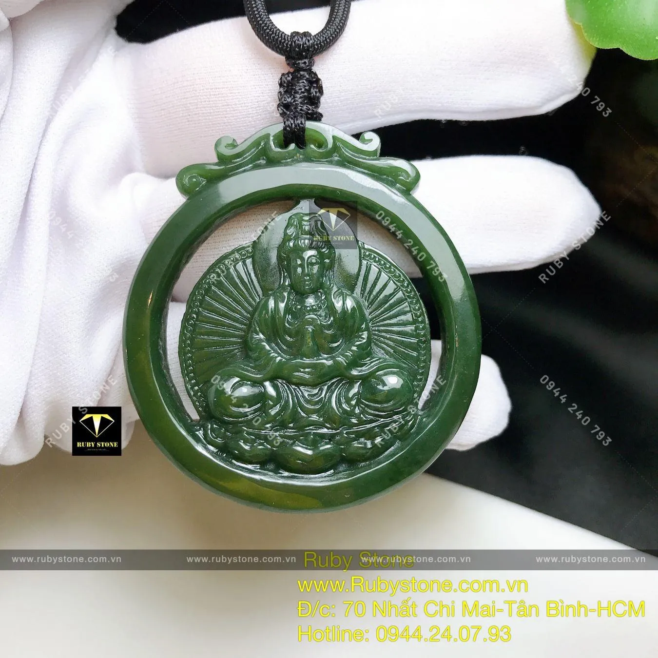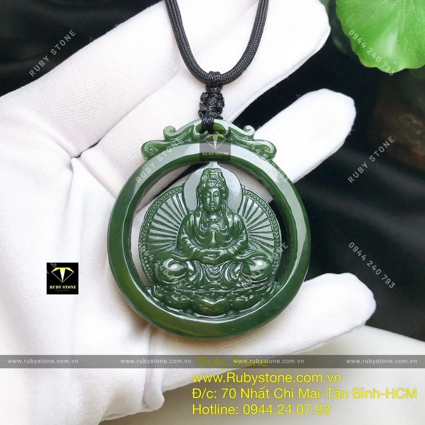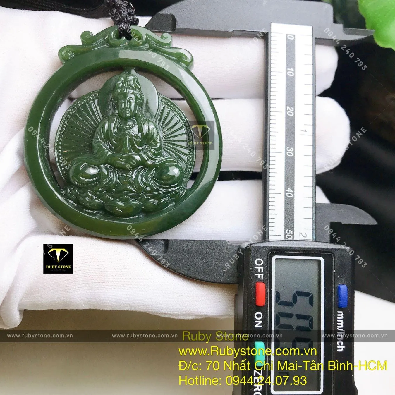 Phật Quan Âm Ngọc Bích Canada Tạc Tay Tinh Xảo, KT 51mm - Ngọc Bích Phong Thủy