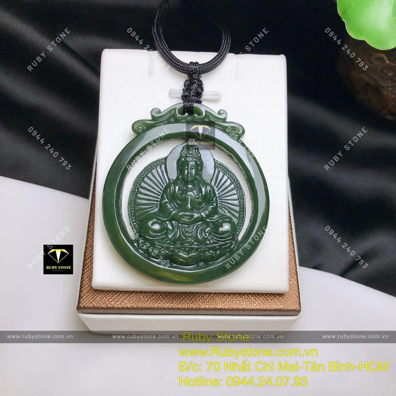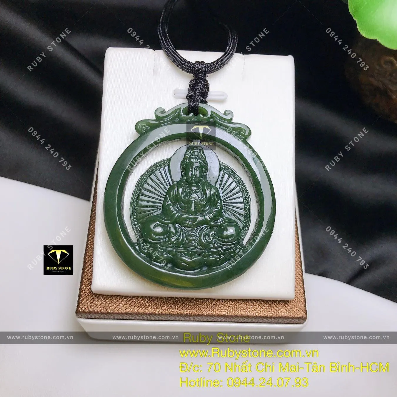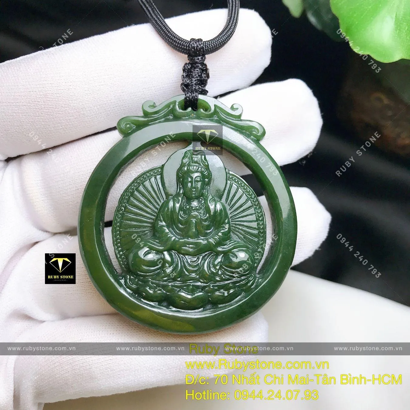 Phật Quan Âm Ngọc Bích Canada Tạc Tay Tinh Xảo, KT 51mm - Ngọc Bích Phong Thủy