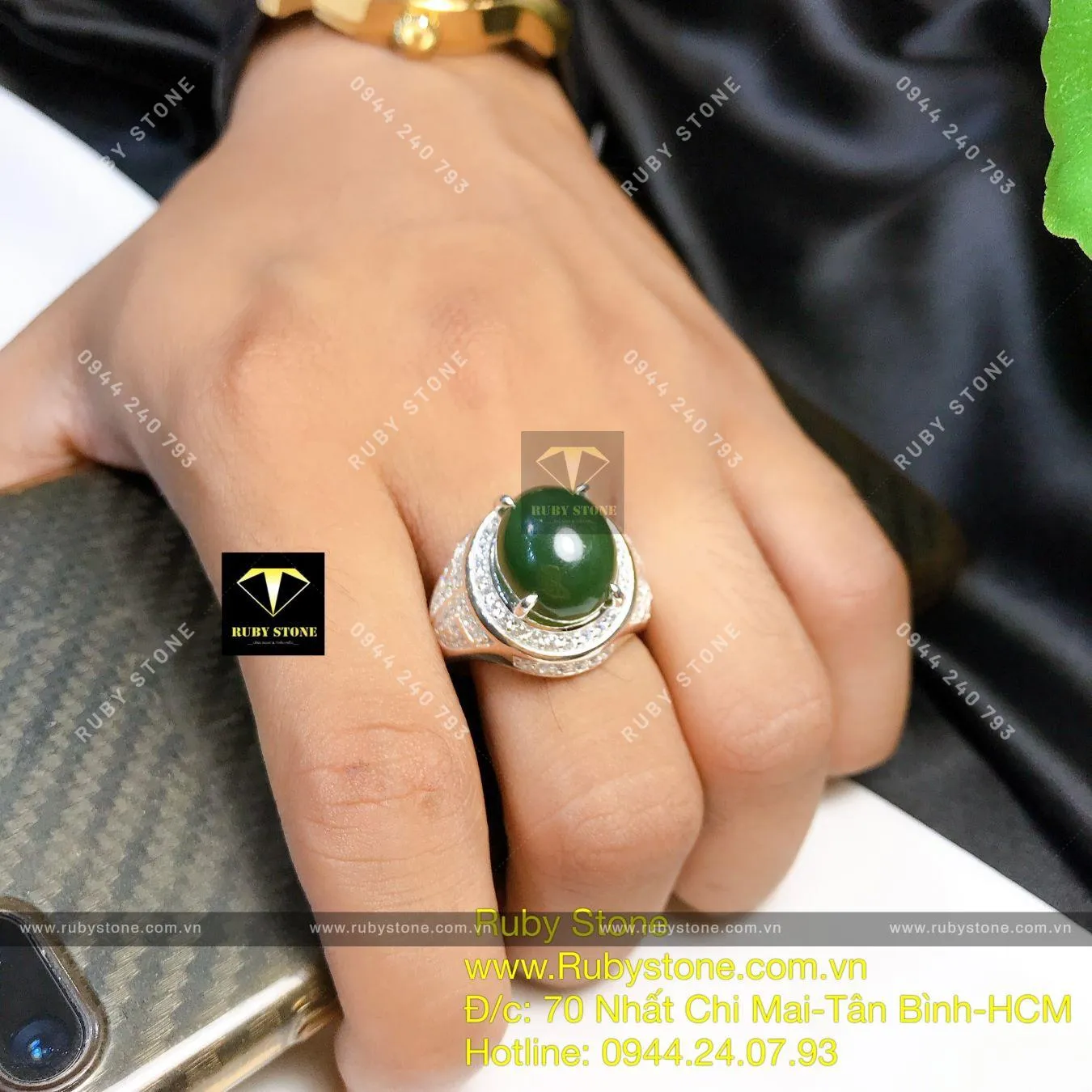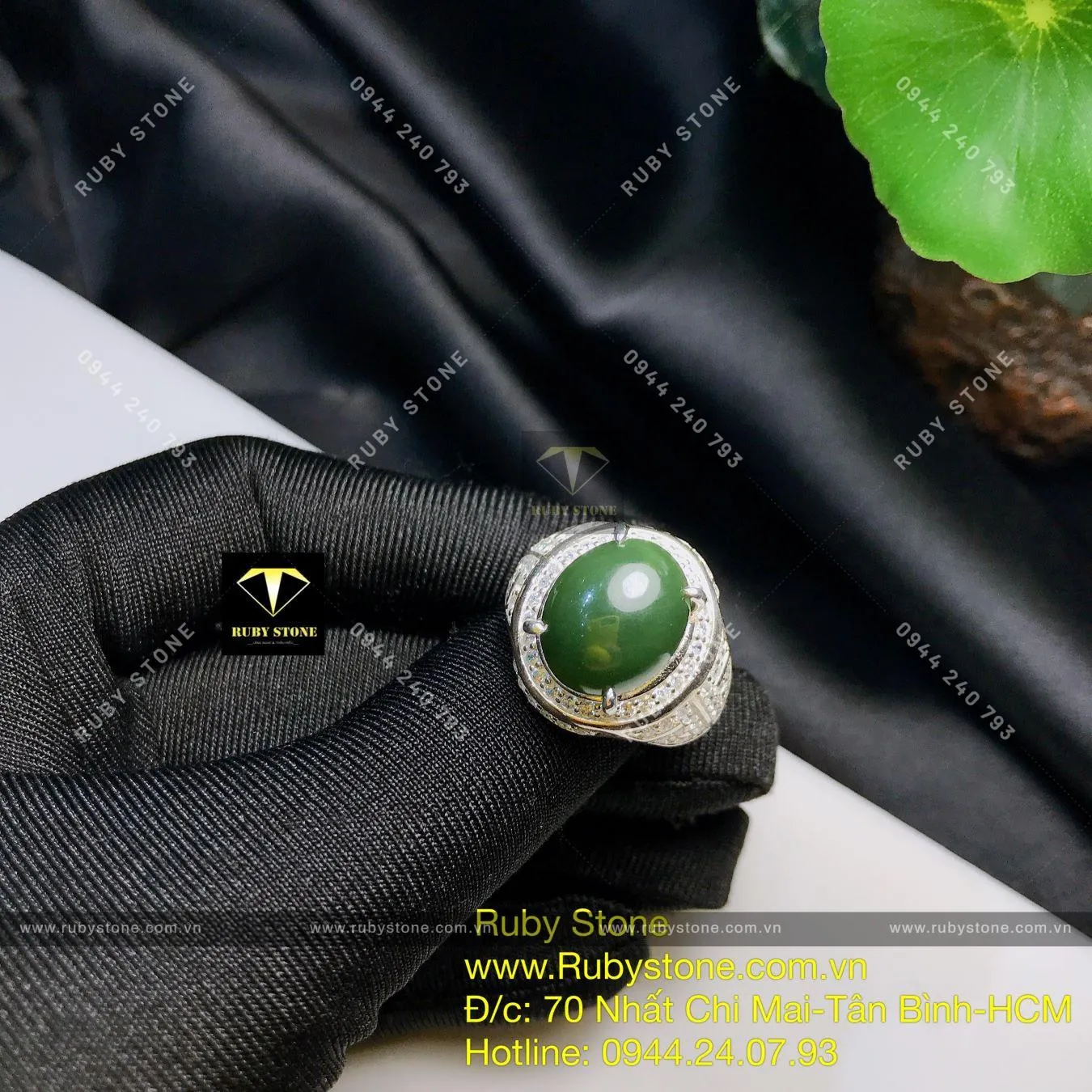 Nhẫn nam Oval ngọc bích Canada, bạc 925