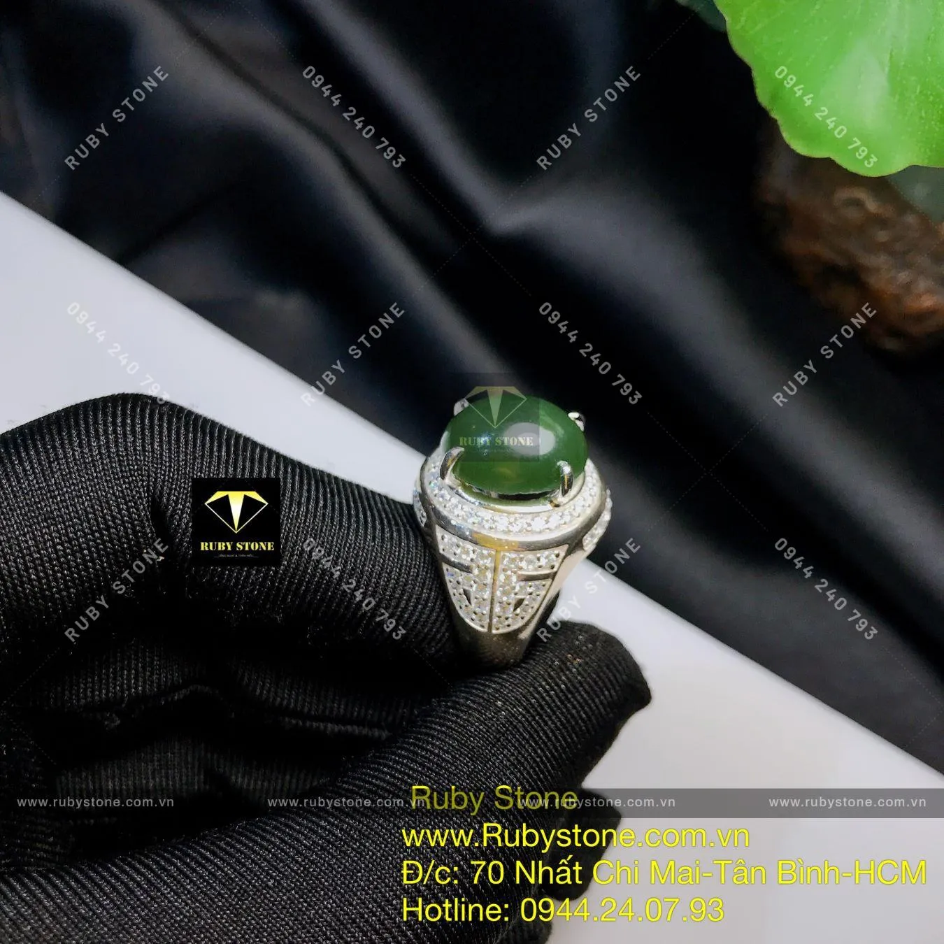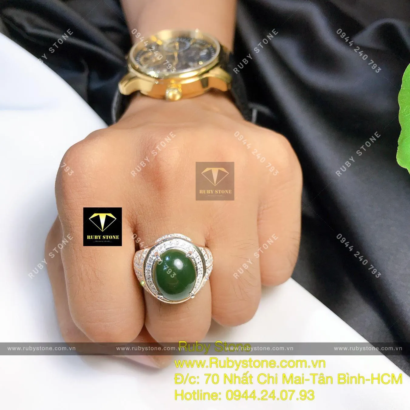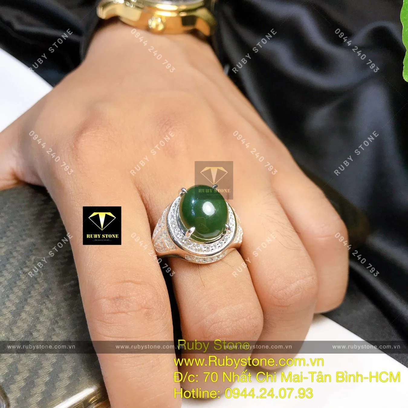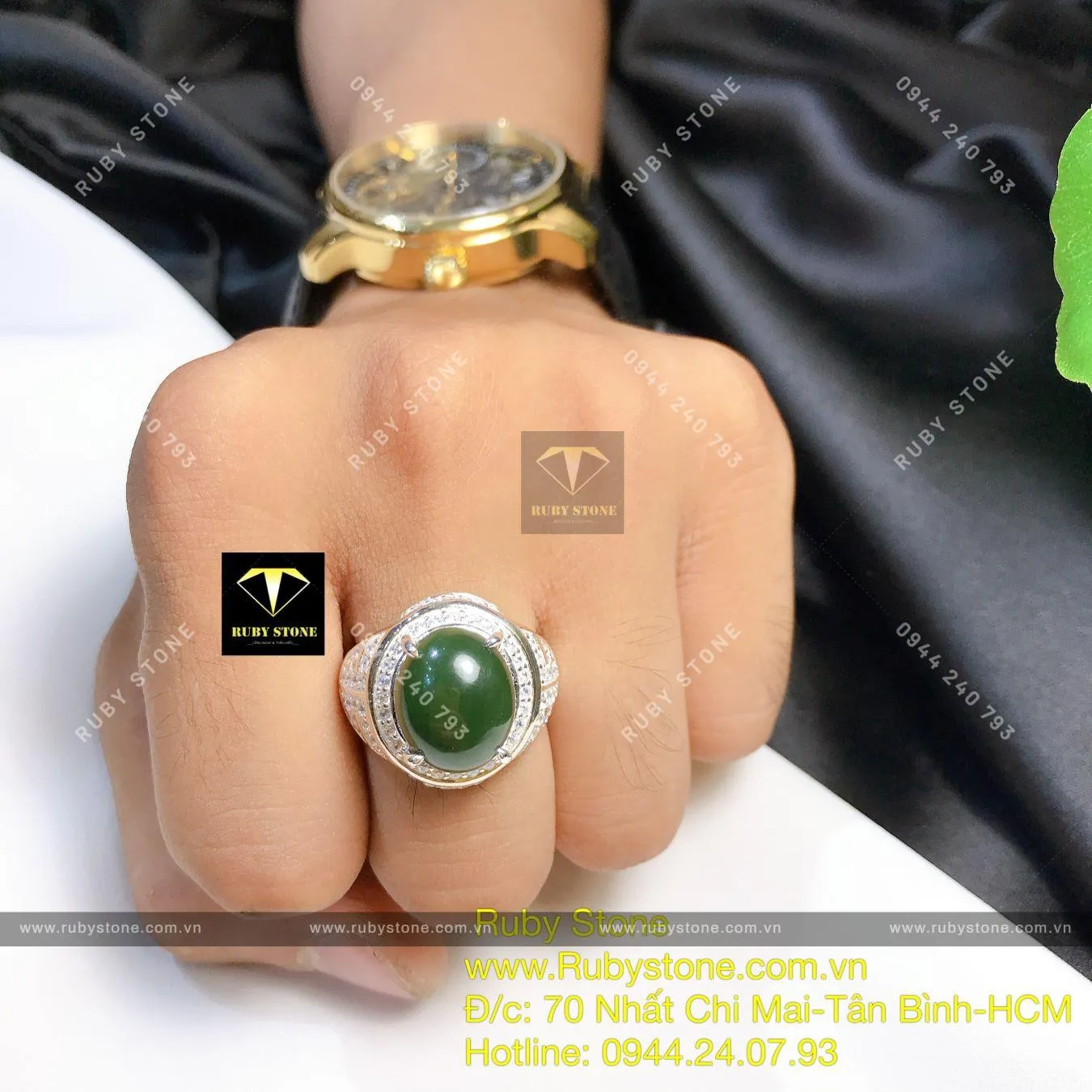 Nhẫn Nam Oval Ngọc Bích Canada, Bạc 925 - Ngọc Bích Phong Thủy