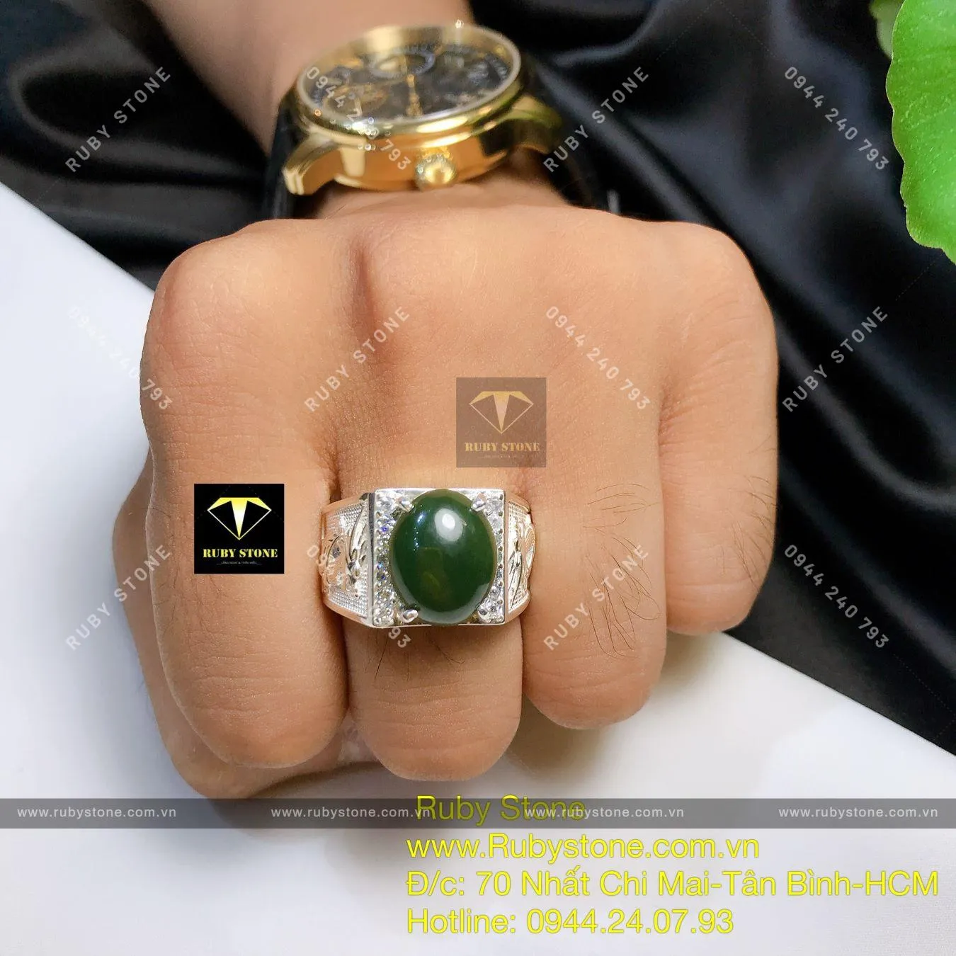 Nhẫn Nam Ngọc Bích Canada, Bạc 925 - Ngọc Bích Phong Thủy