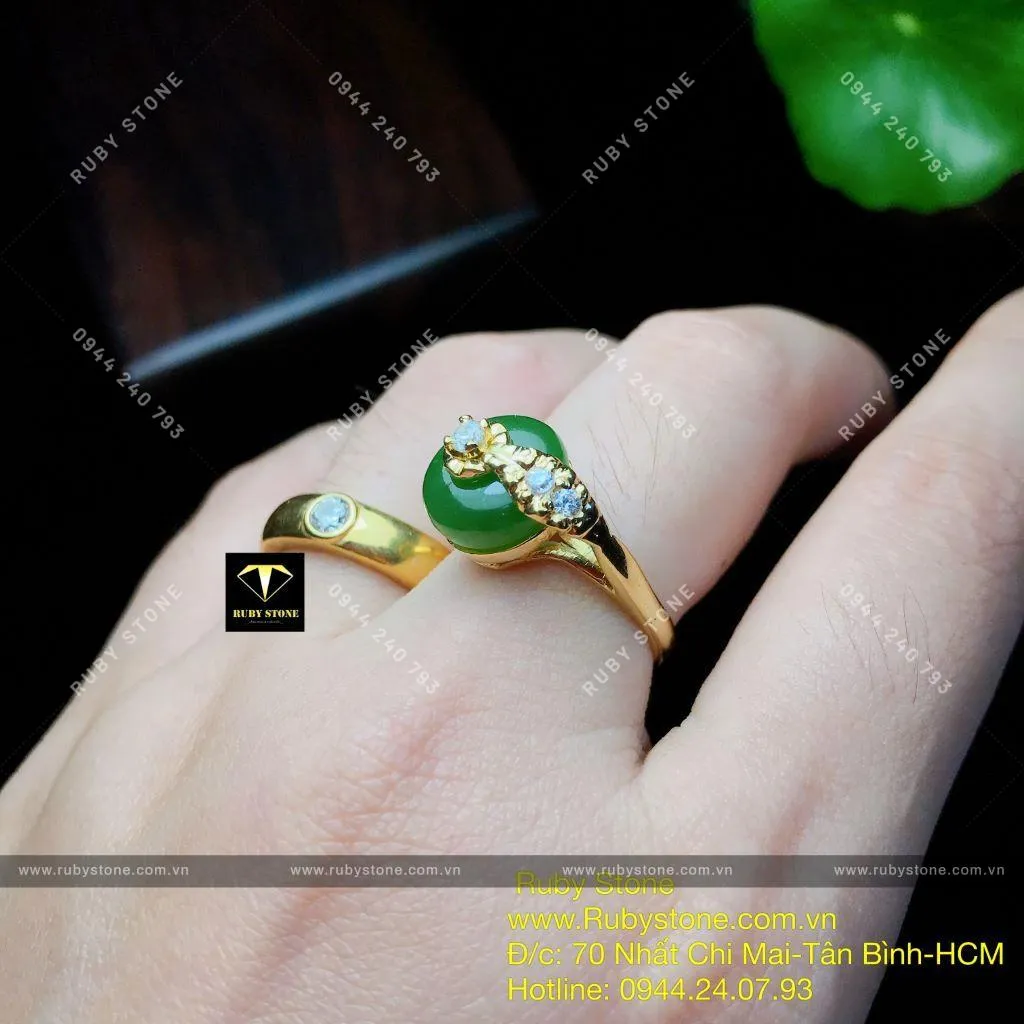Nhẫn đồng điếu Ngọc bích, vàng 10k