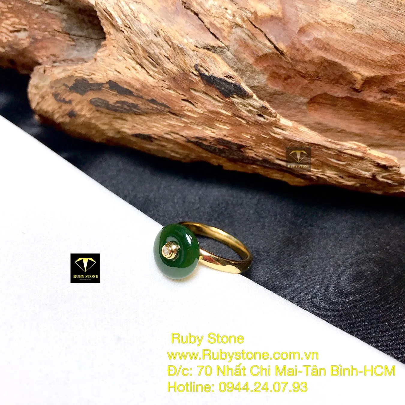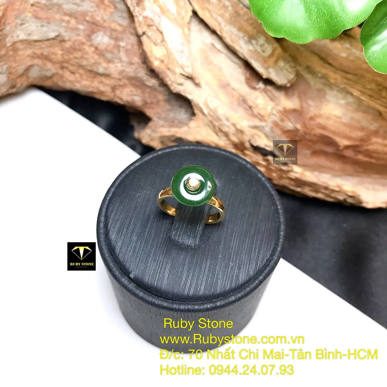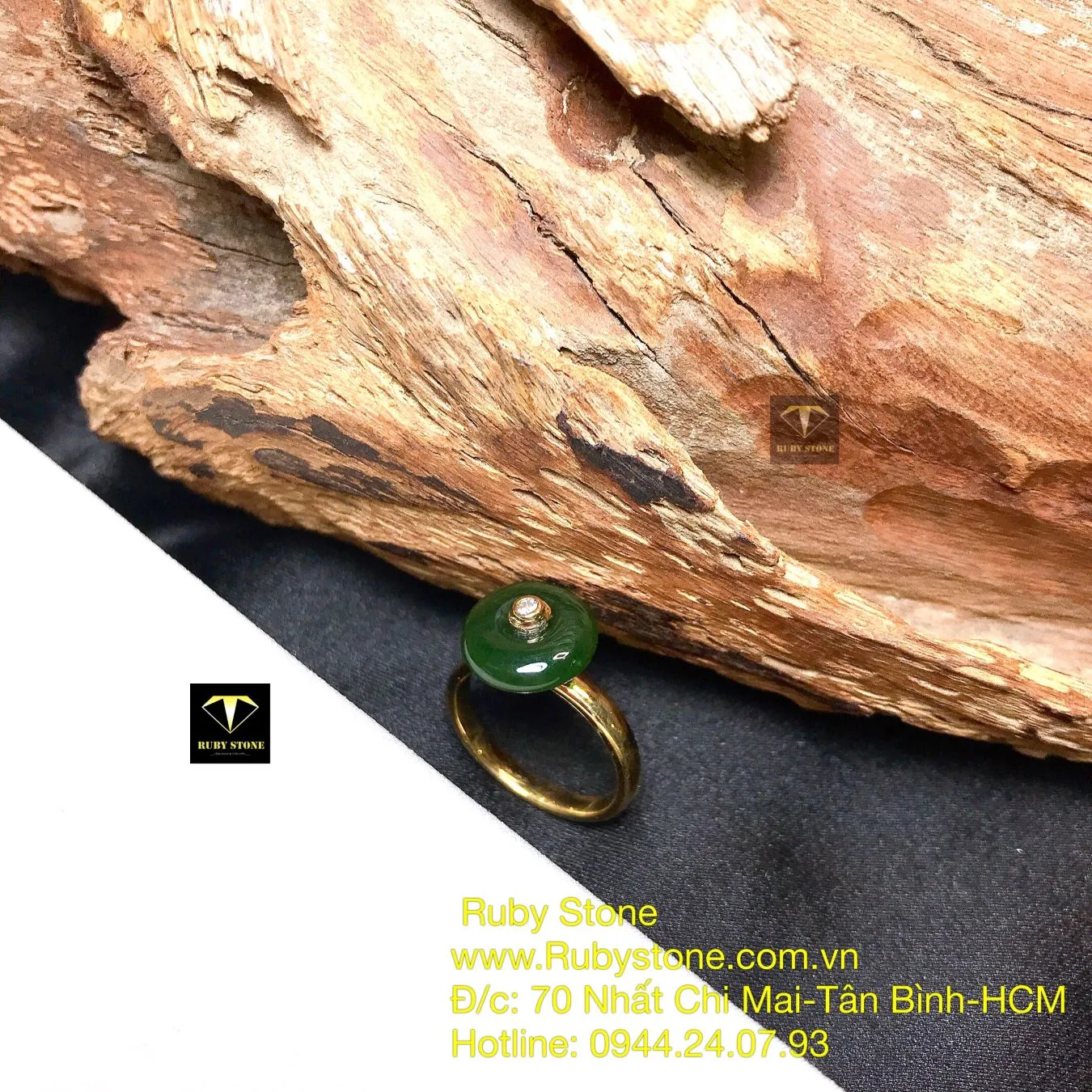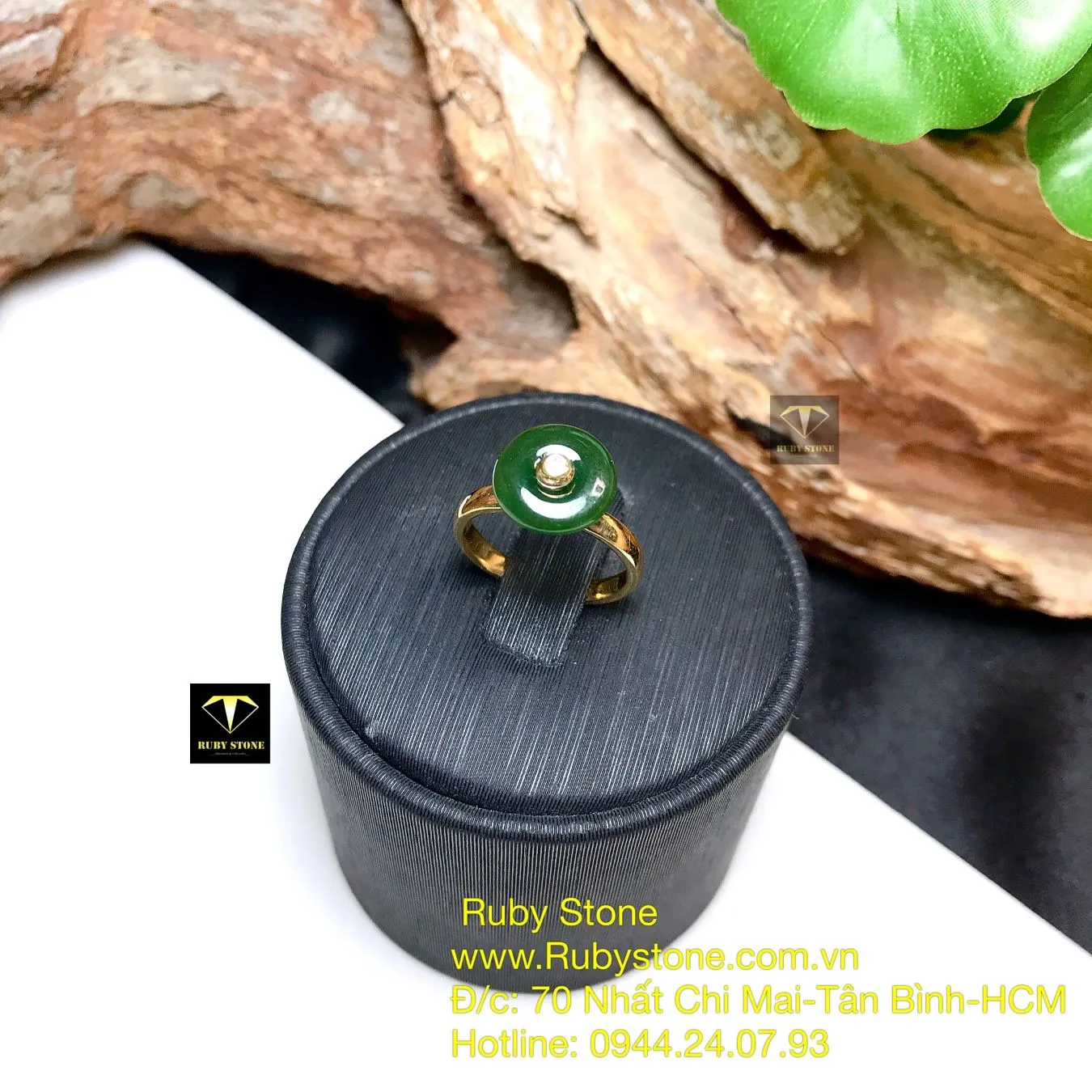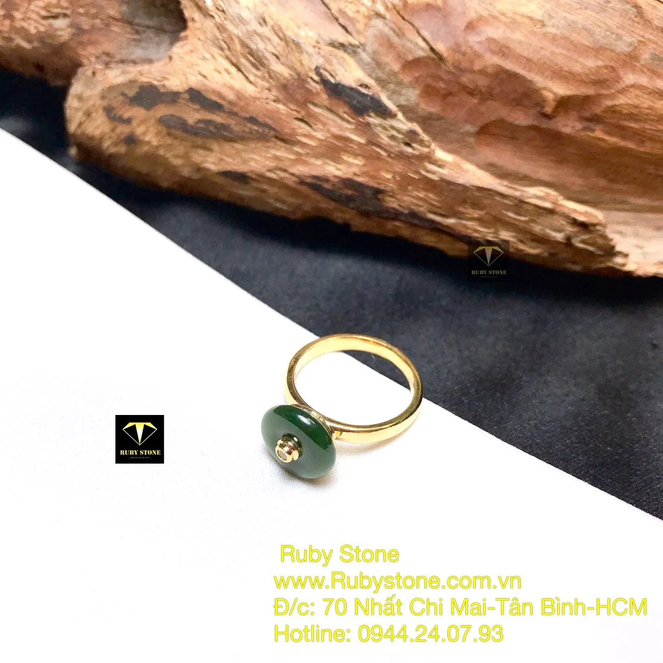 Nhẫn đồng điếu Ngọc bích xanh đậm, vàng 18k