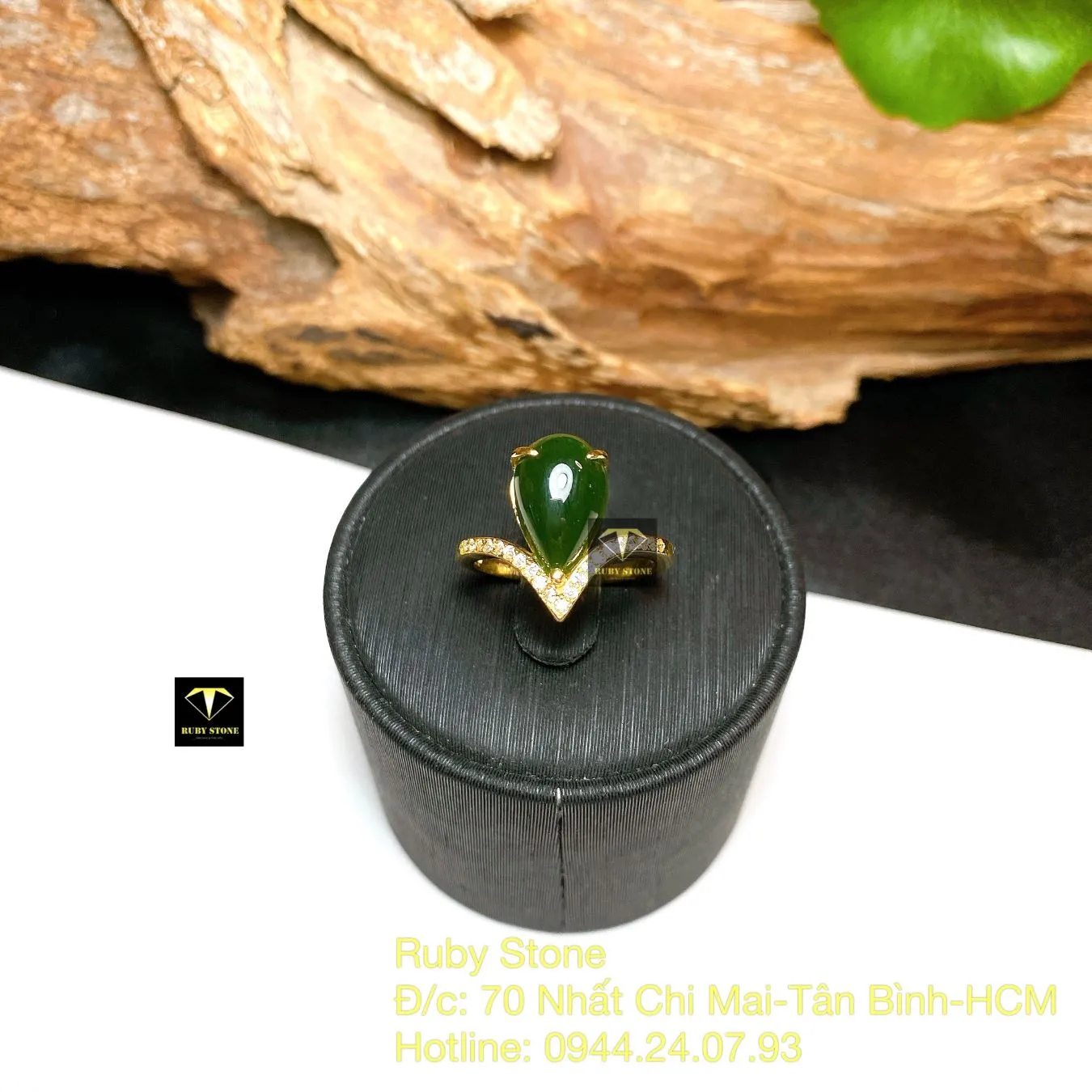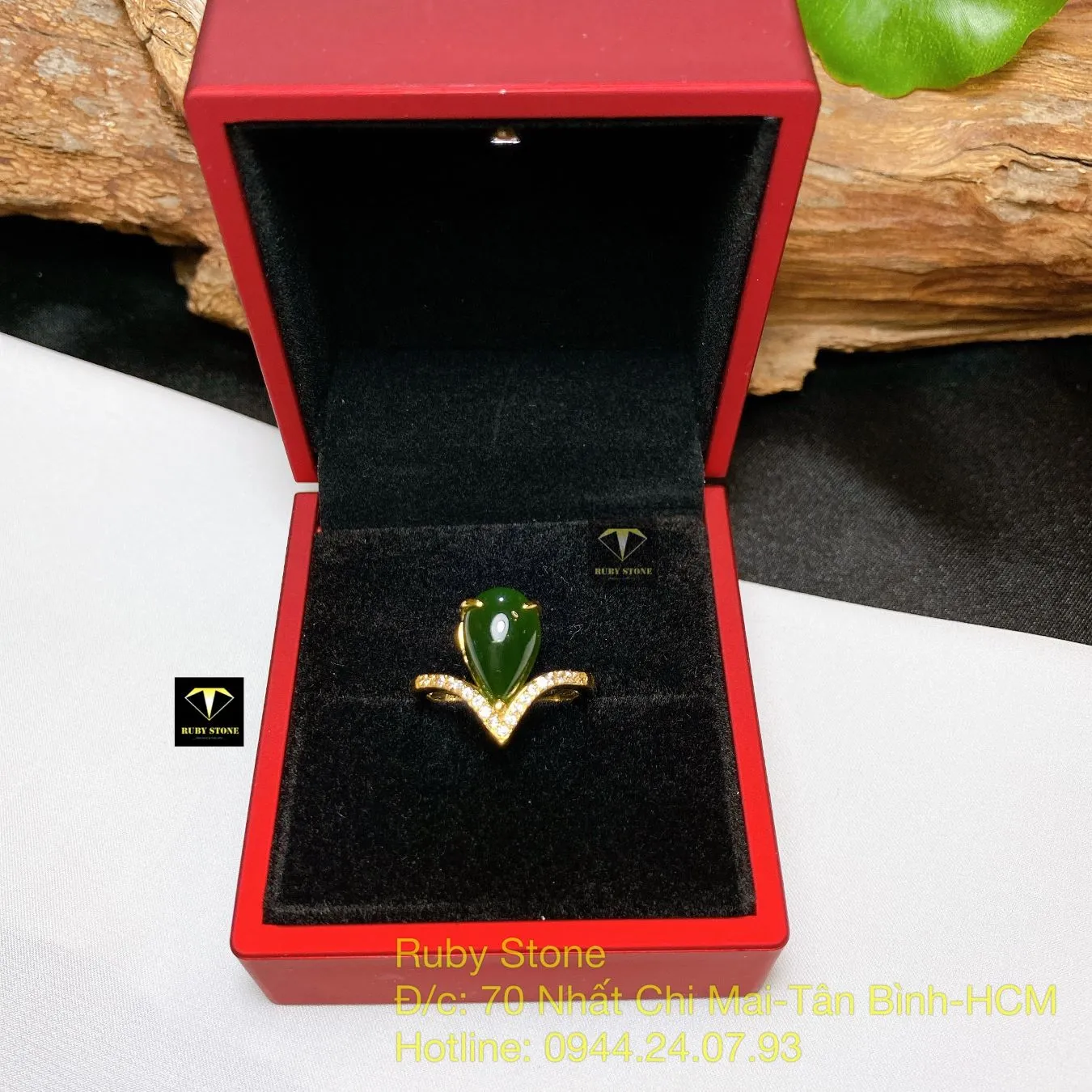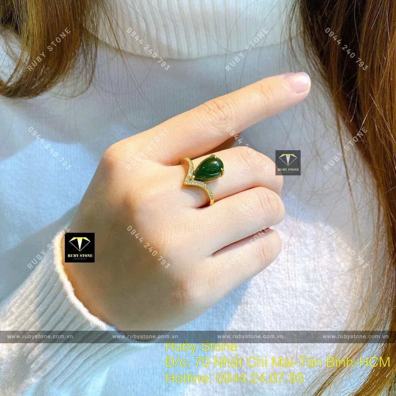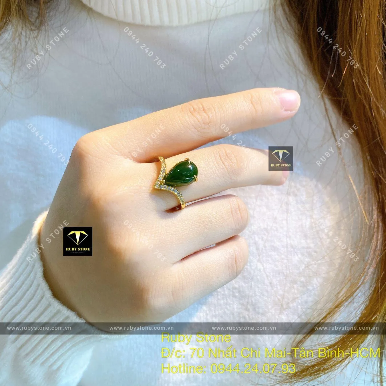 Nhẫn Giọt Nước Ngọc Bích Canada, Vàng 18k - Ngọc Bích Phong Thủy