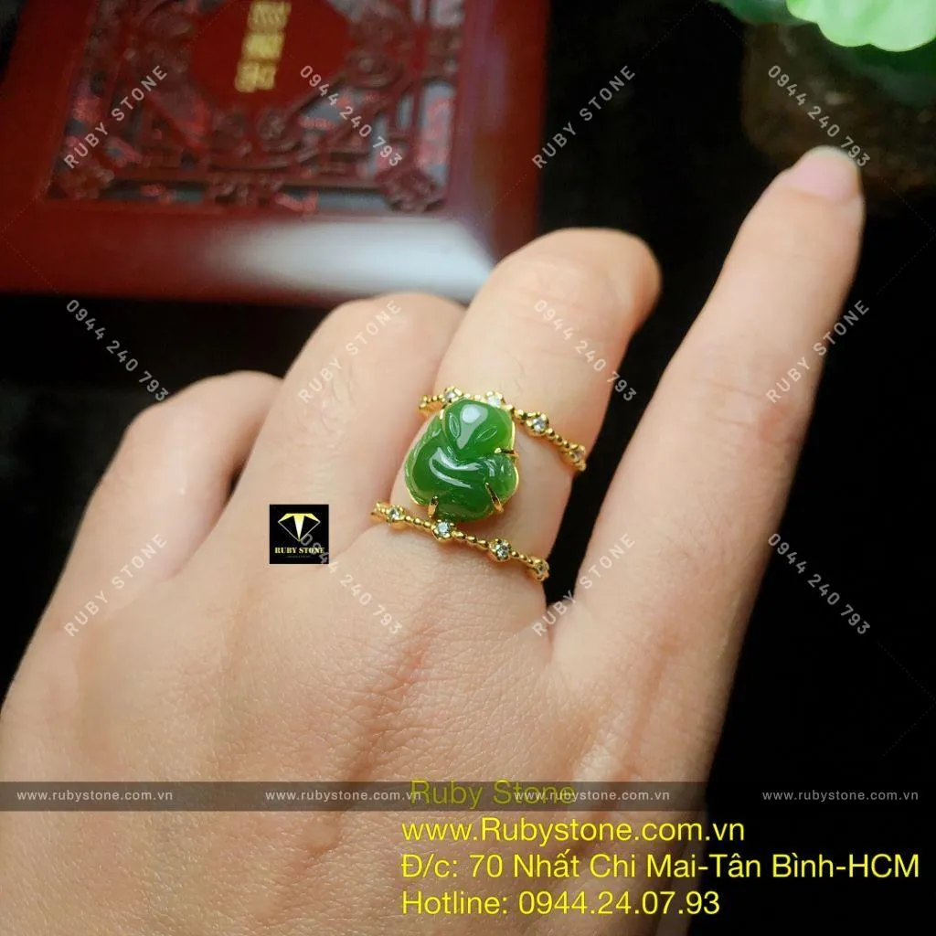 Nhẫn Hồ Ly Ngọc Bích 2 đường Tấm, Vàng 10k - Ngọc Bích Phong Thủy