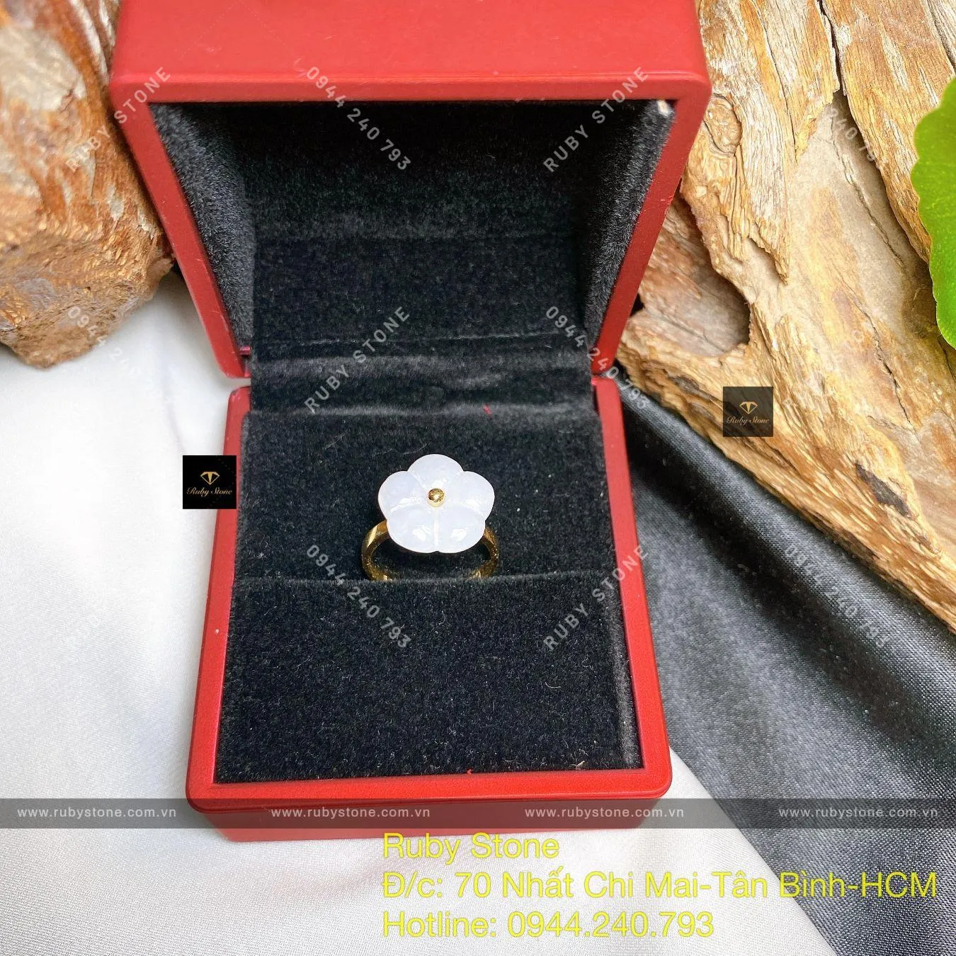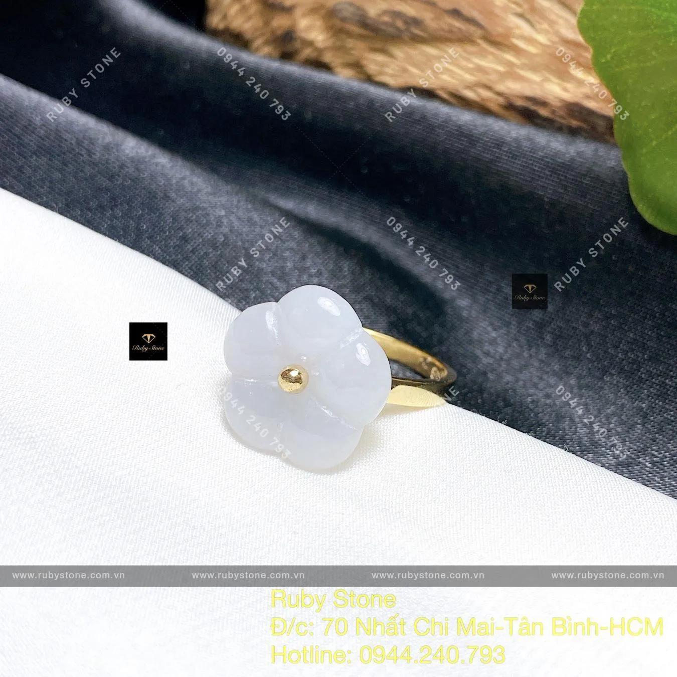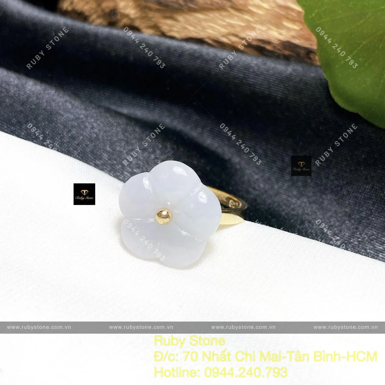 Nhẫn Hoa Mai Ngọc Cẩm Thạch Trắng, Vàng 18k - Ngọc Bích Phong Thủy