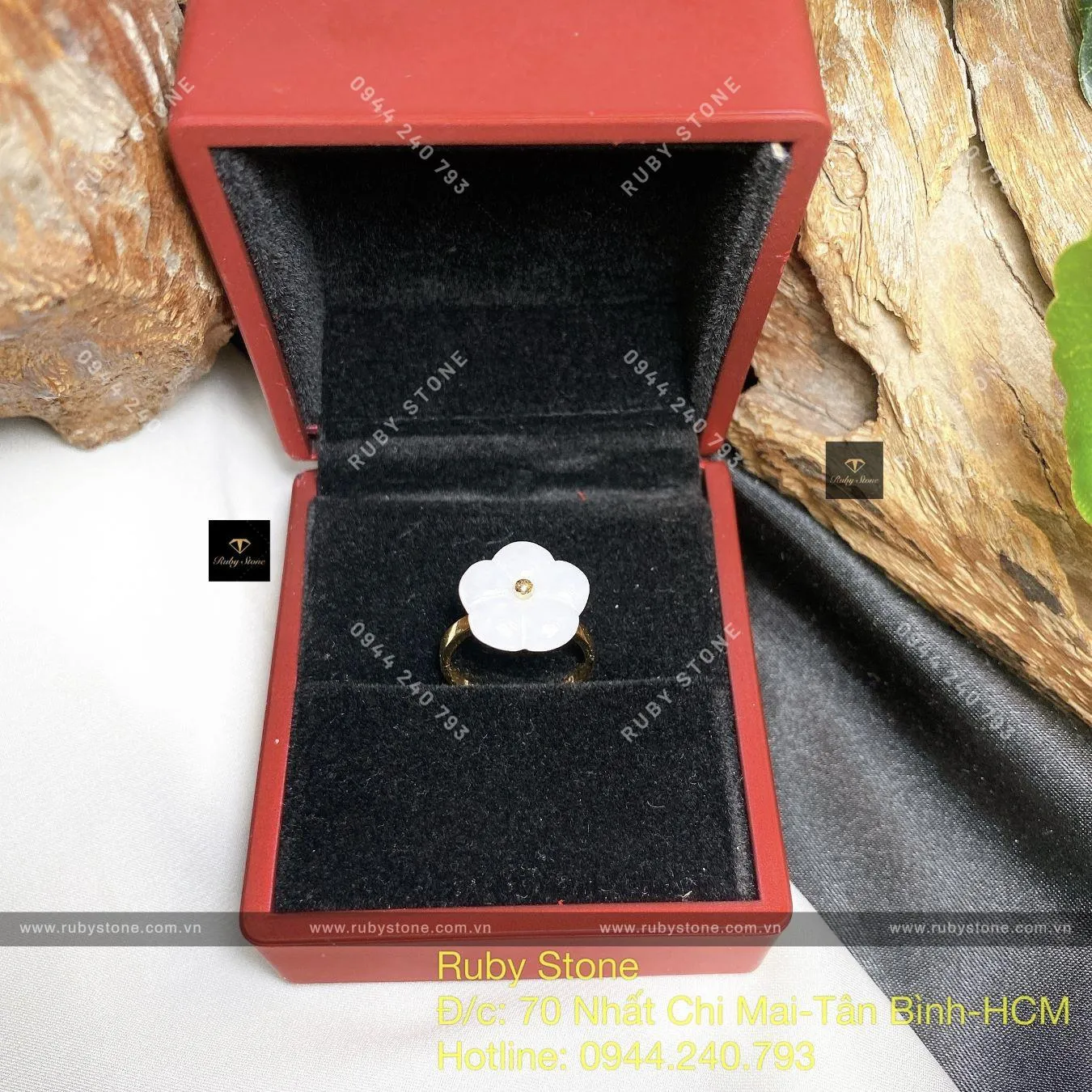 Nhẫn hoa mai ngọc Cẩm thạch trắng, vàng 18k