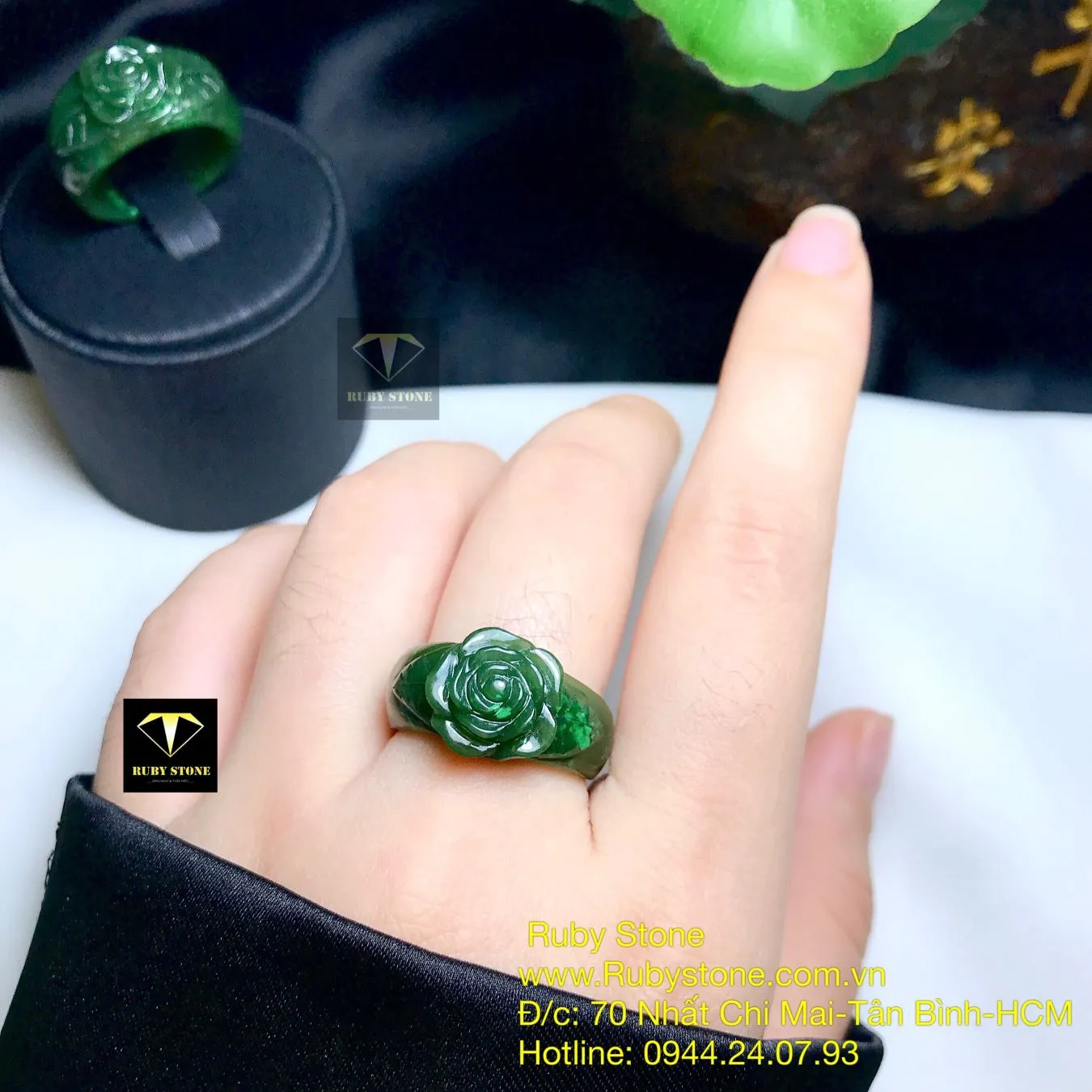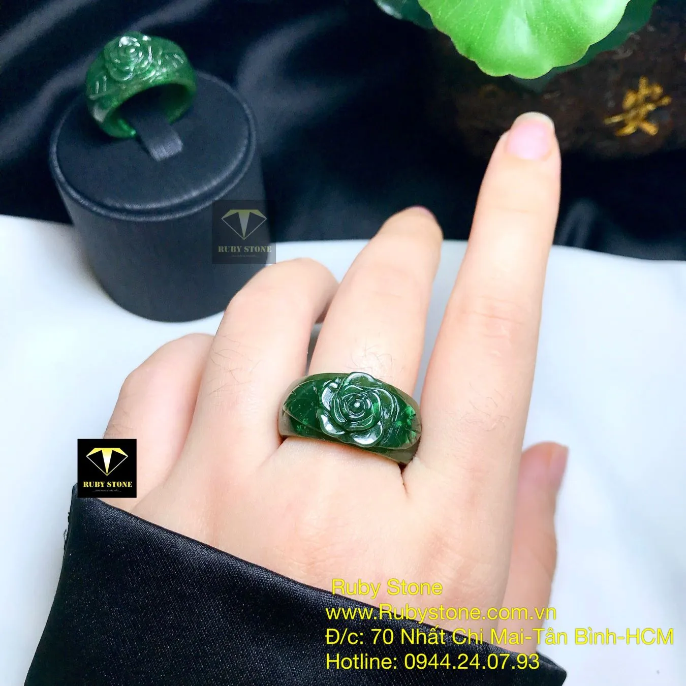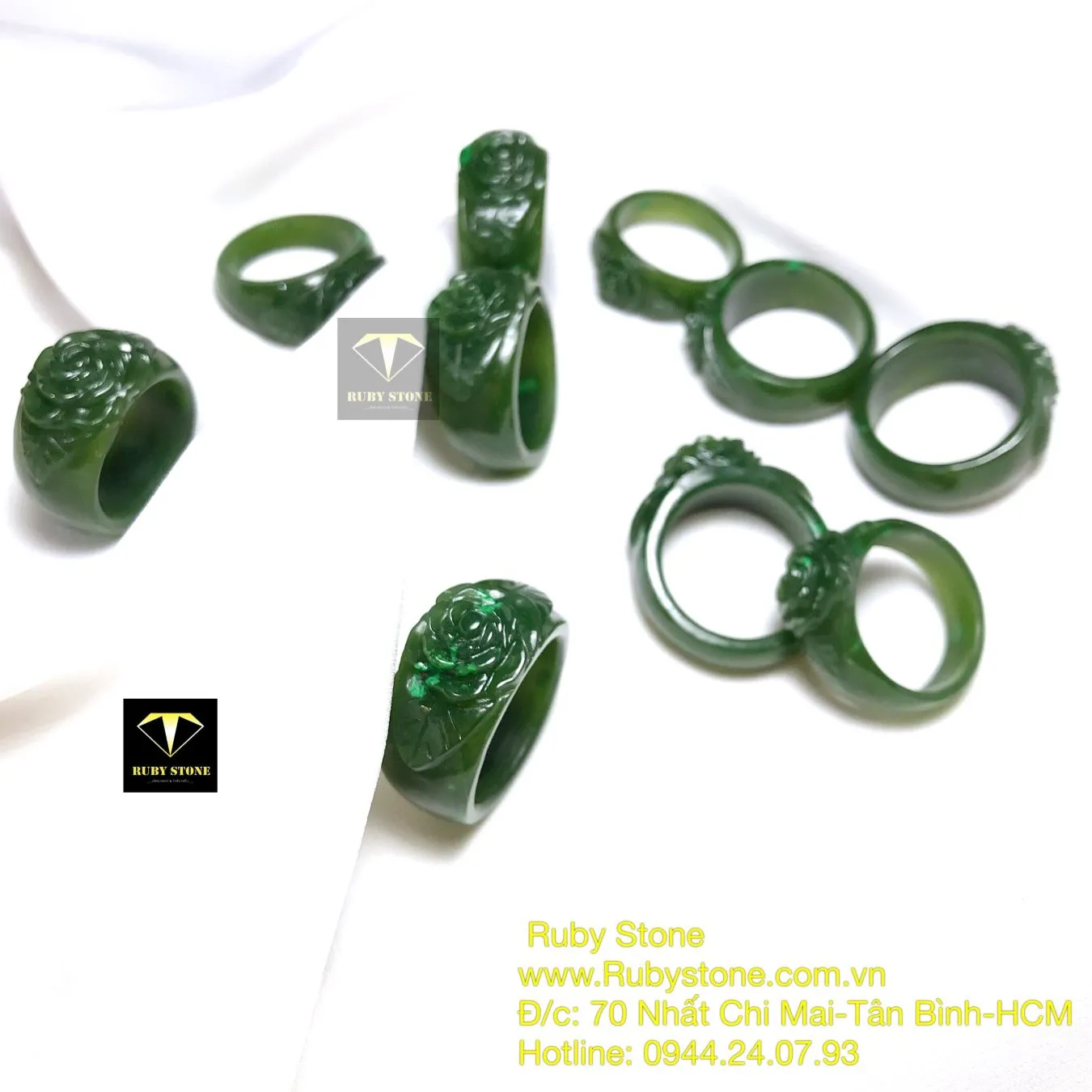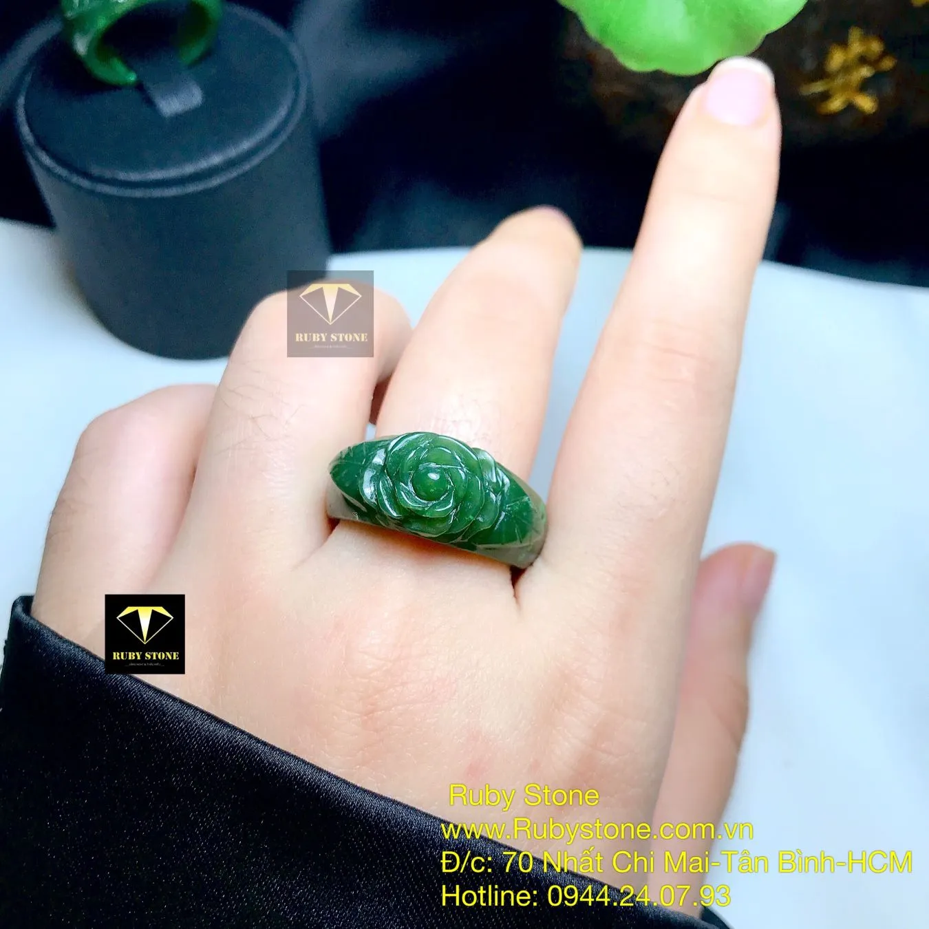 Nhẫn bản liền Hoa hồng Ngọc bích, size nhỏ