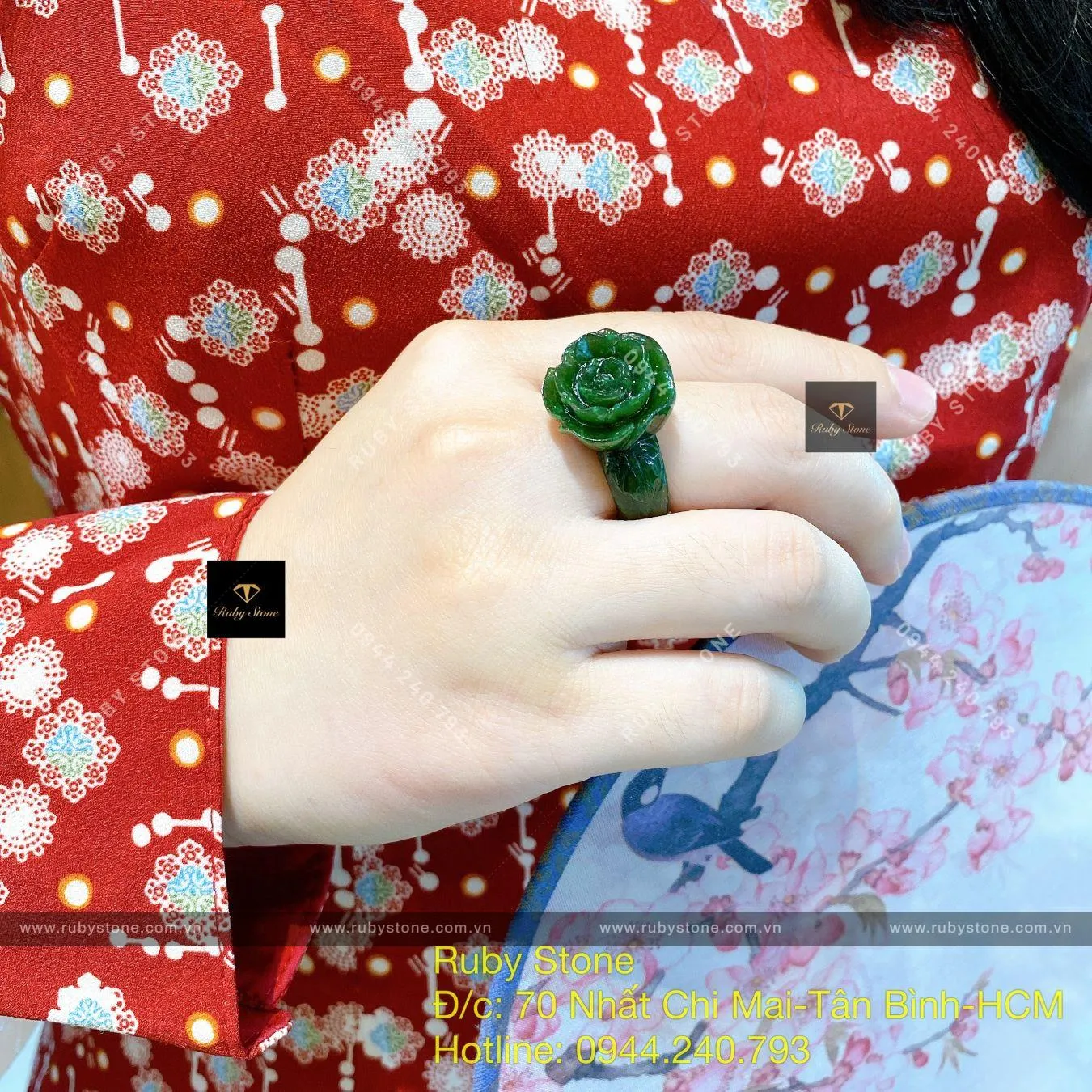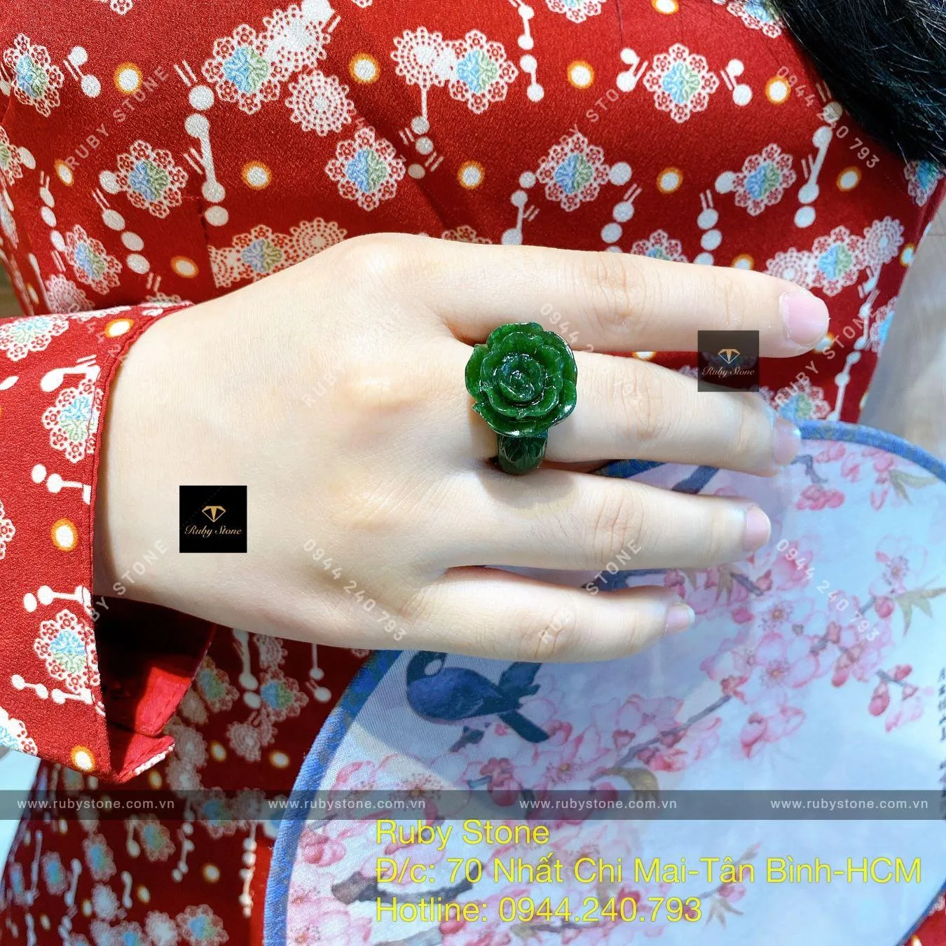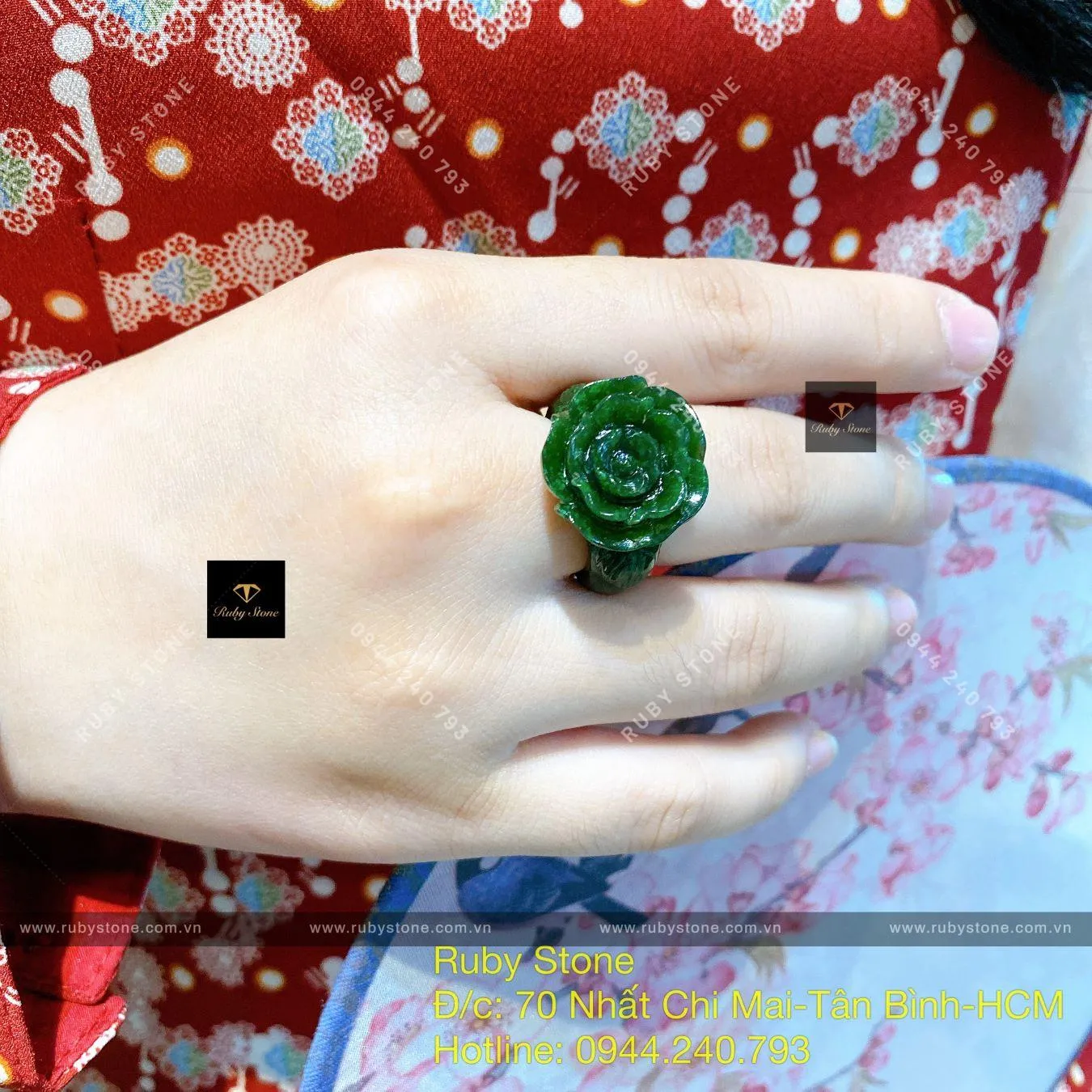 Nhẫn Hoa Mẫu đơn Ngọc Bích Canada (nguyên Khối) - Ngọc Bích Phong Thủy