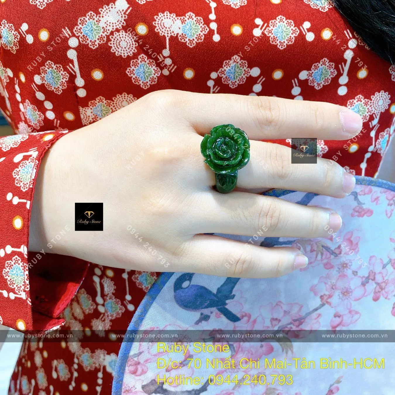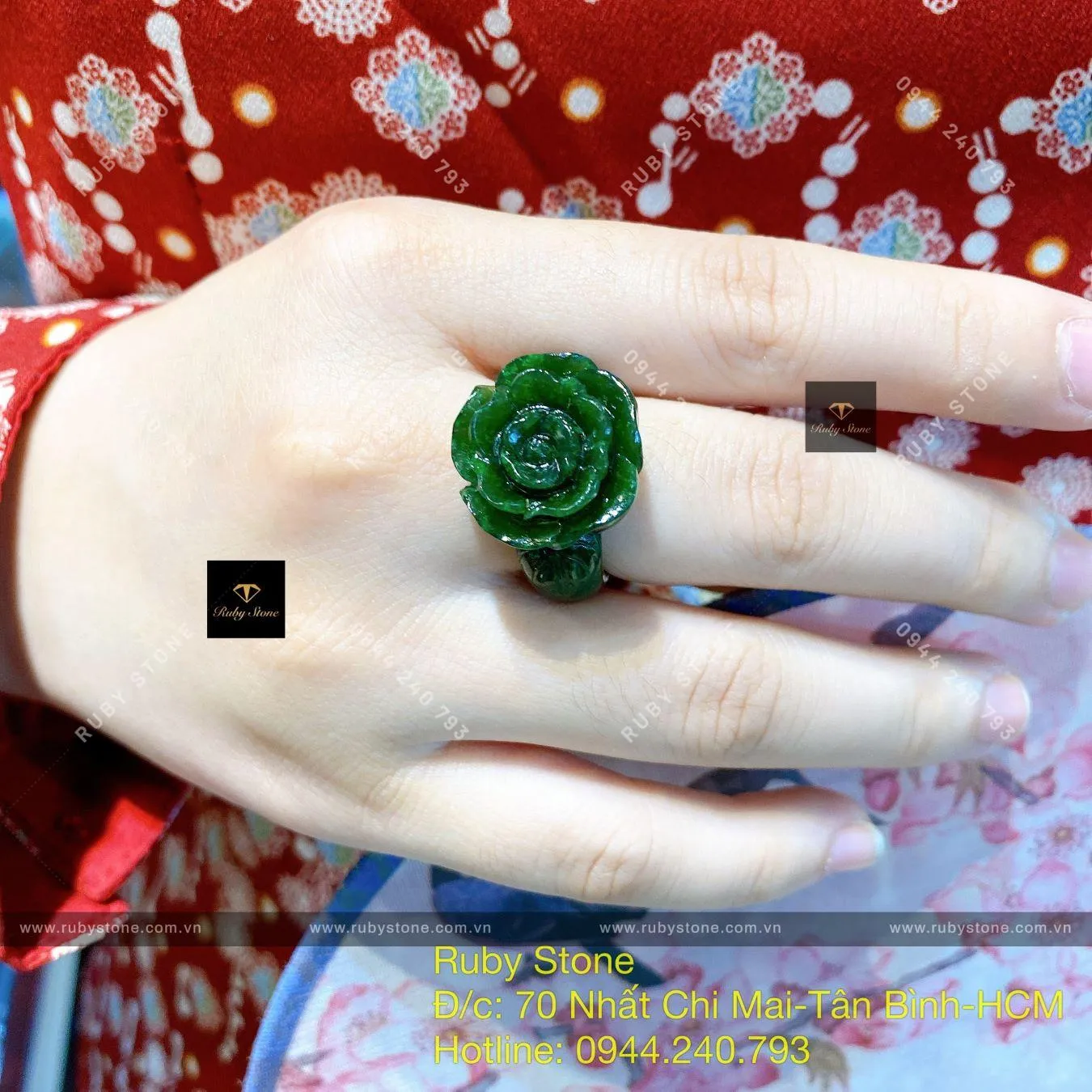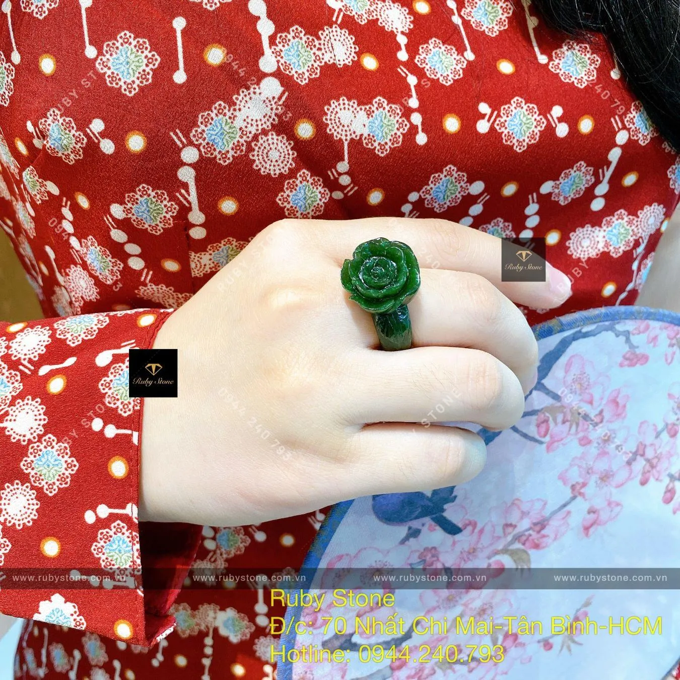 Nhẫn Hoa Mẫu đơn Ngọc Bích Canada (nguyên Khối) - Ngọc Bích Phong Thủy