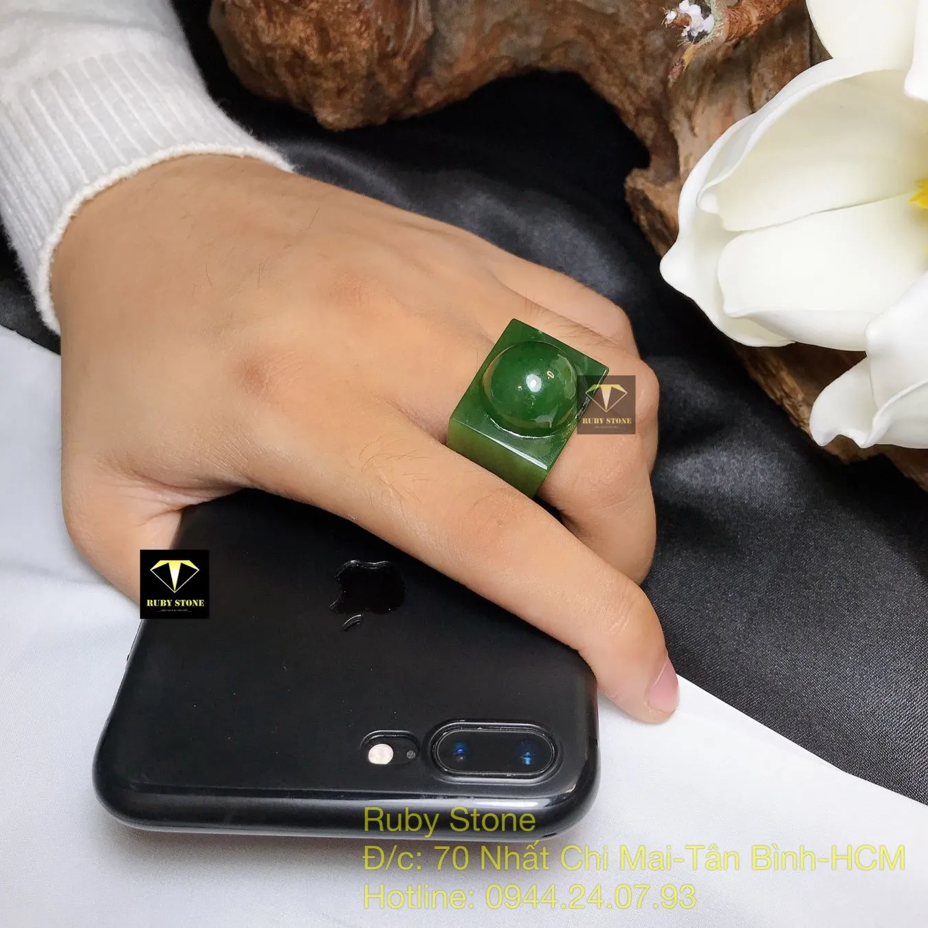Nhẫn Nam Trái Châu Ngọc Bích Canada Xanh Lá - Ngọc Bích Phong Thủy