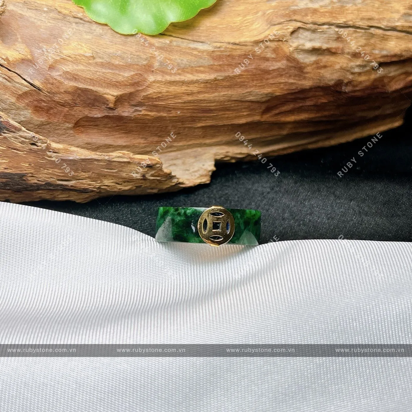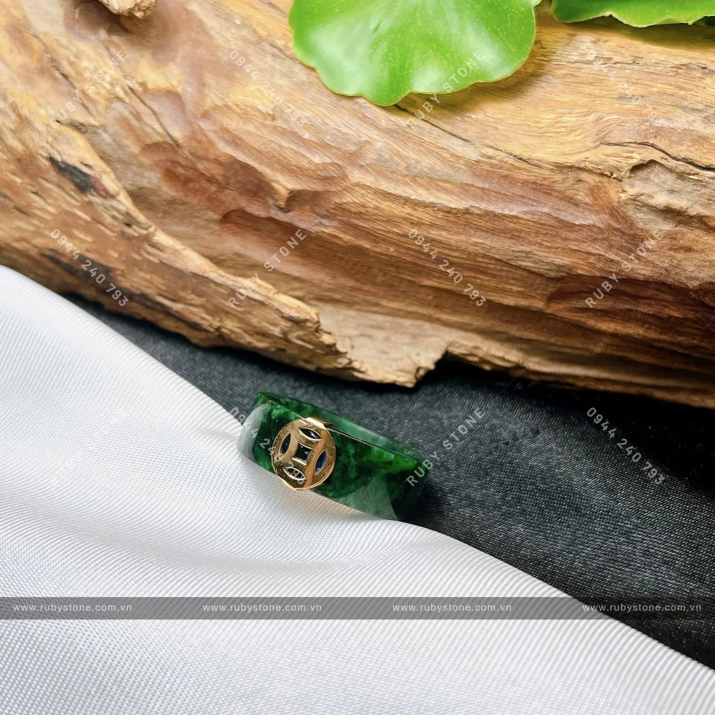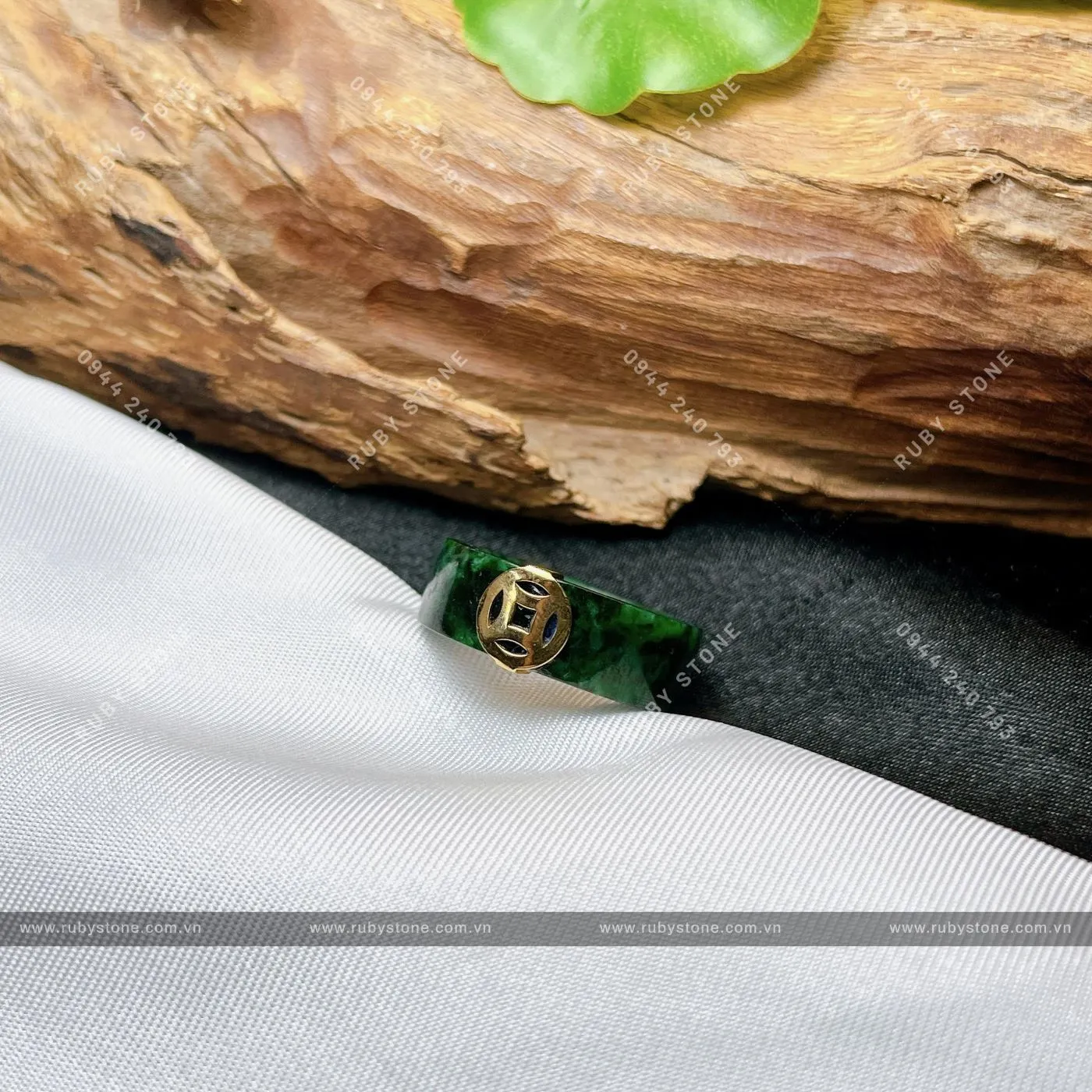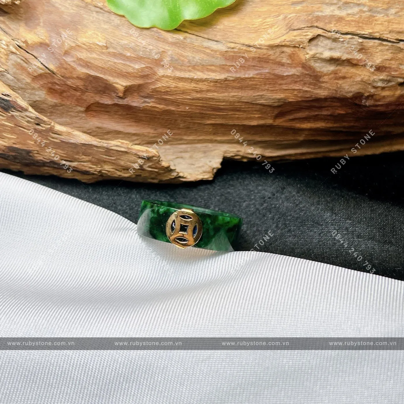 Nhẫn ngọc cẩm thạch sơn thuỷ Myanmar (nước 1), vàng 18k