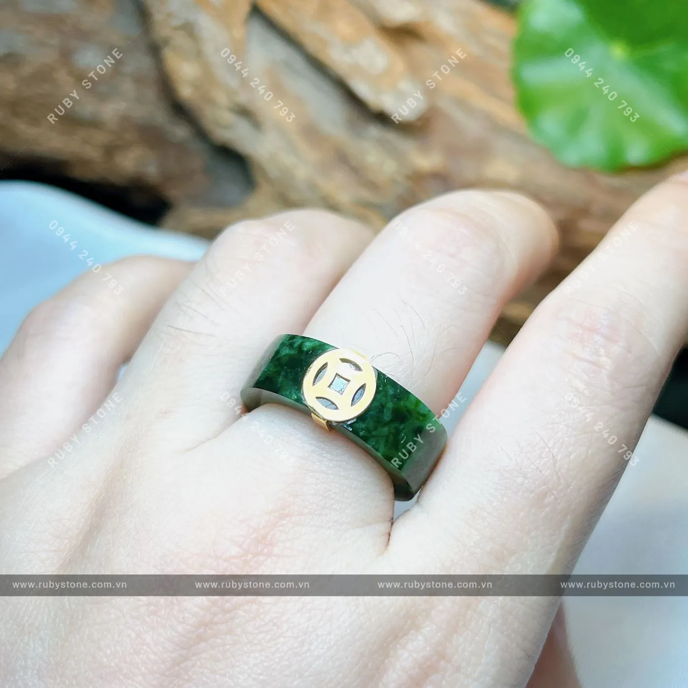 Nhẫn Ngọc Cẩm Thạch Sơn Thuỷ Myanmar (nước 1), Vàng 18k - Ngọc Bích Phong Thủy