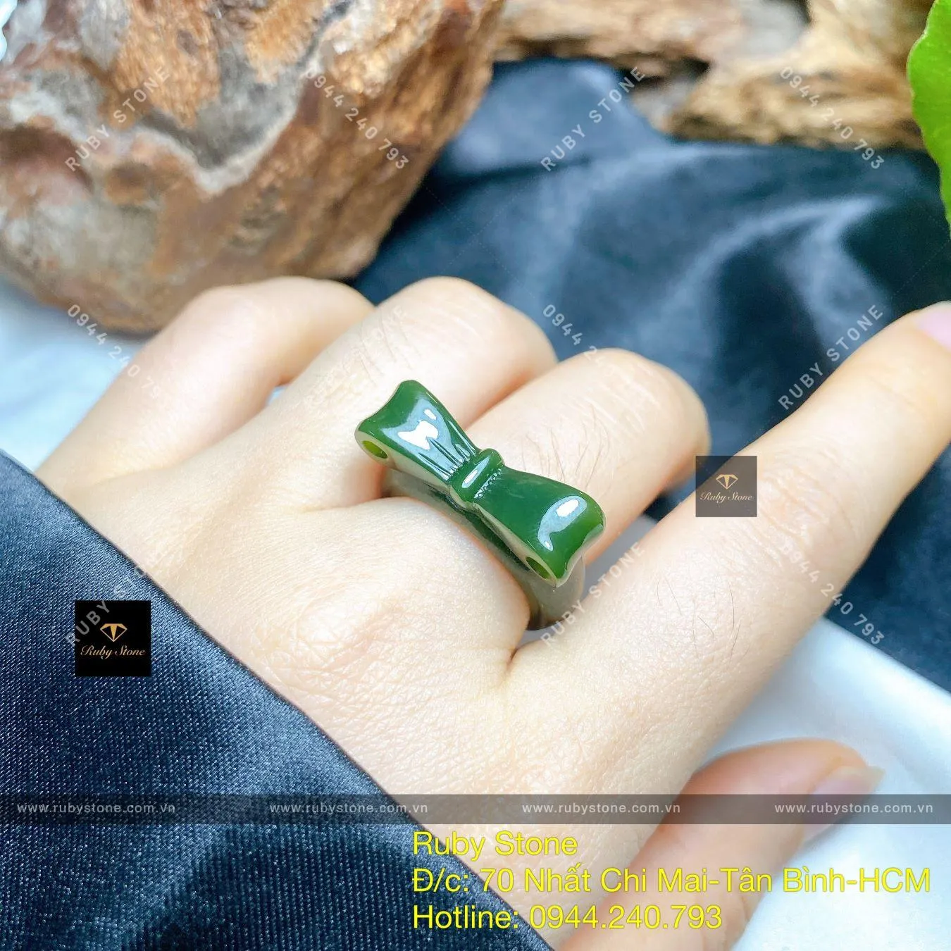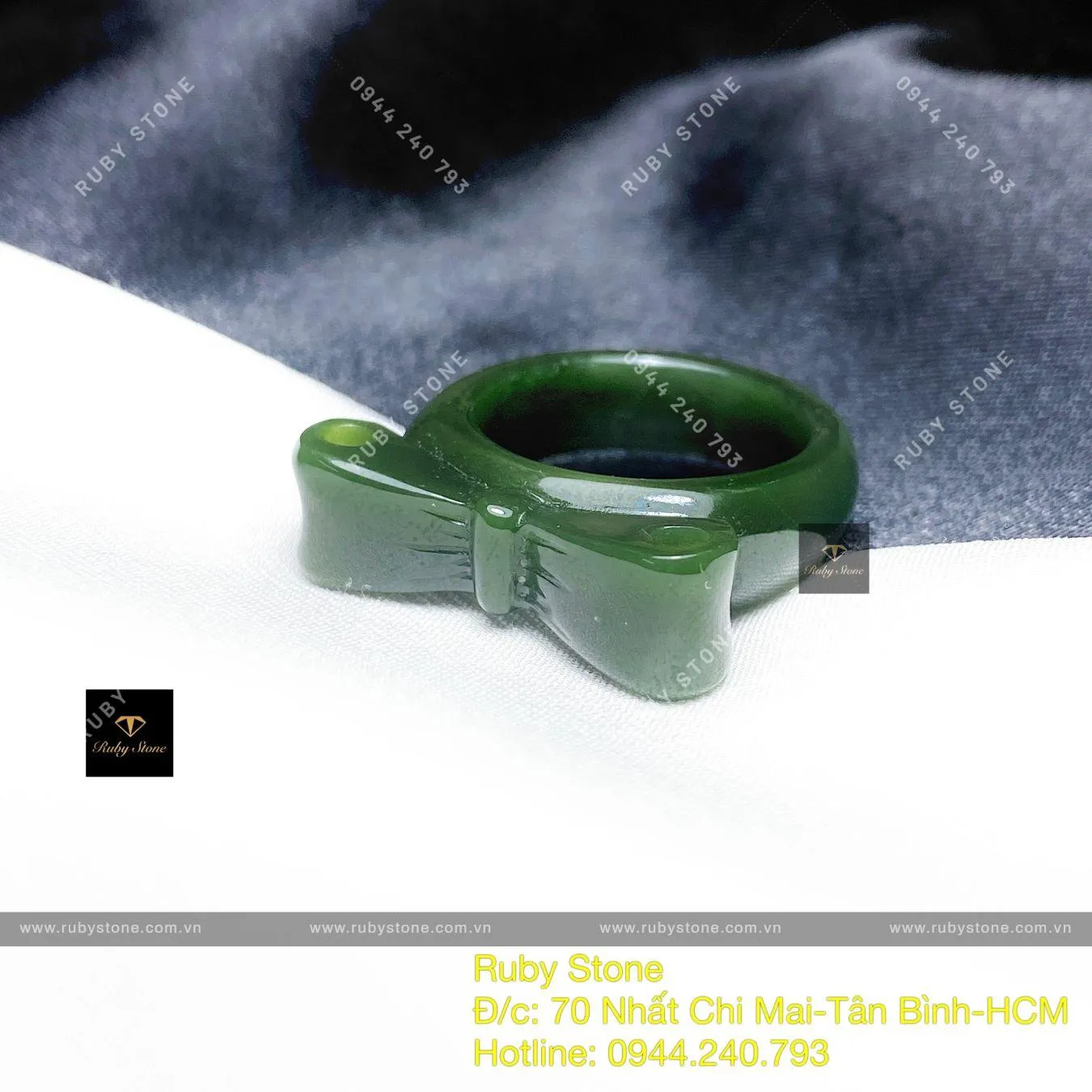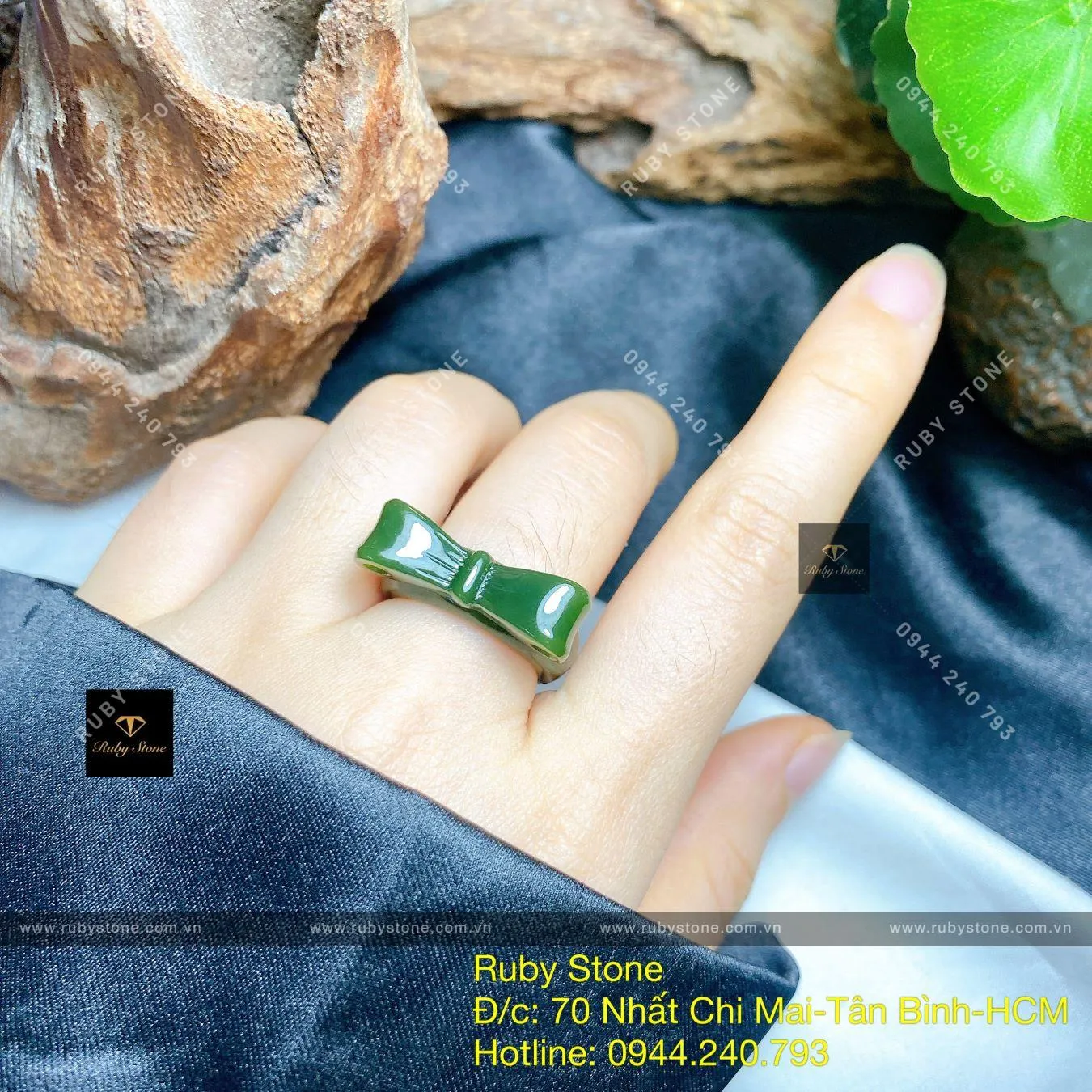 Nhẫn Nơ Ngọc Bích Canada Nguyên Khối (gia Công Theo Ni Tay) - Ngọc Bích Phong Thủy